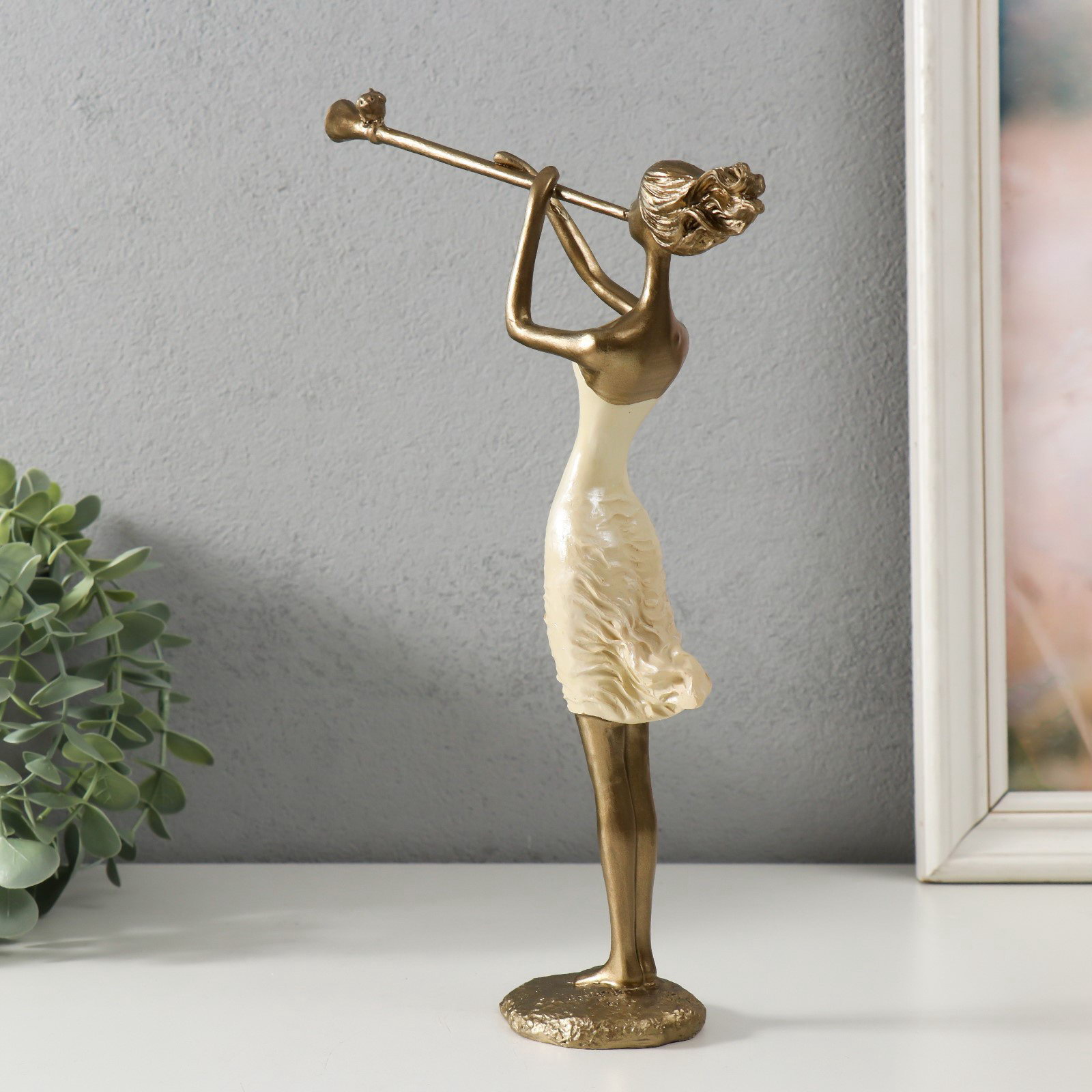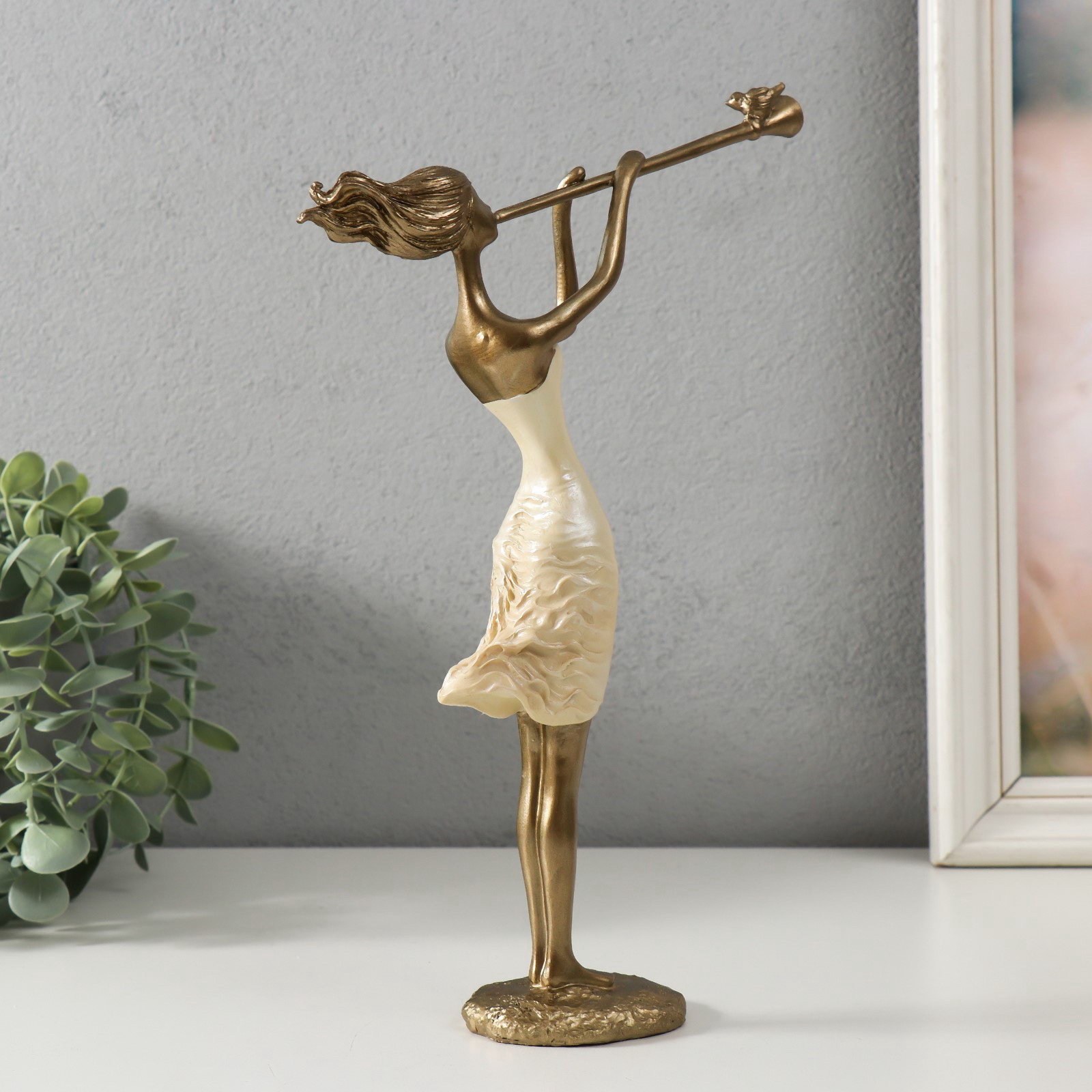 Фигурка полистоун "Девушка играет на дудке, с птичкой" под бронзу, 19х6.5х27.5 см, 6.5x19x27.5 см., Китай