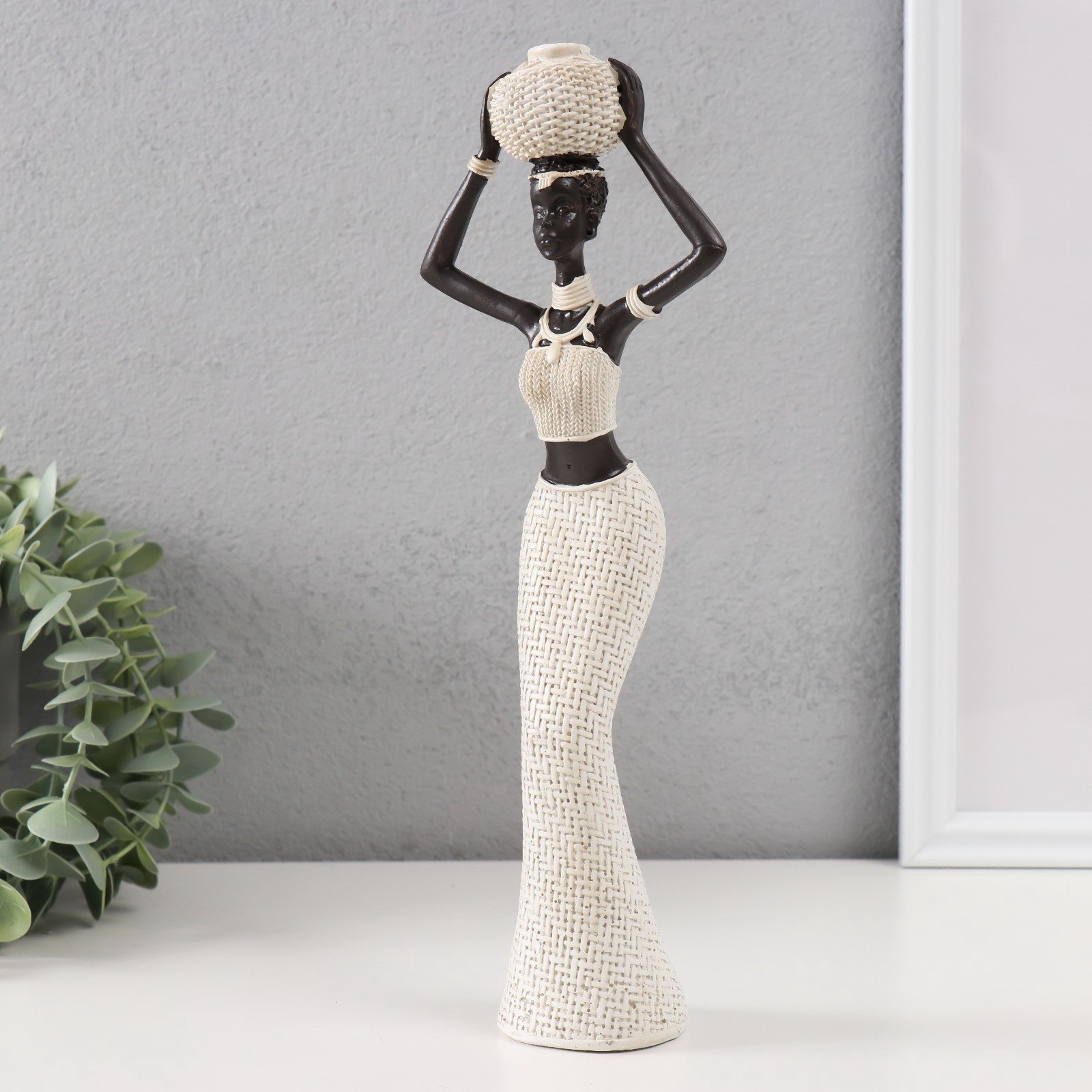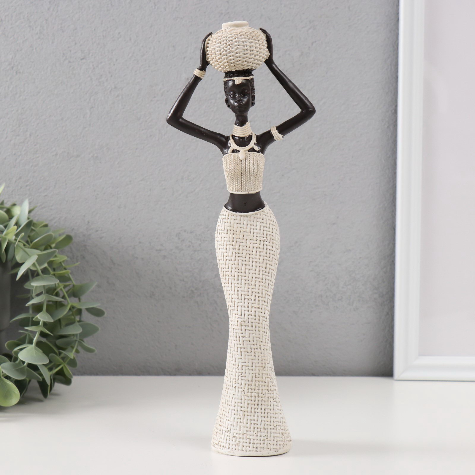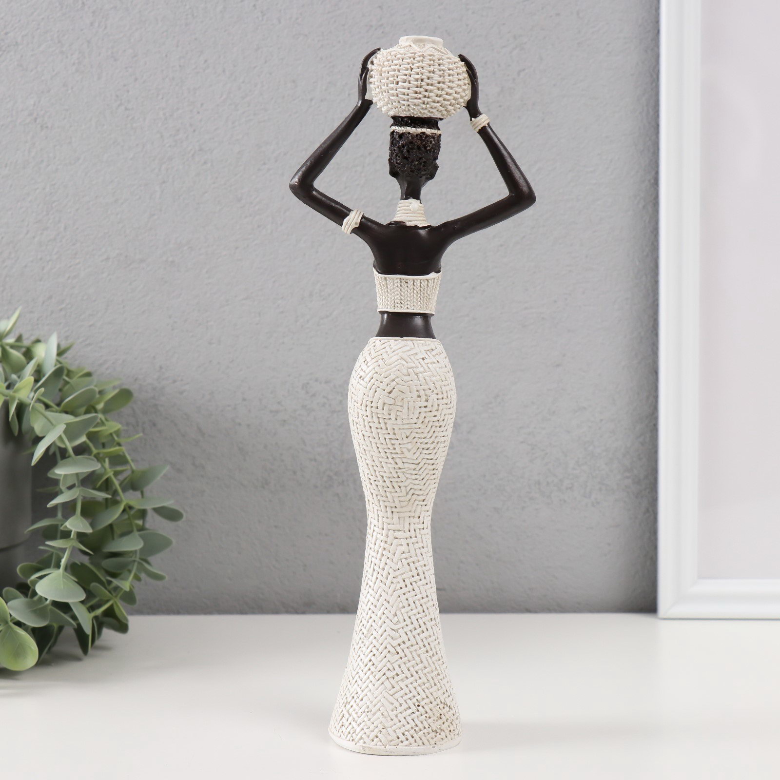 Фигура полистоун "Африканка с плетёным круглым кувшином", белый, 10x6x28 см, 6x10x28 см., Китай