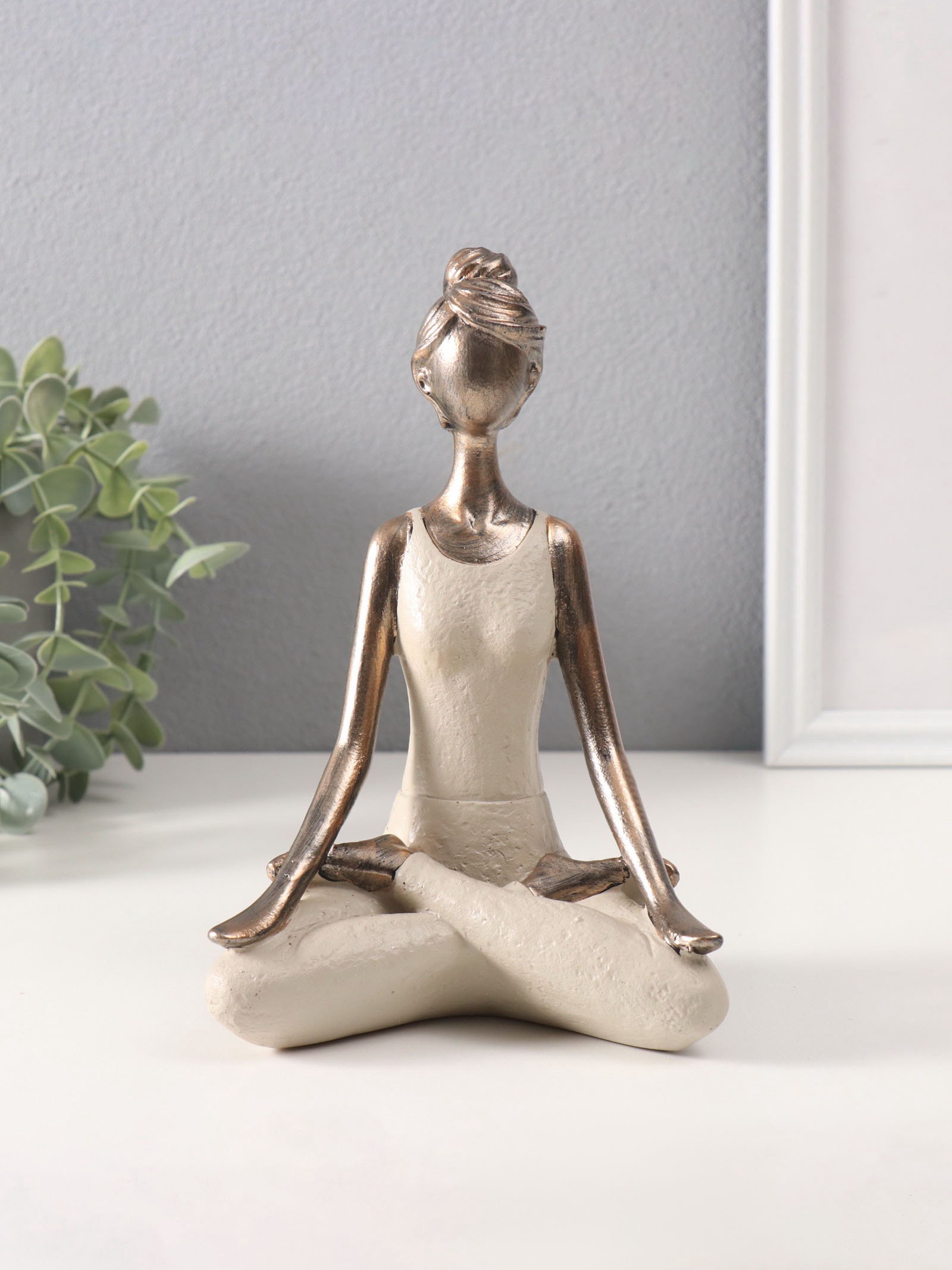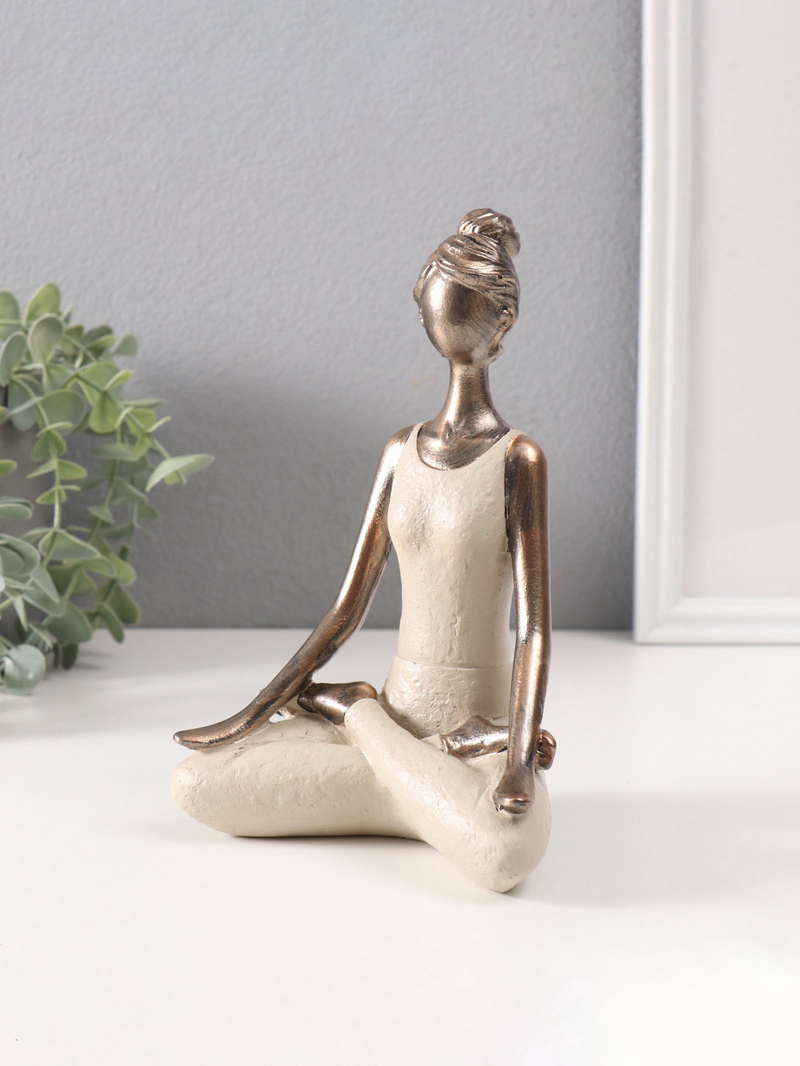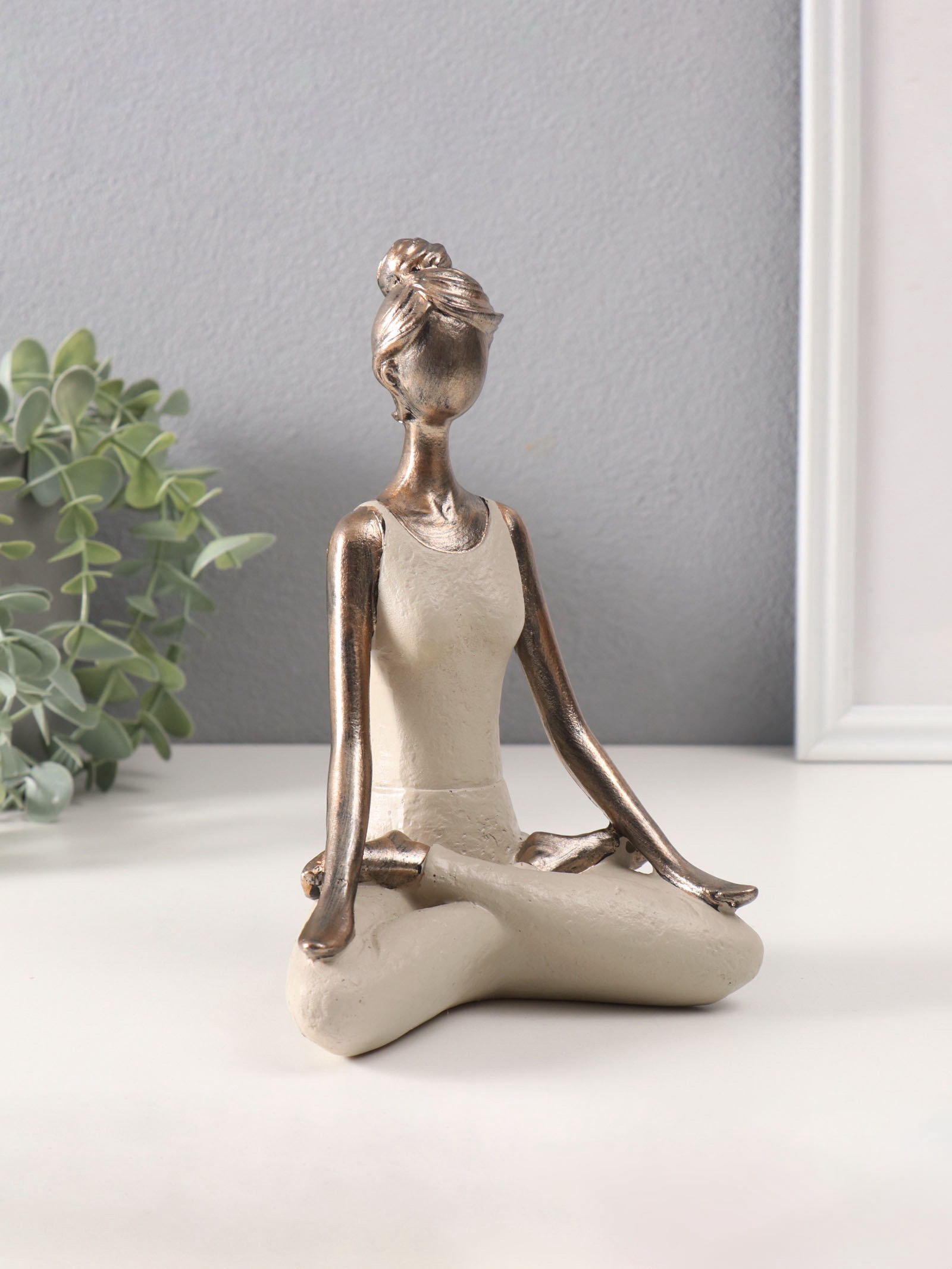 Фигура полистоун "Девушка на йоге - дыхание", под бронзу, 8x13x19 см, 13x8x19 см., Китай