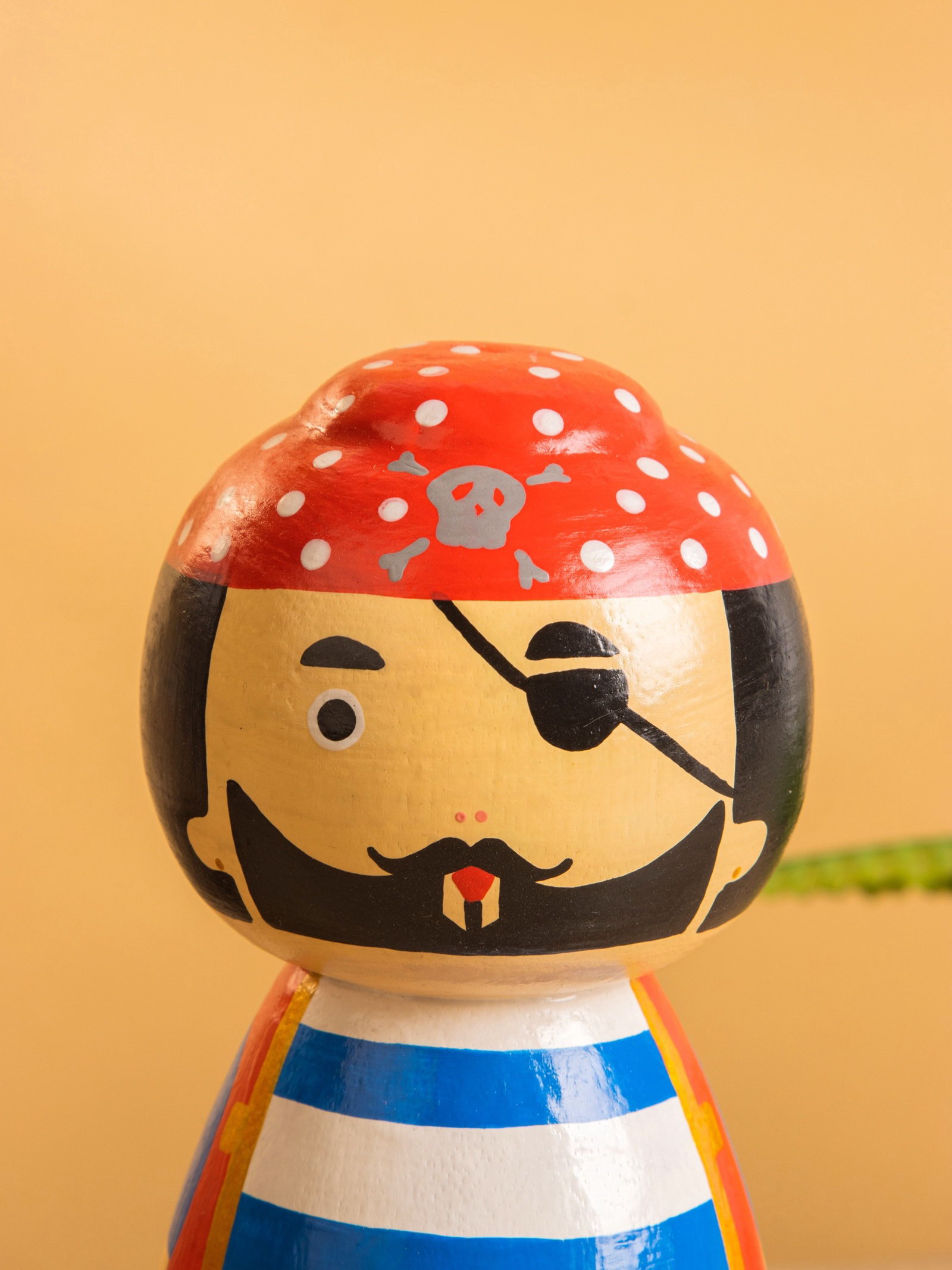 Японская кукла кокеши "Одноглазый пират", 9x9x21 см, 9x9x21 см., Индонезия