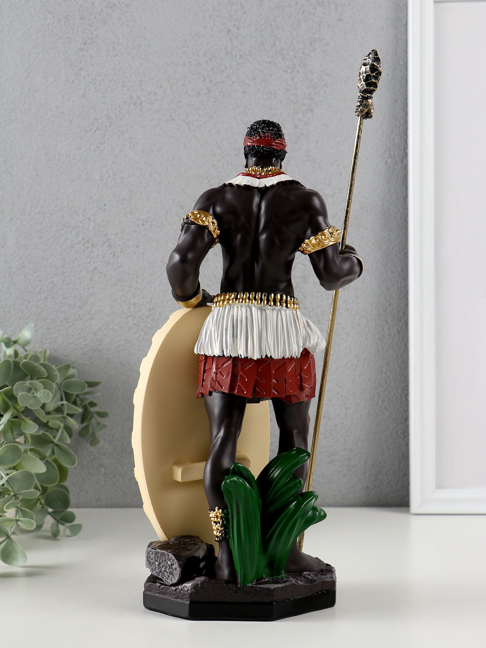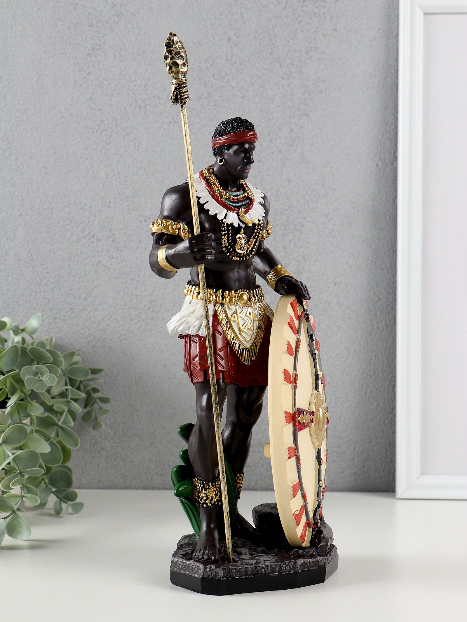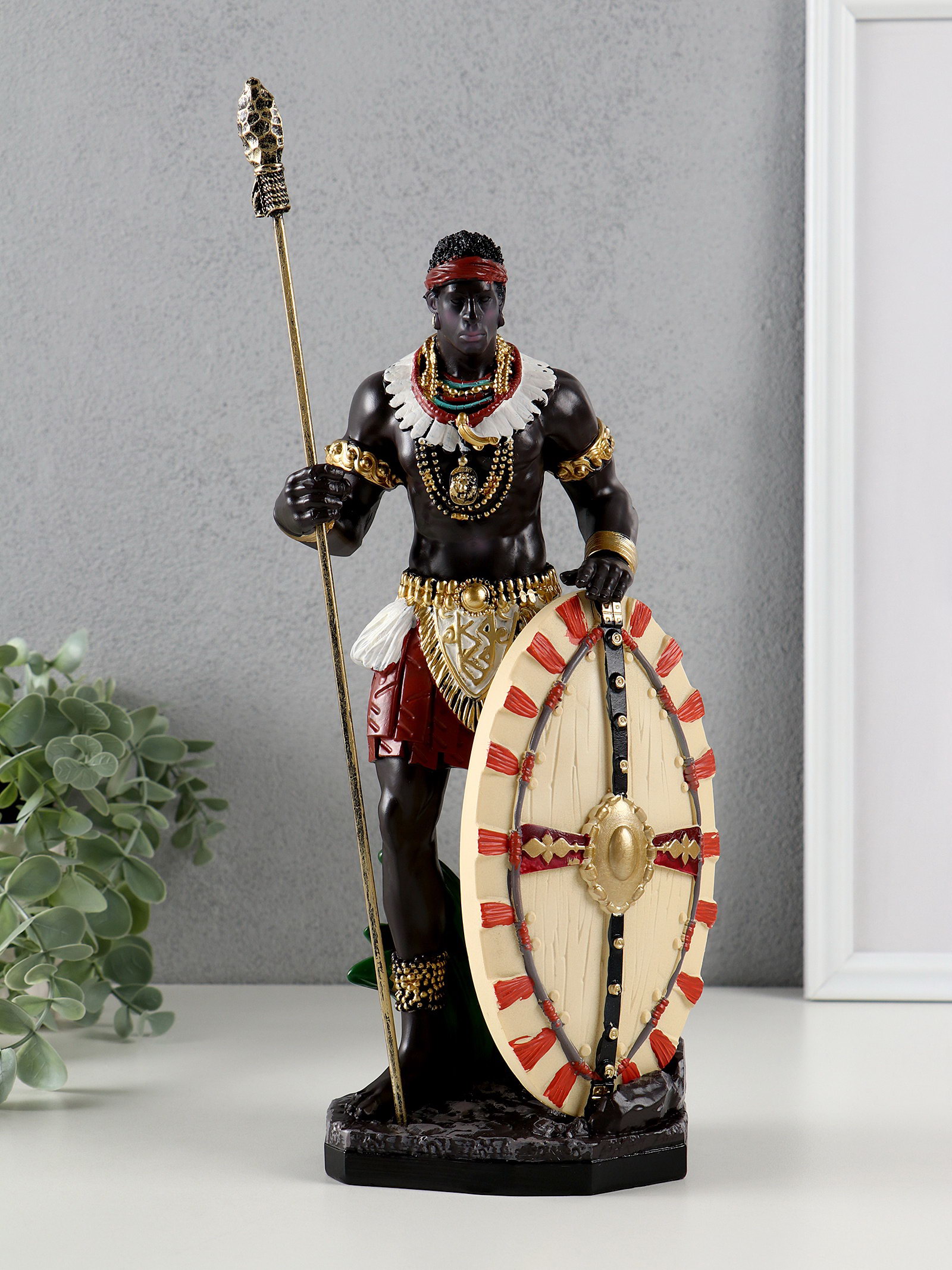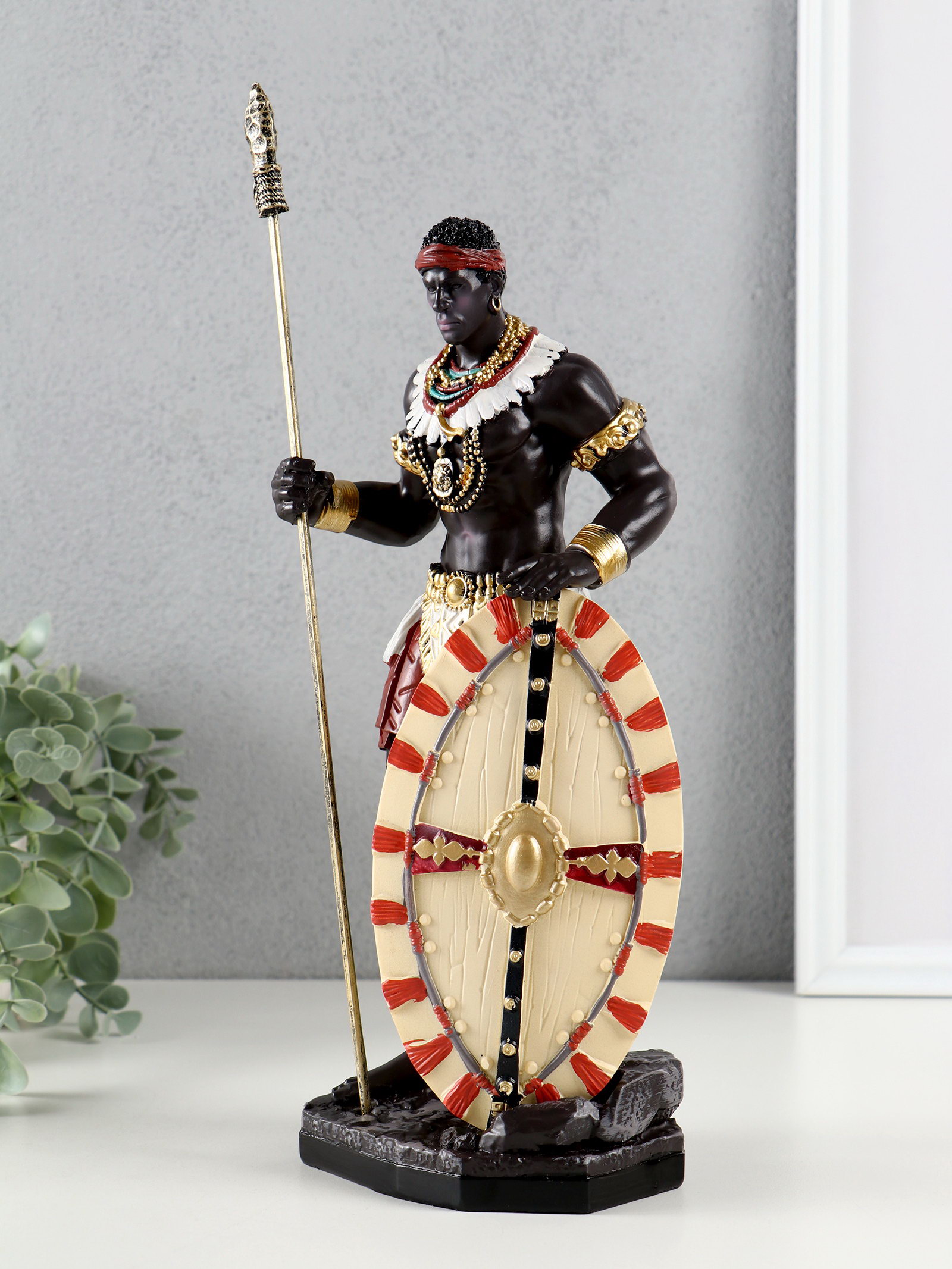 Сувенир полистоун "Воин Африки с копьем и щитом" 12х9х29 см, 9x12x29 см., Китай