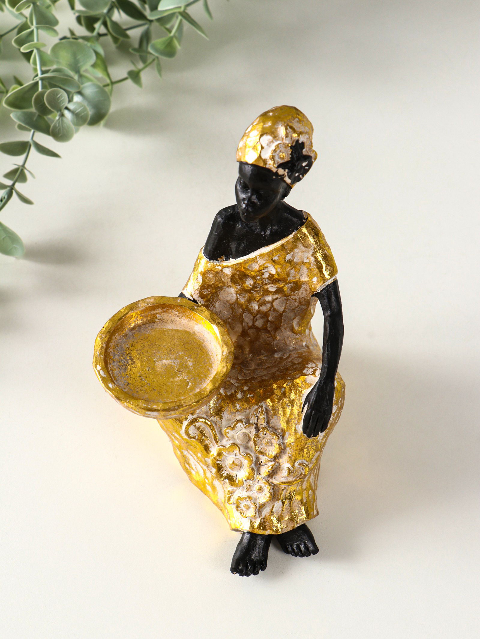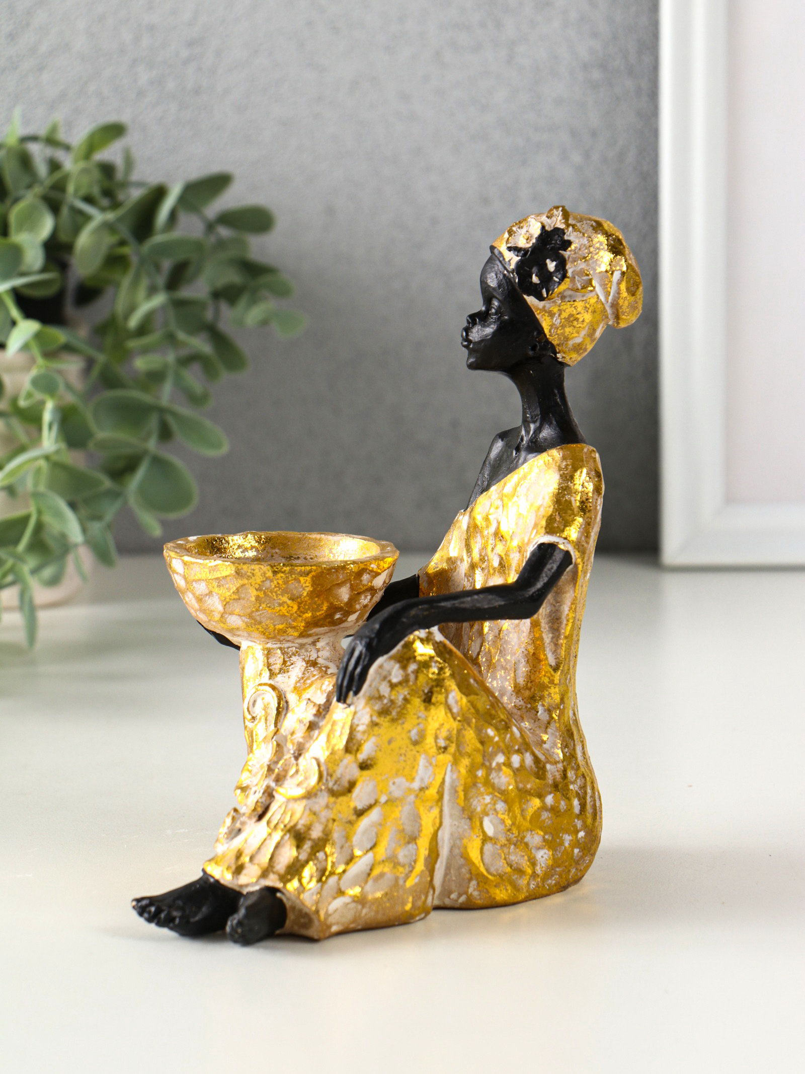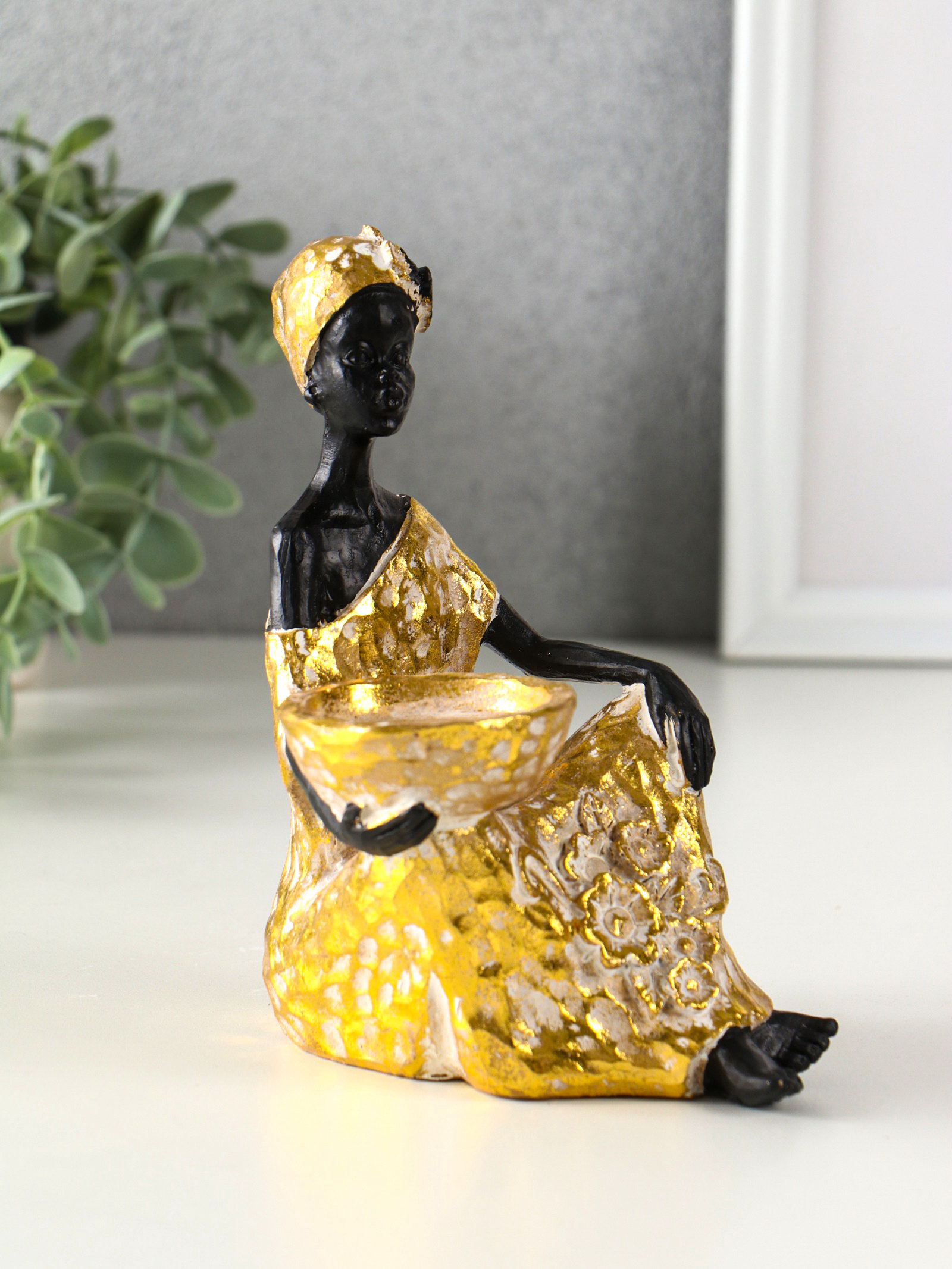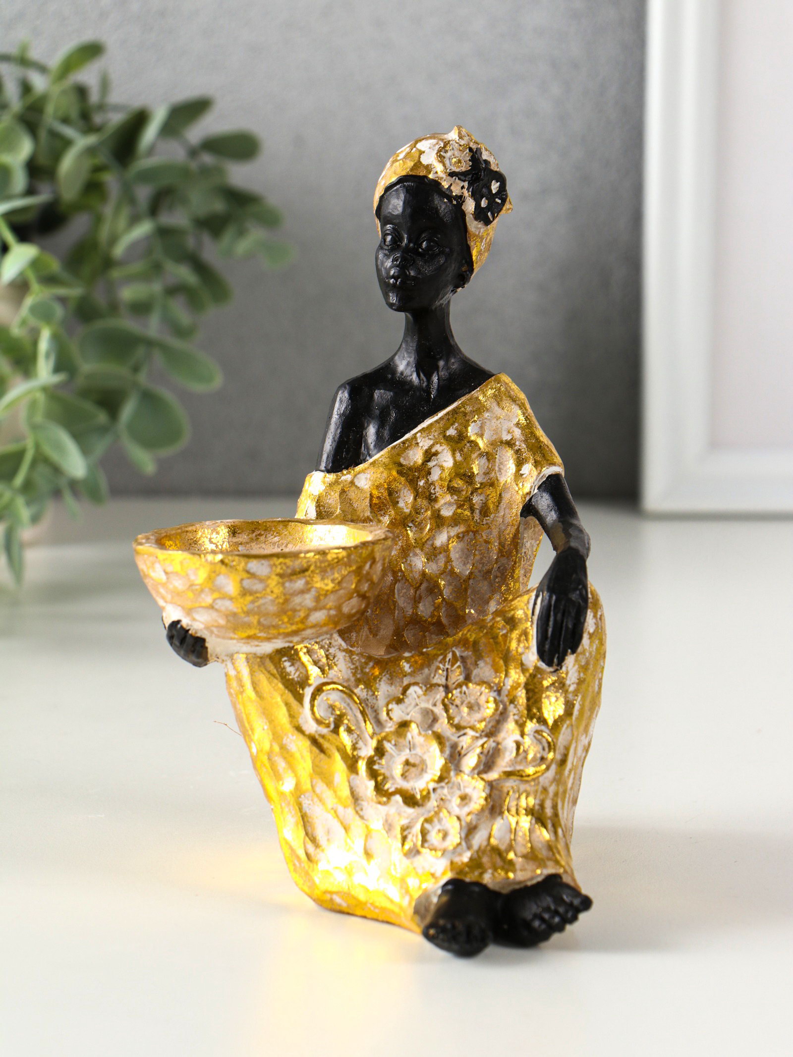 Фигурка-подсвечник на 1 свечу "Африканка в золотом платье с цветами", полистоун, d=4.5 см, 10.5x12x16 см, 12x10.5x16 см., Китай