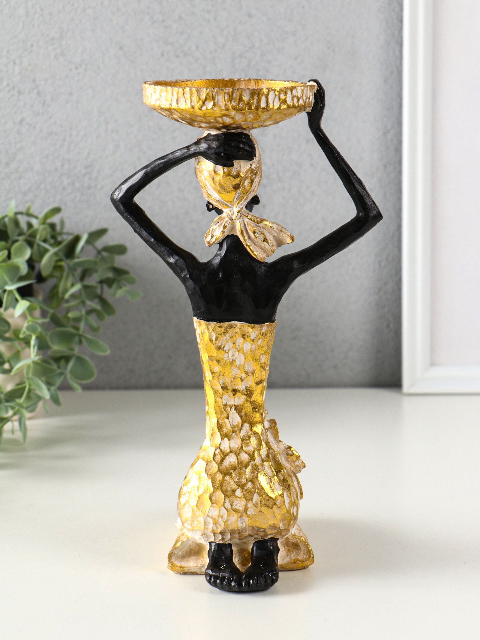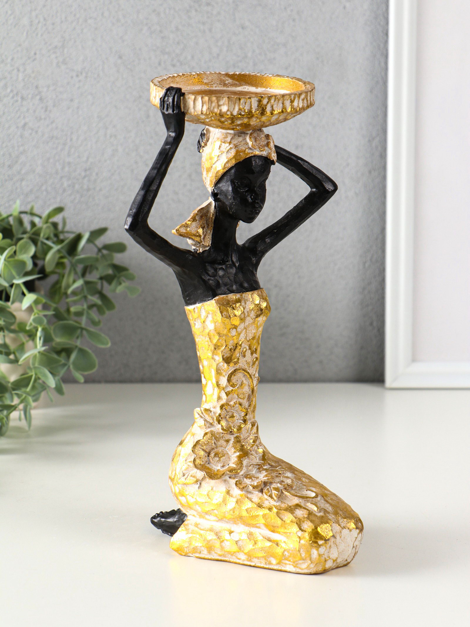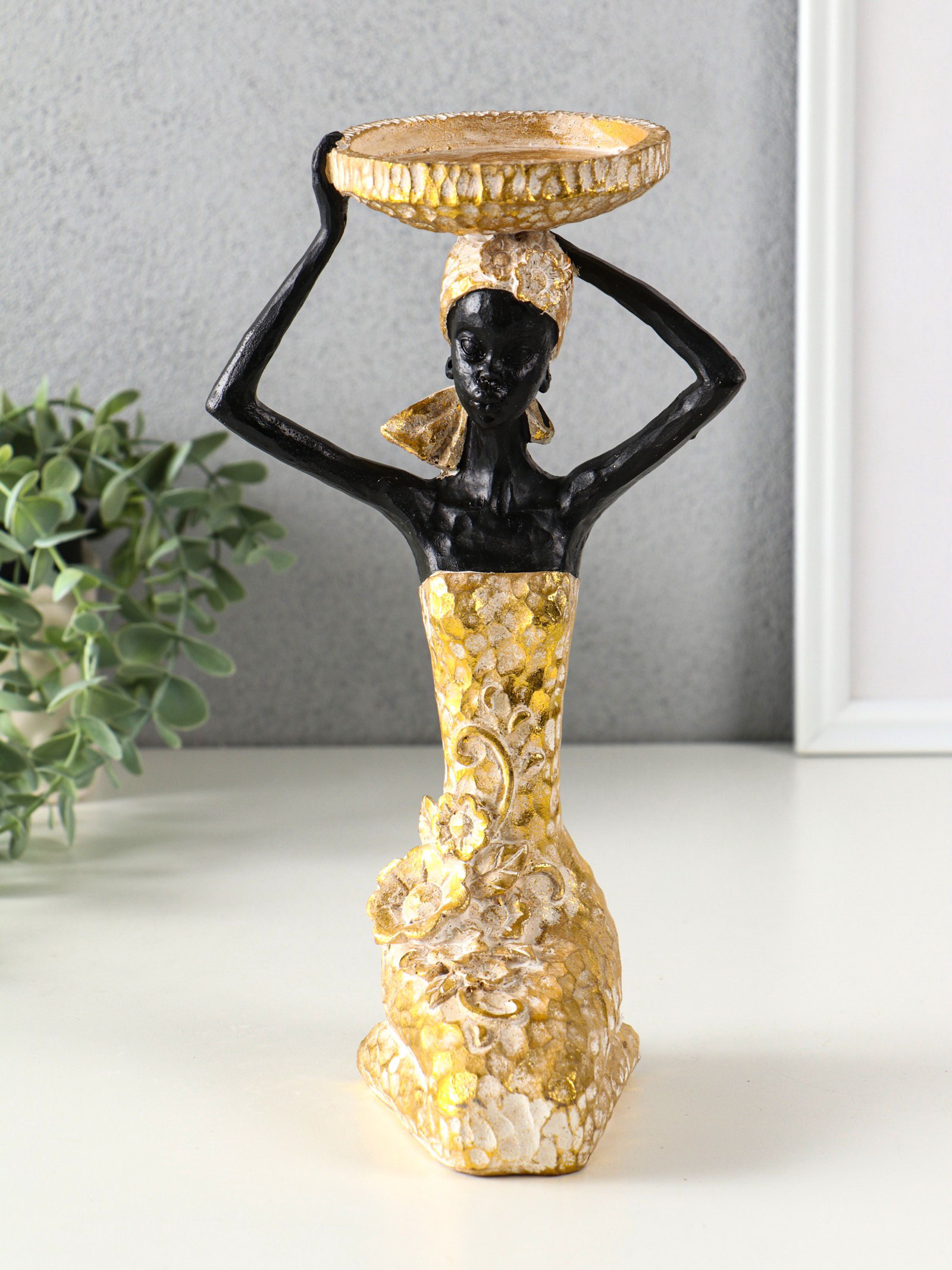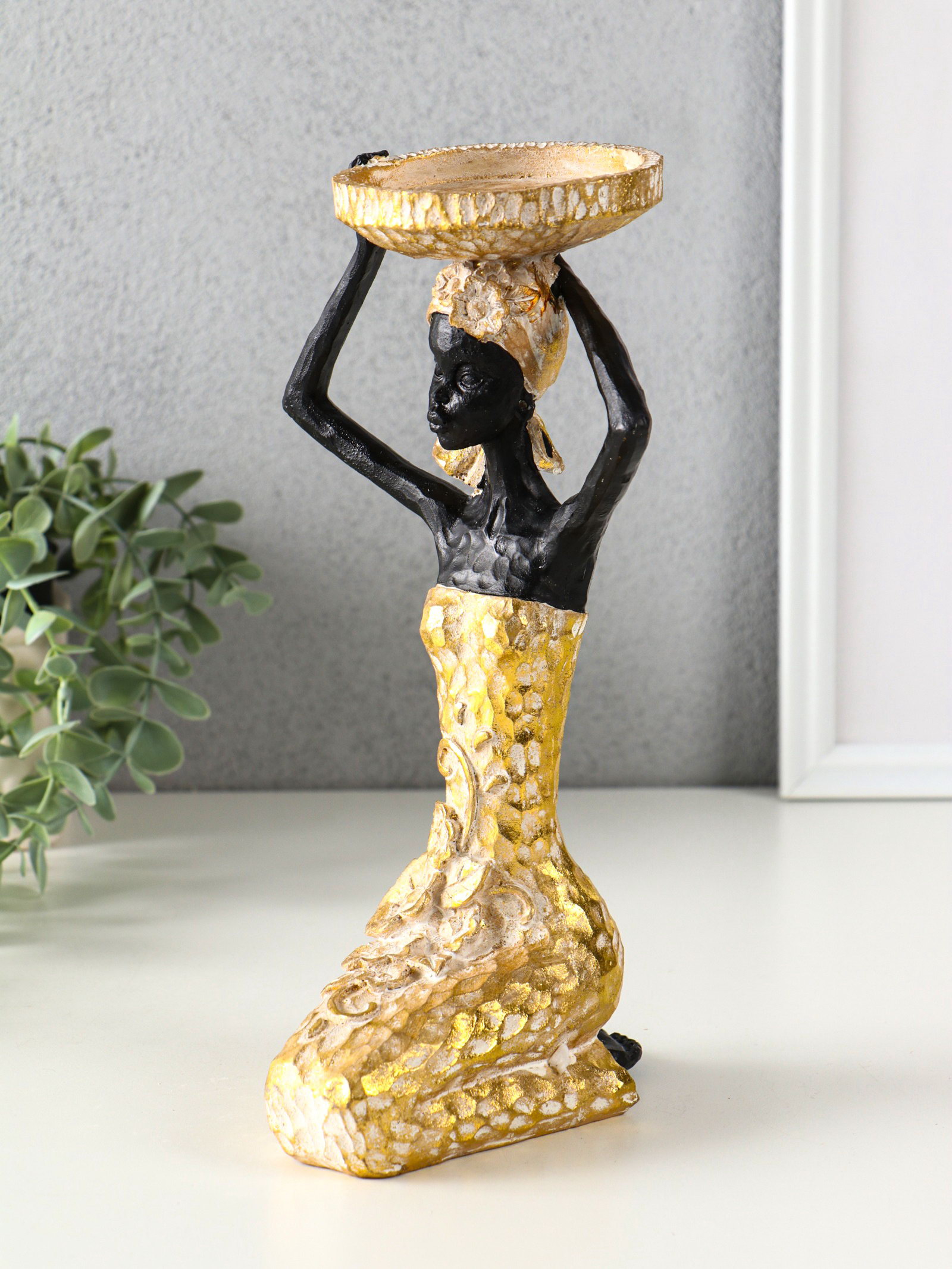 Фигура-подсвечник на 1 свечу"Африканка в косынке с цветами", полистоун под золото, d=8 см, 14x15x27.5 см, 15x14x27.5 см., Китай