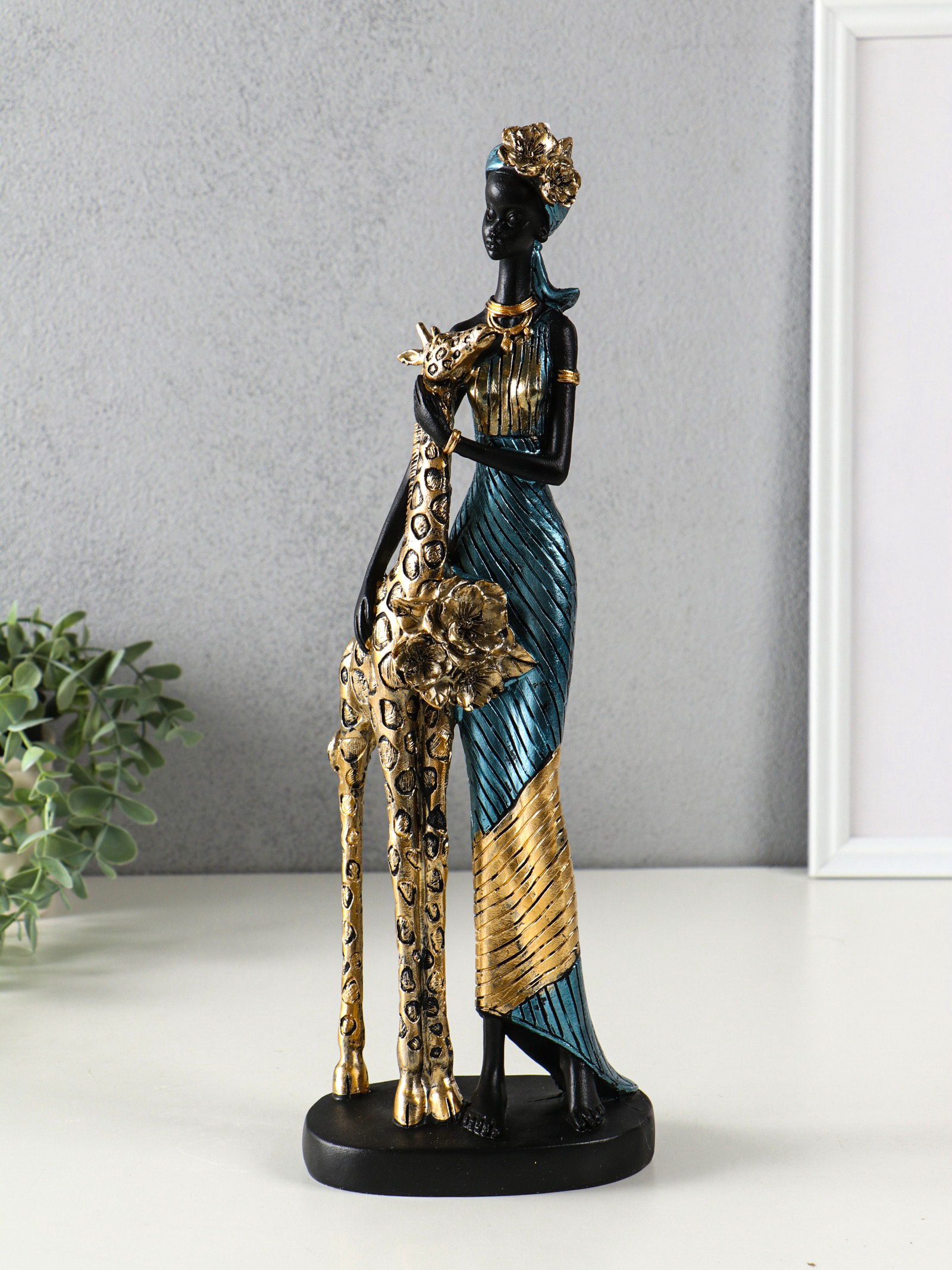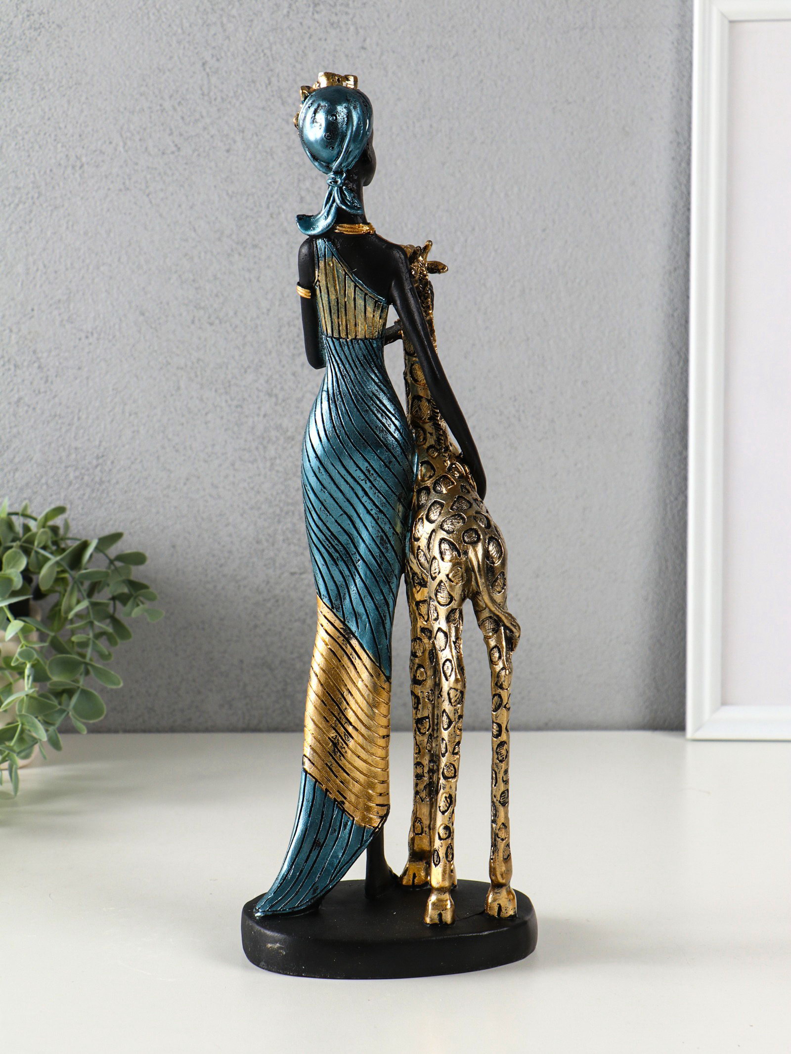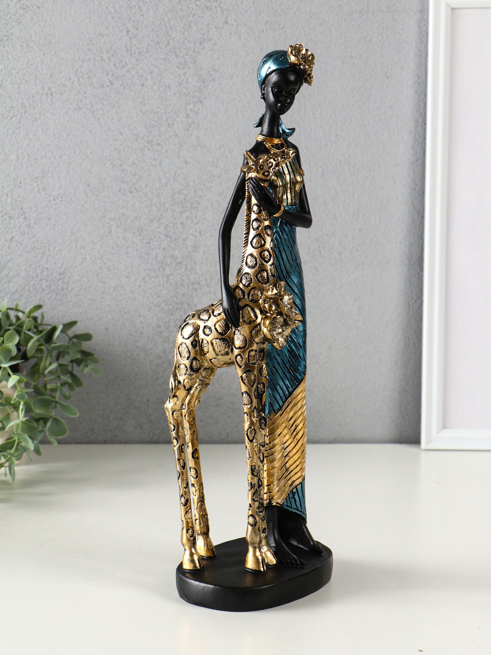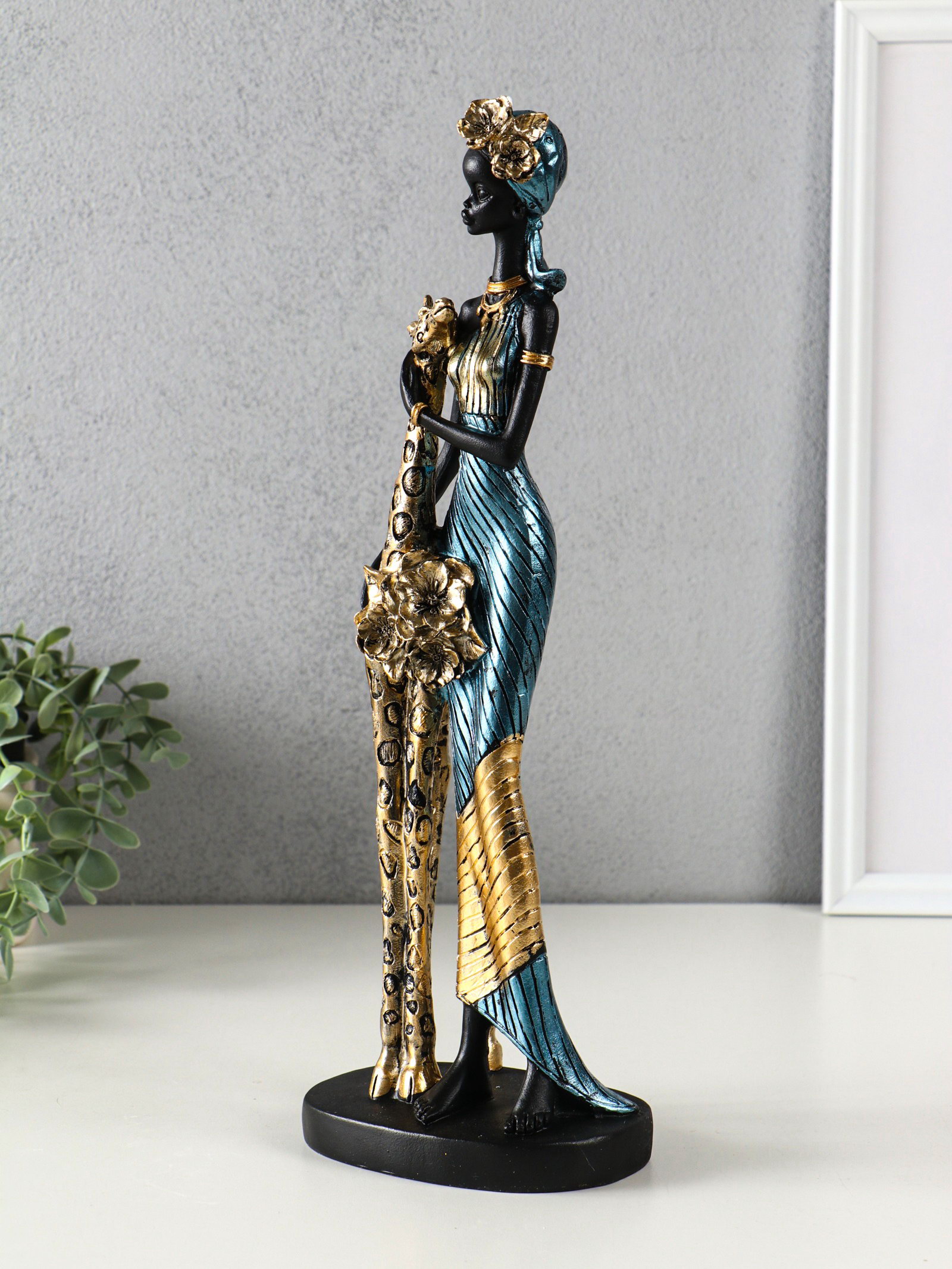 Фигура полистоун "Африканка в платье с жирафом", бензиновый синий, 13x9.5x40 см, 9.5x13x40 см., Китай