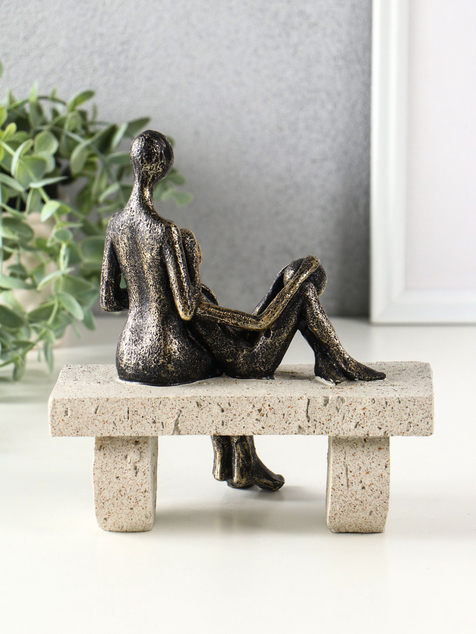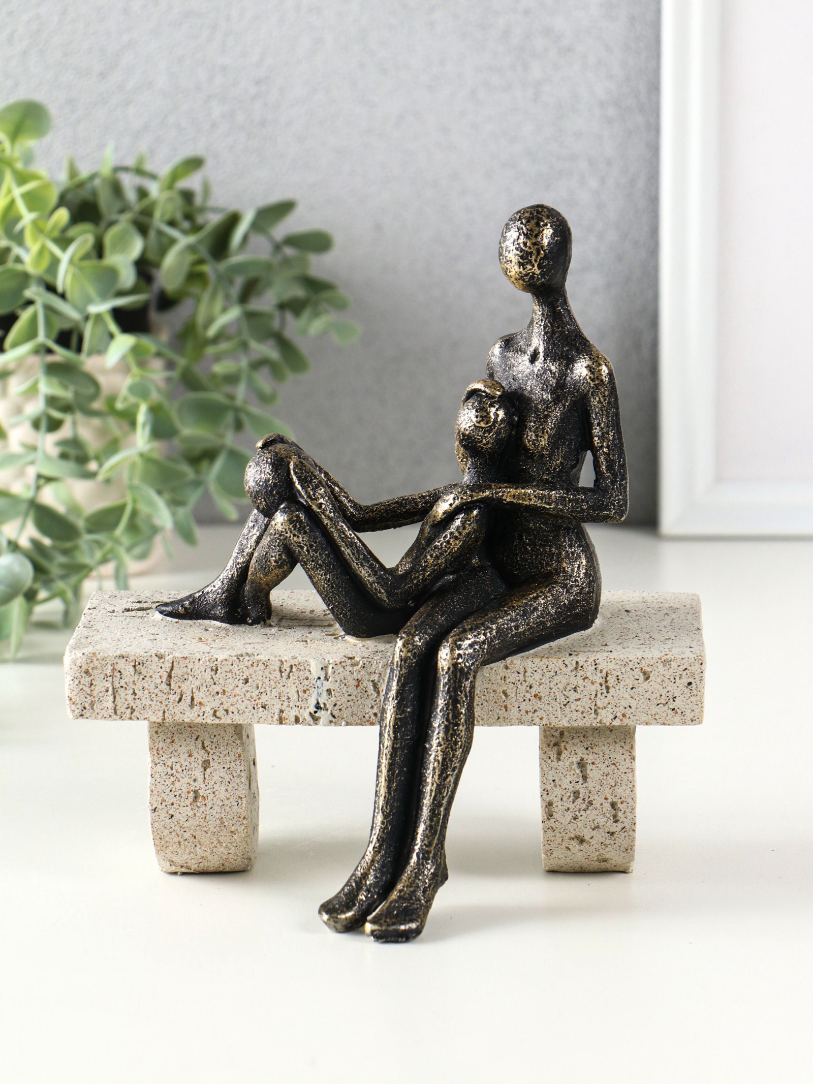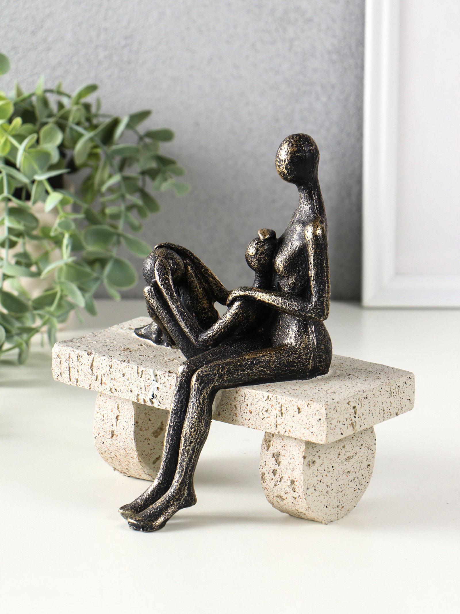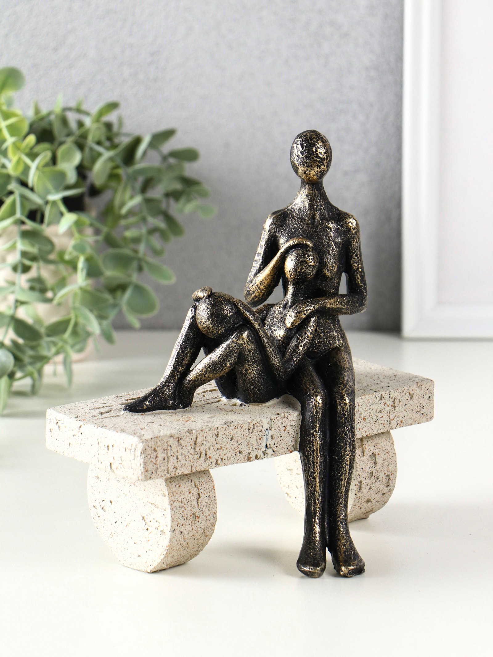 Фигура полистоун "Абстракция. Мама и ребенок на скамейке", бронза с бежевым, 17.5x10.5x19 см, 10.5x17.5x19 см., Китай