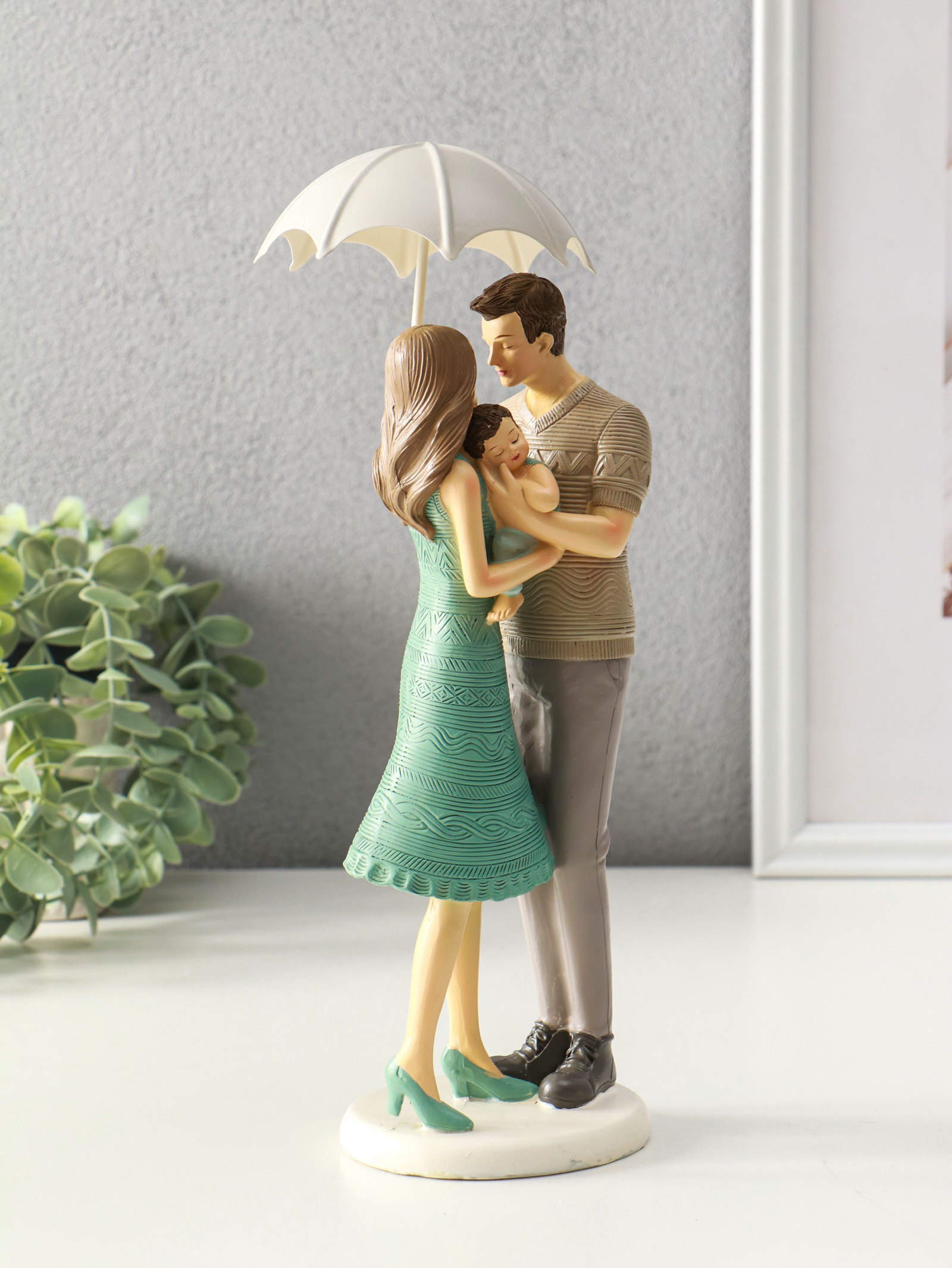Тематика праздника: День семьи, Универсальная тематика Форма фигуры: Мальчик, Пара Размер упаковки: 14 x 12 x 29.5 см. tnved: 3926400000 Покрытие: Краска Одноцветный: Нет Цвет: Разноцветный Высота, см: 25.5 Эта скульптура семьи под зонтом тёплый образ, застывший в камне. Она напоминает о самом ценном: о близости, уюте и заботе, которые не зависят от погоды. Композиция станет глубоким символическим подарком на новоселье, годовщину или День семьи, создав в интерьере уголок безмятежности и любви. Особенности