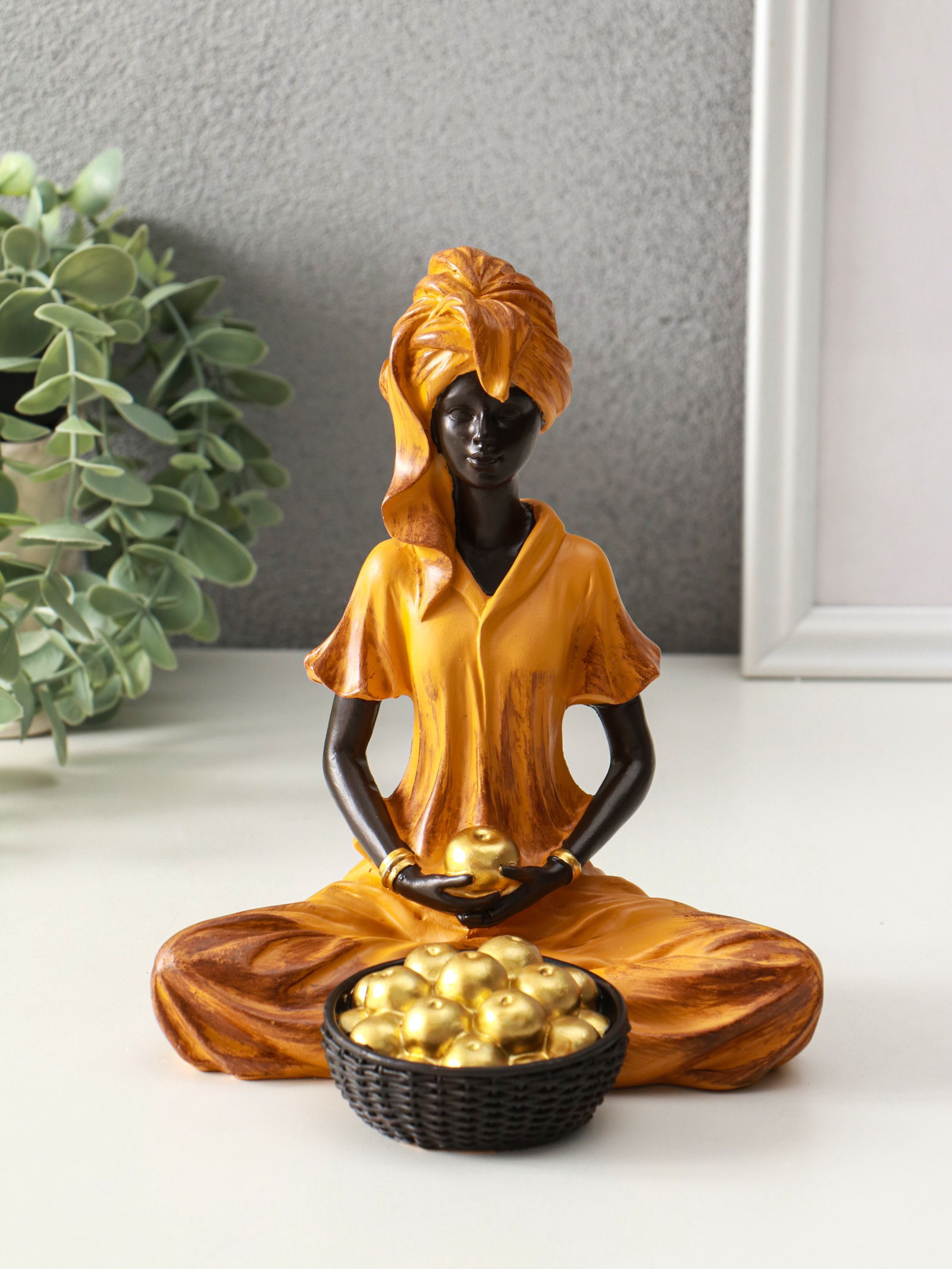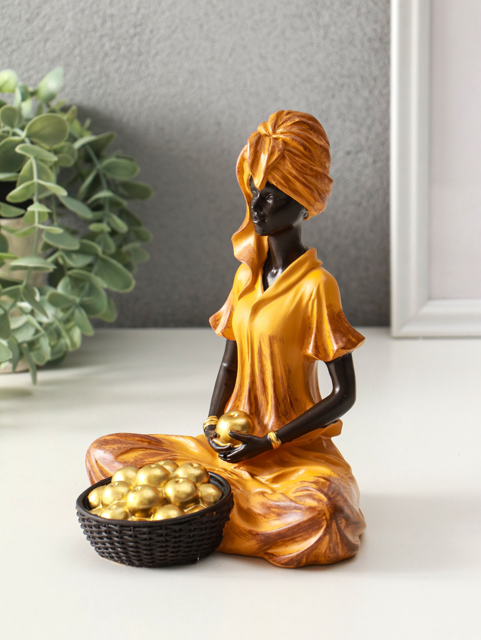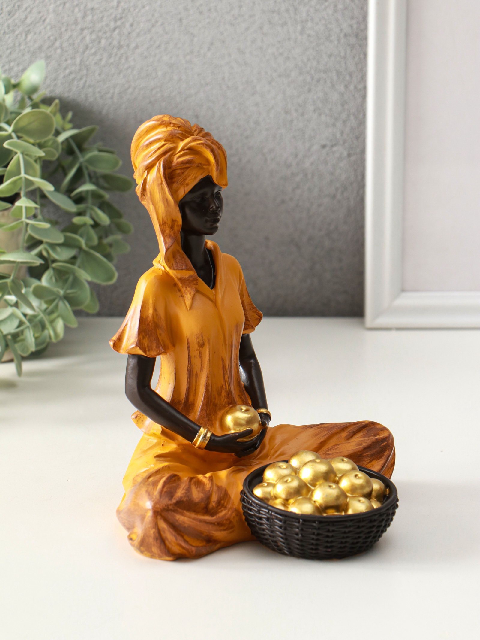 Фигура полистоун "Африканка в горчичном наряде, с яблоками в корзине", 14x15.5x17.5 см, 15.5x14x17.5 см., Китай