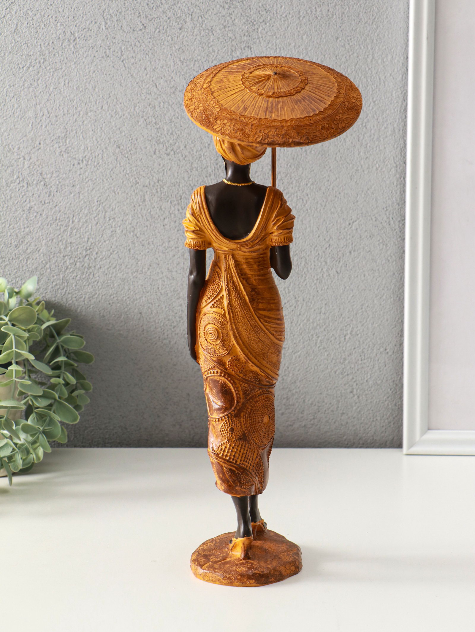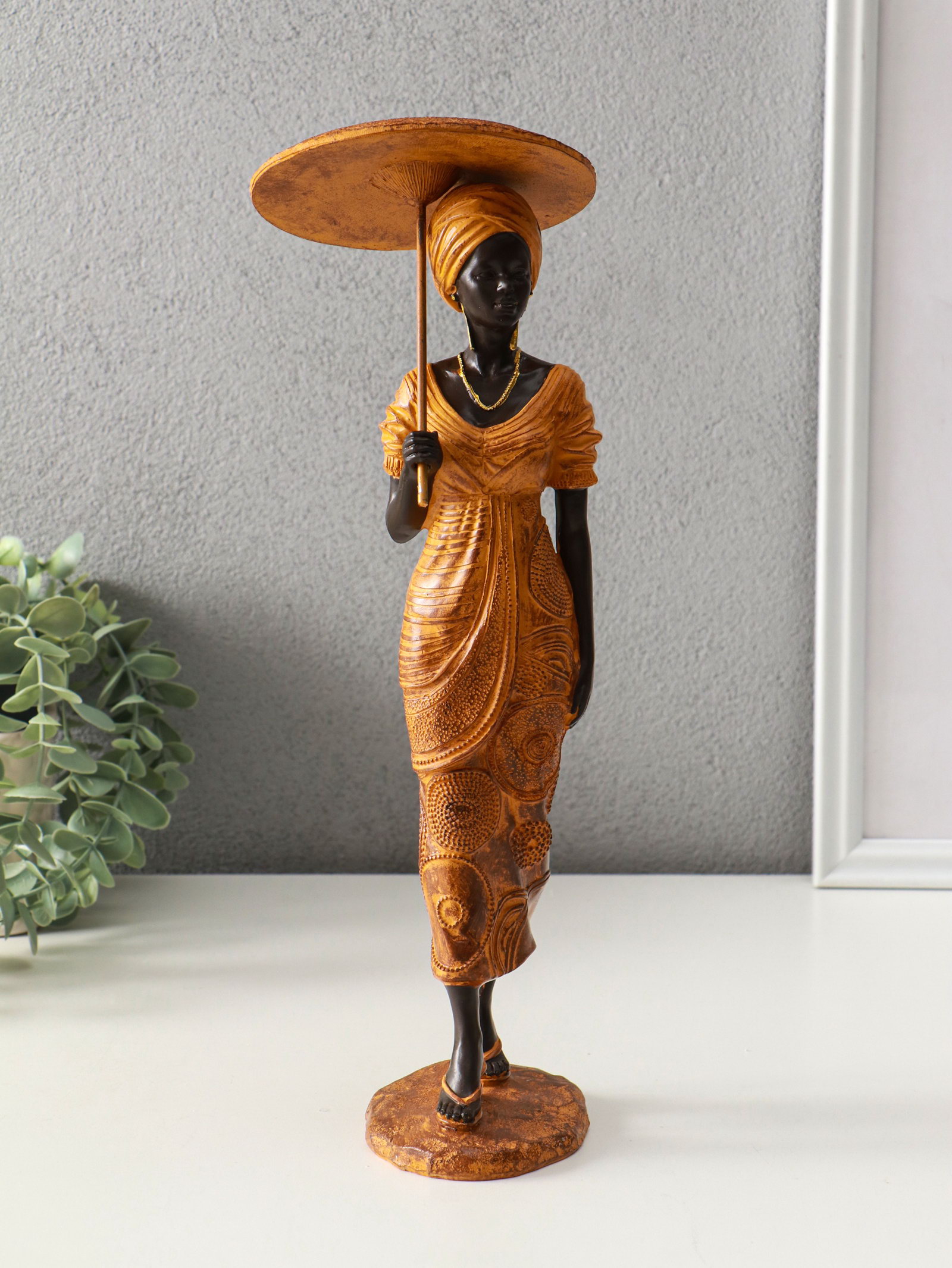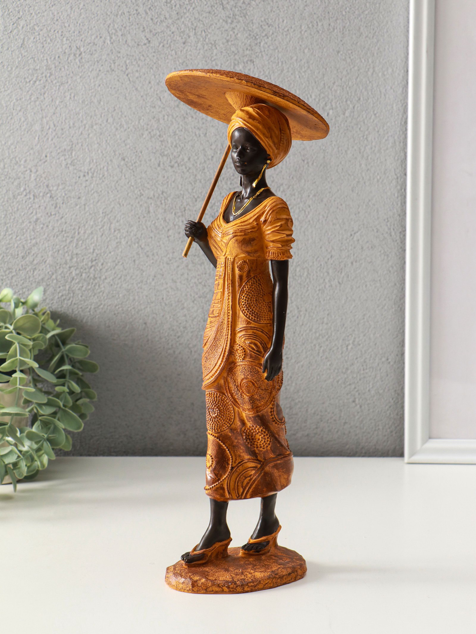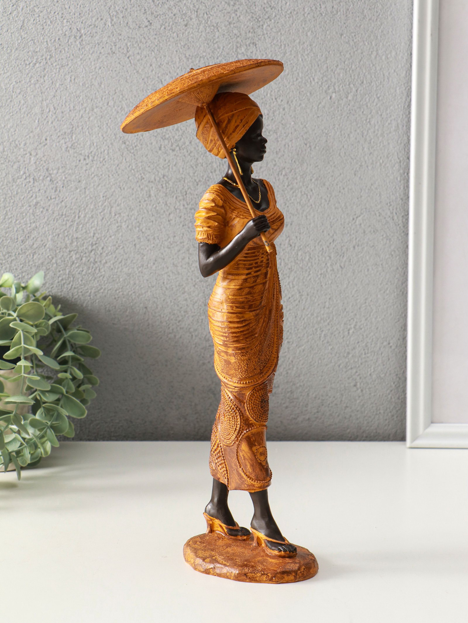 Фигура полистоун "Африканка в горчичном наряде с зонтом", 11.5x11.5x36.5 см, 11.5x11.5x36.5 см., Китай