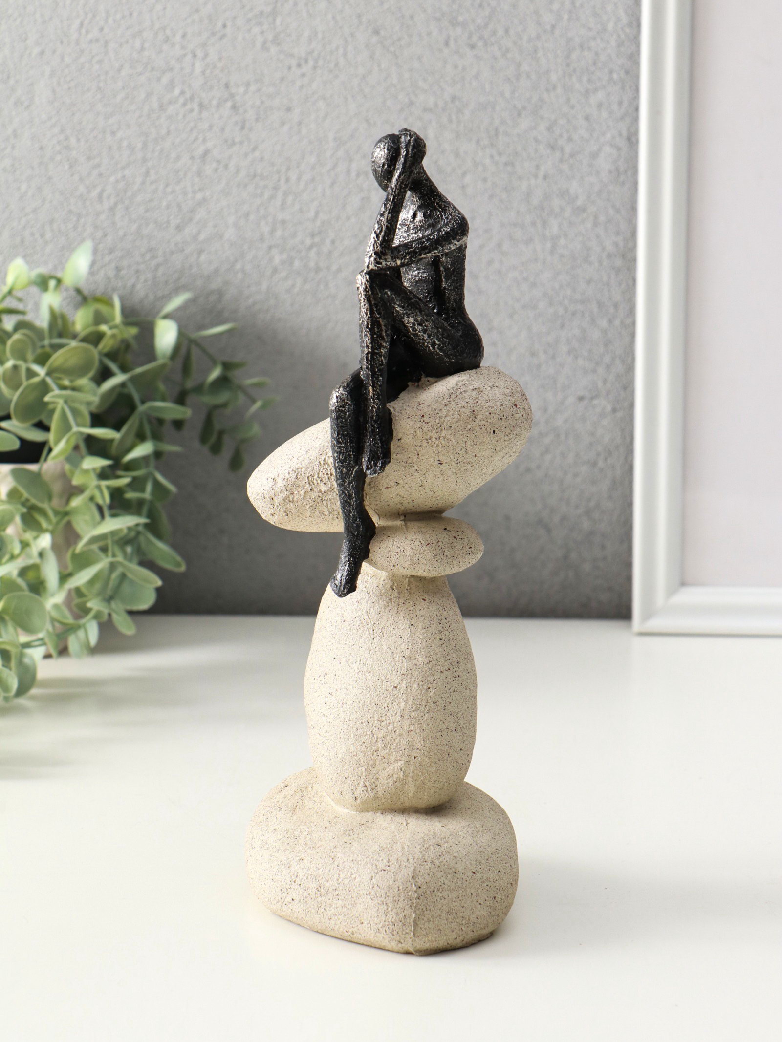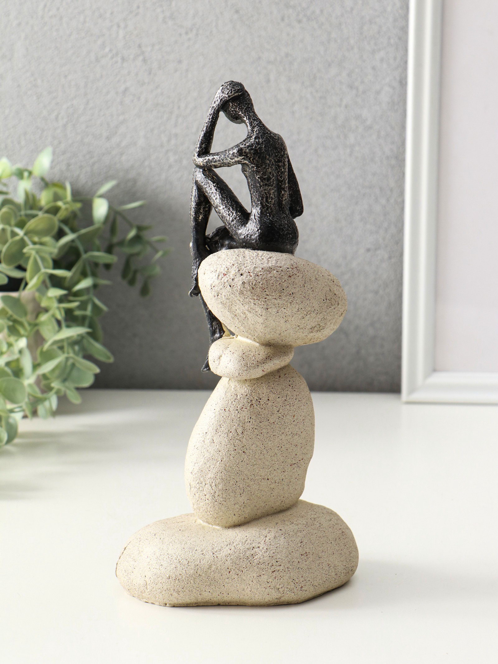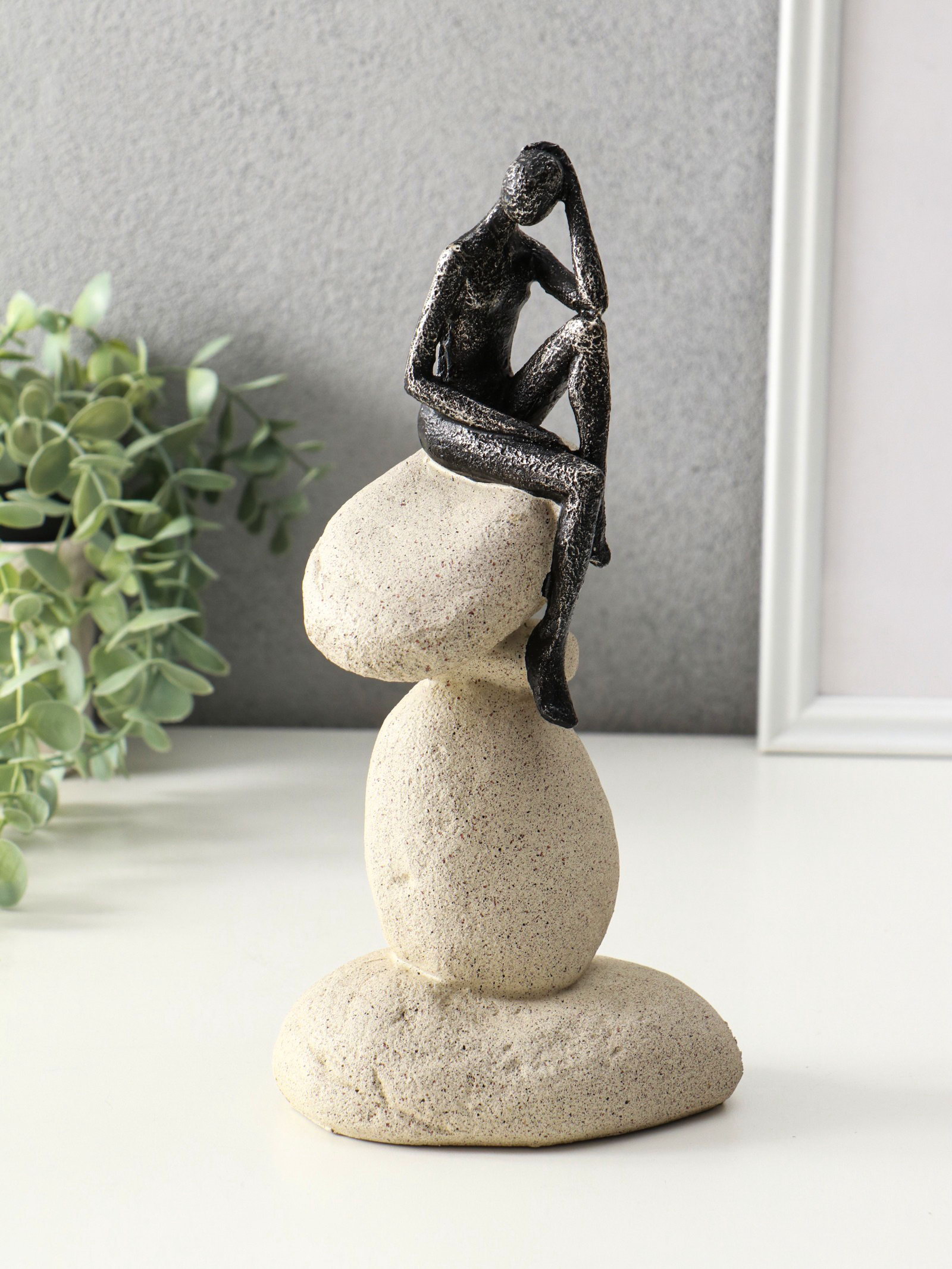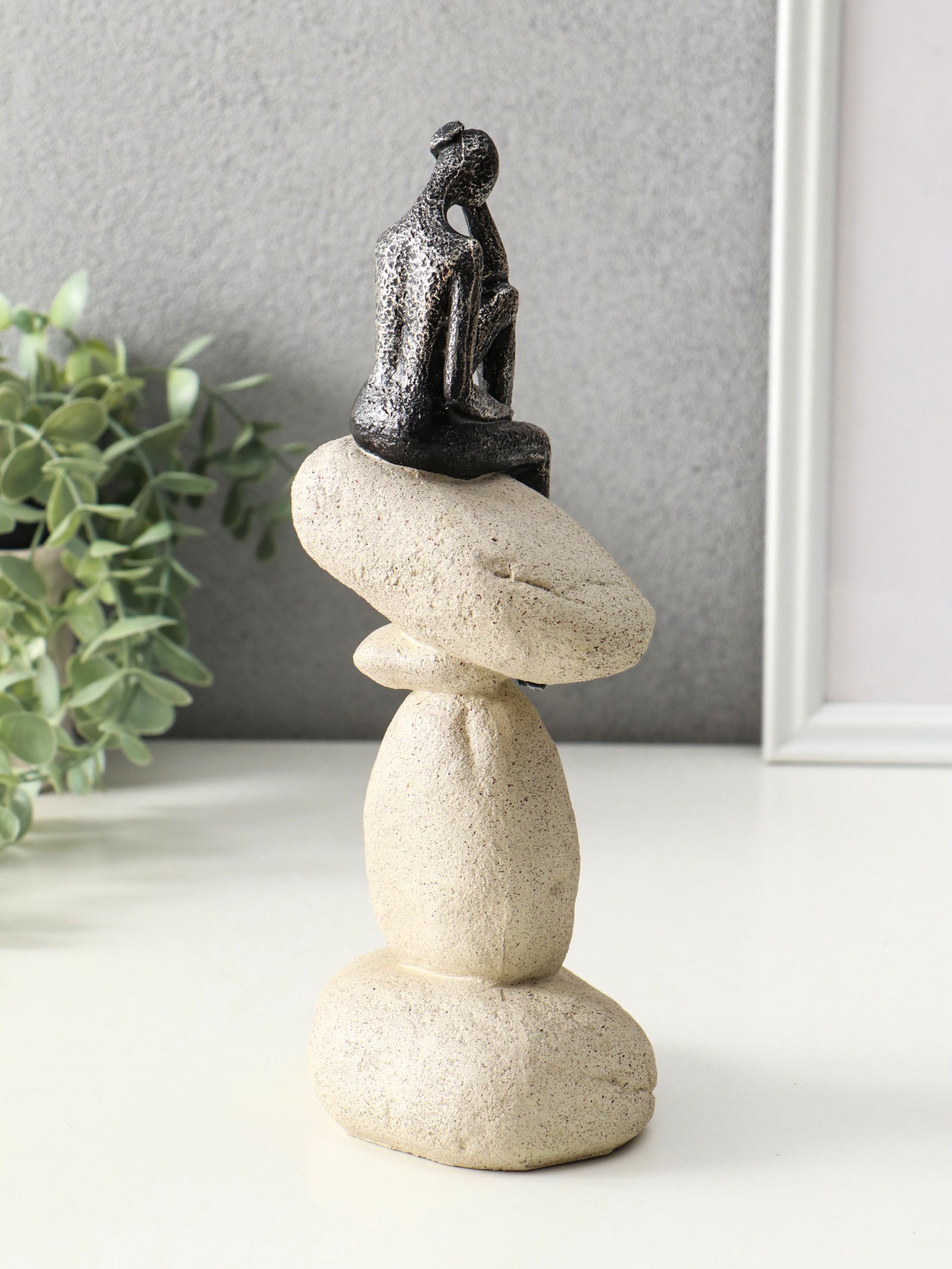Фигура полистоун "Абстракция. Мыслитель и сад камней", бронза с бежевым, 12x9x25.5 см, 9x12x25.5 см., Китай