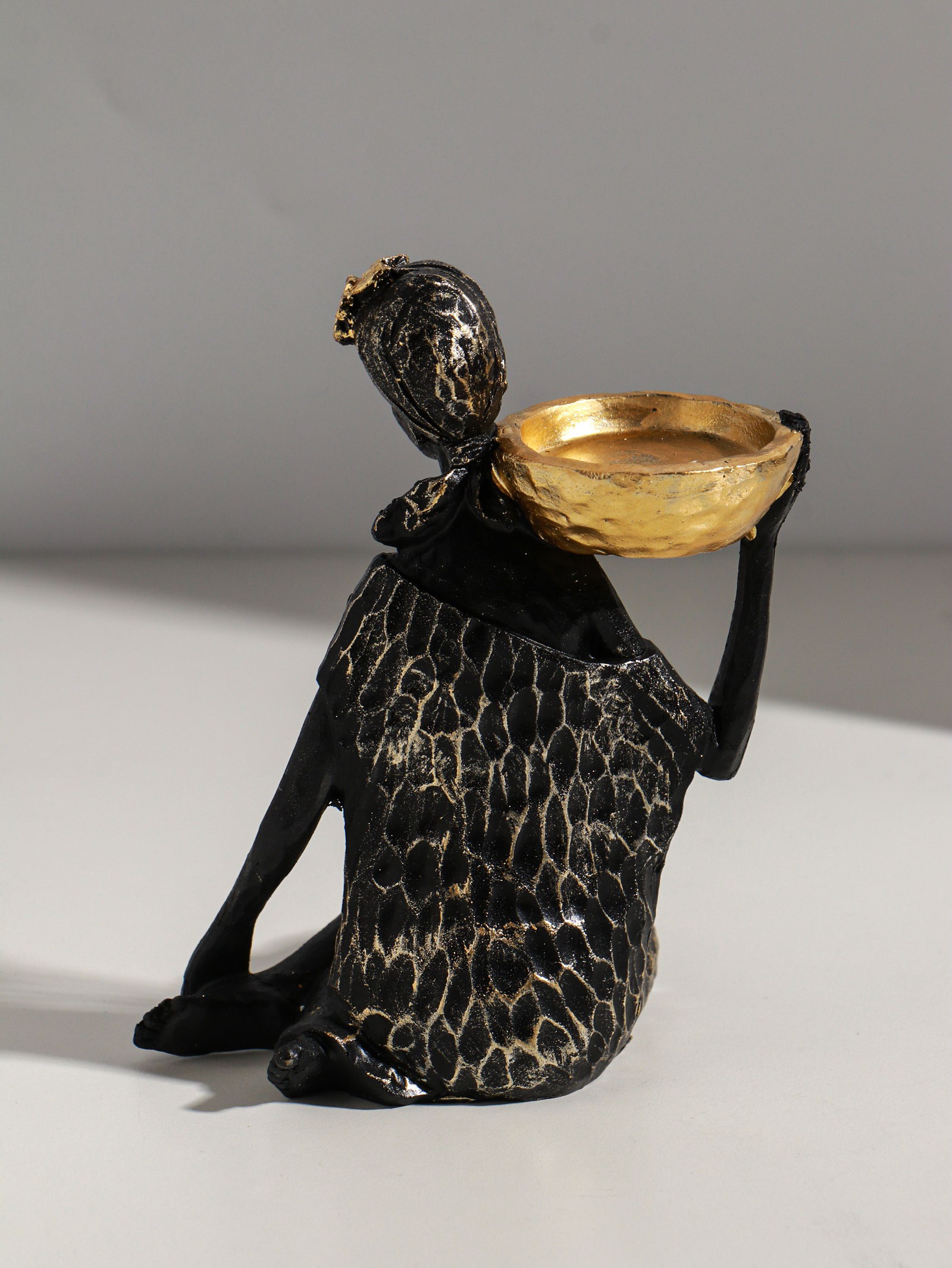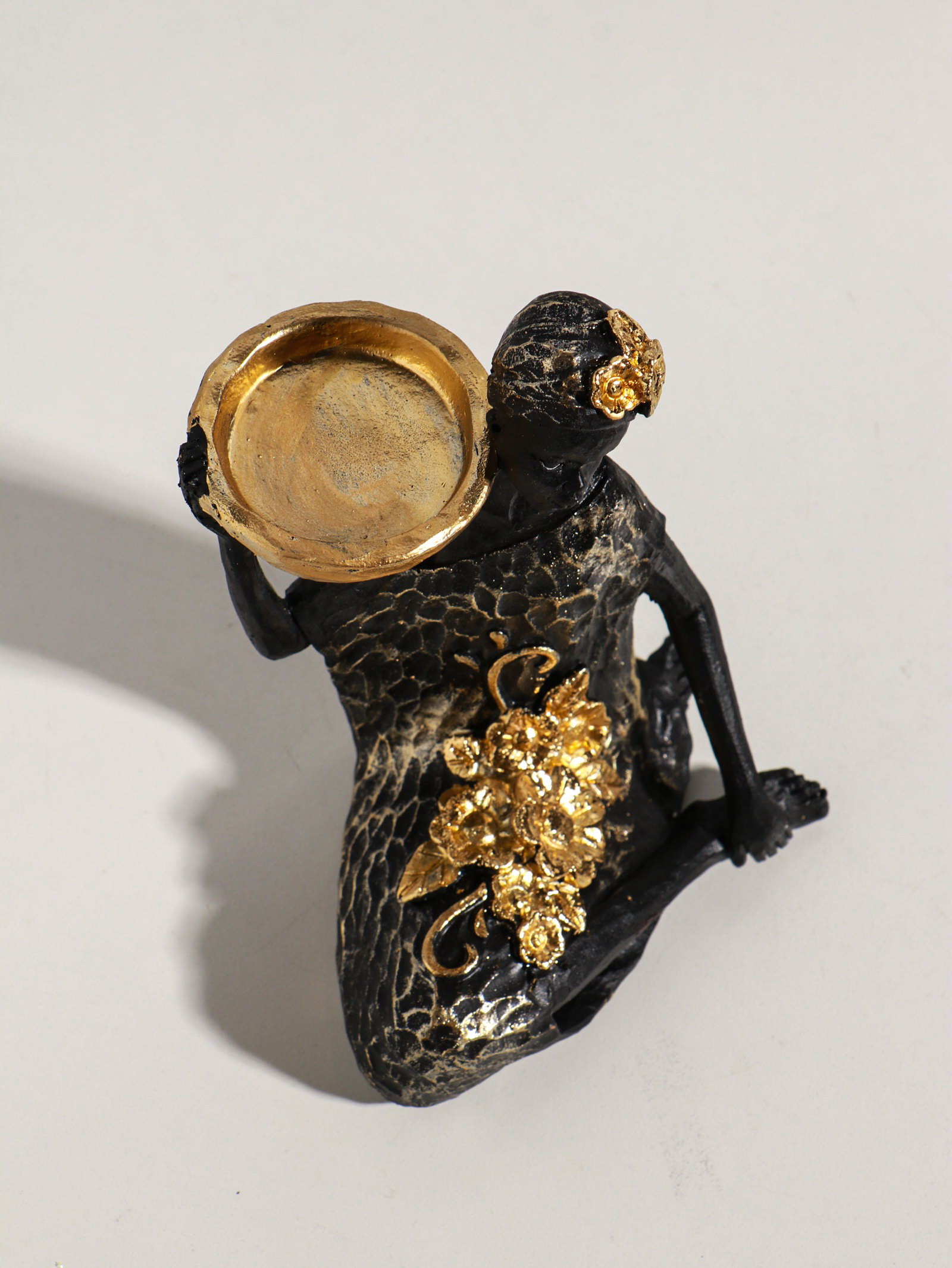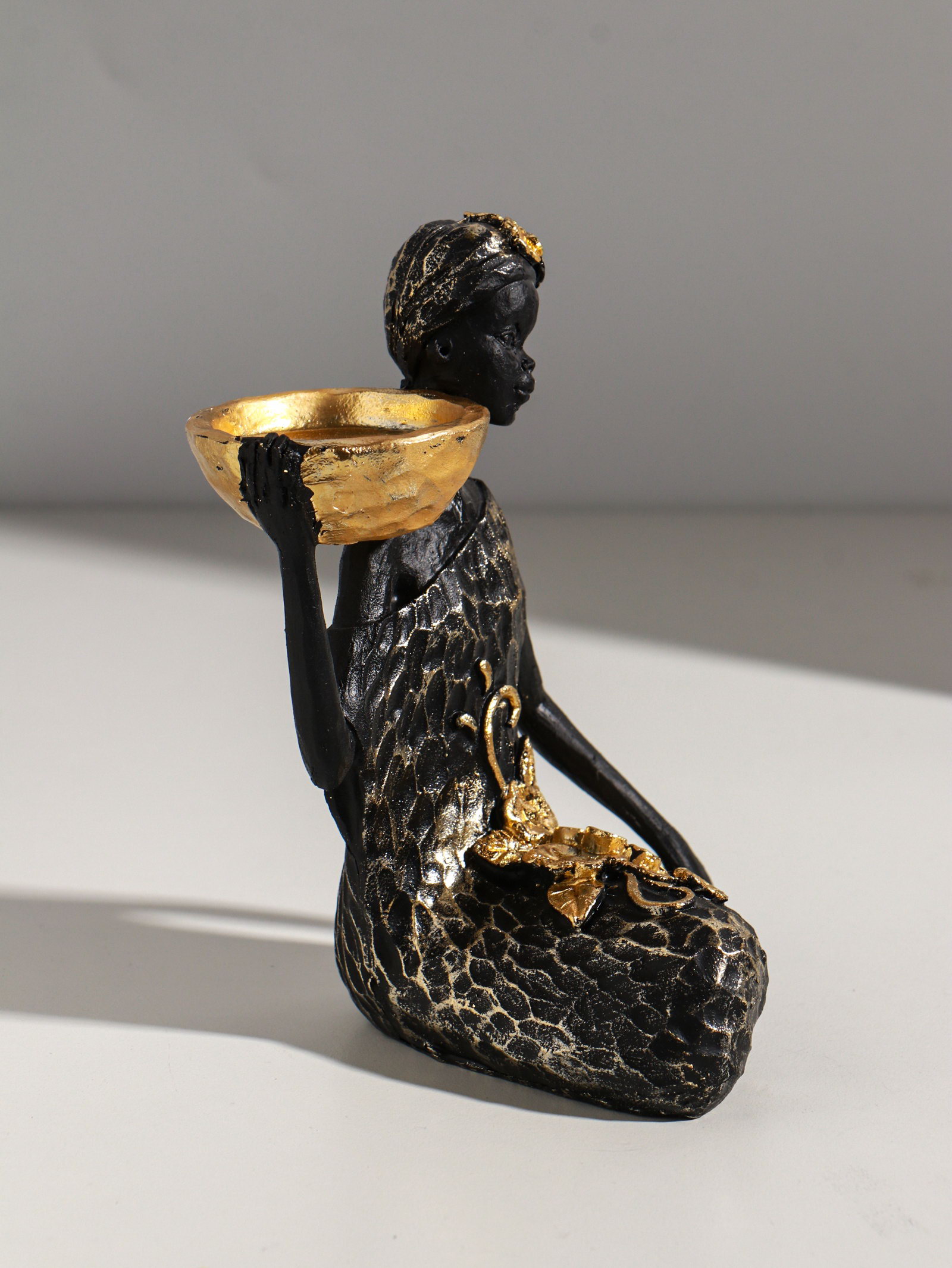 Фигурка-подсвечник на 1 свечу "Африканка в чёрном платье с цветами с золотом", полистоун, d=4.5 см, 11x13x16 см, 13x11x16 см., Китай