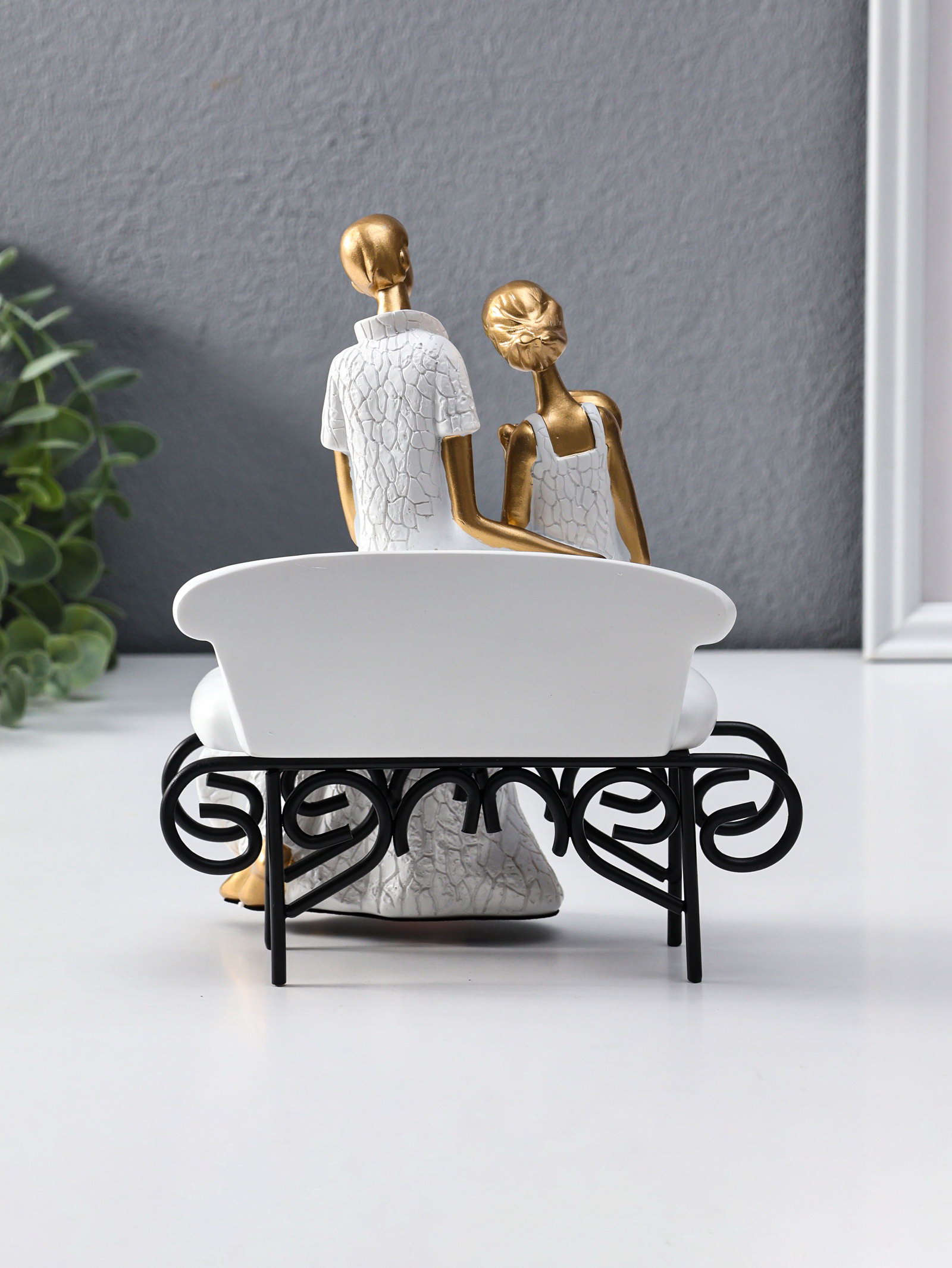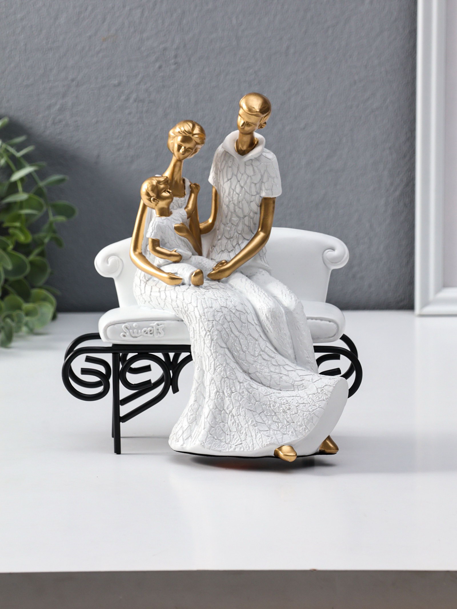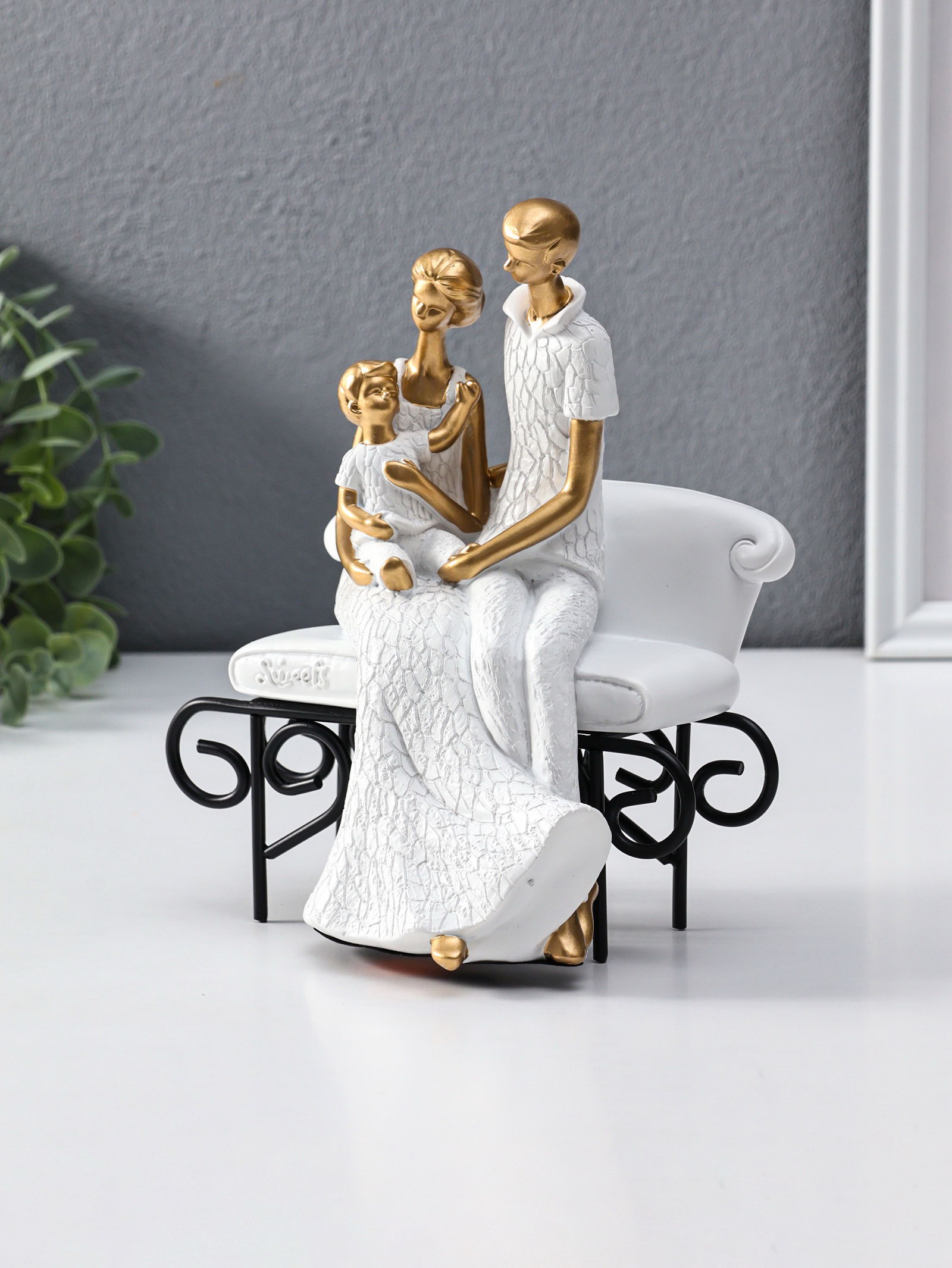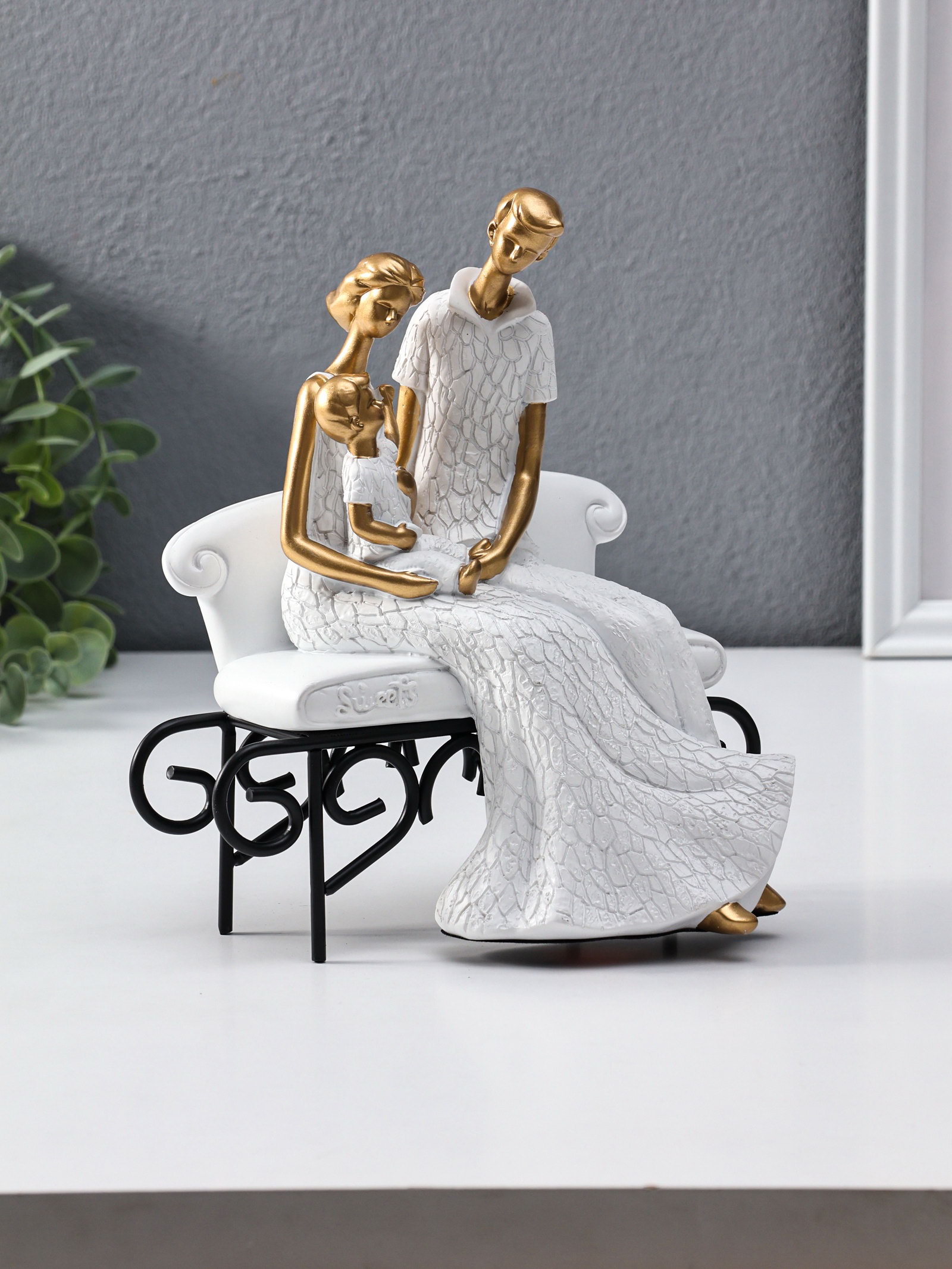 Сувенир полистоун "Родители с малышом на диванчике" бело-золотой 12.5х18х22.5 см, 18x12.5x22.5 см., Китай