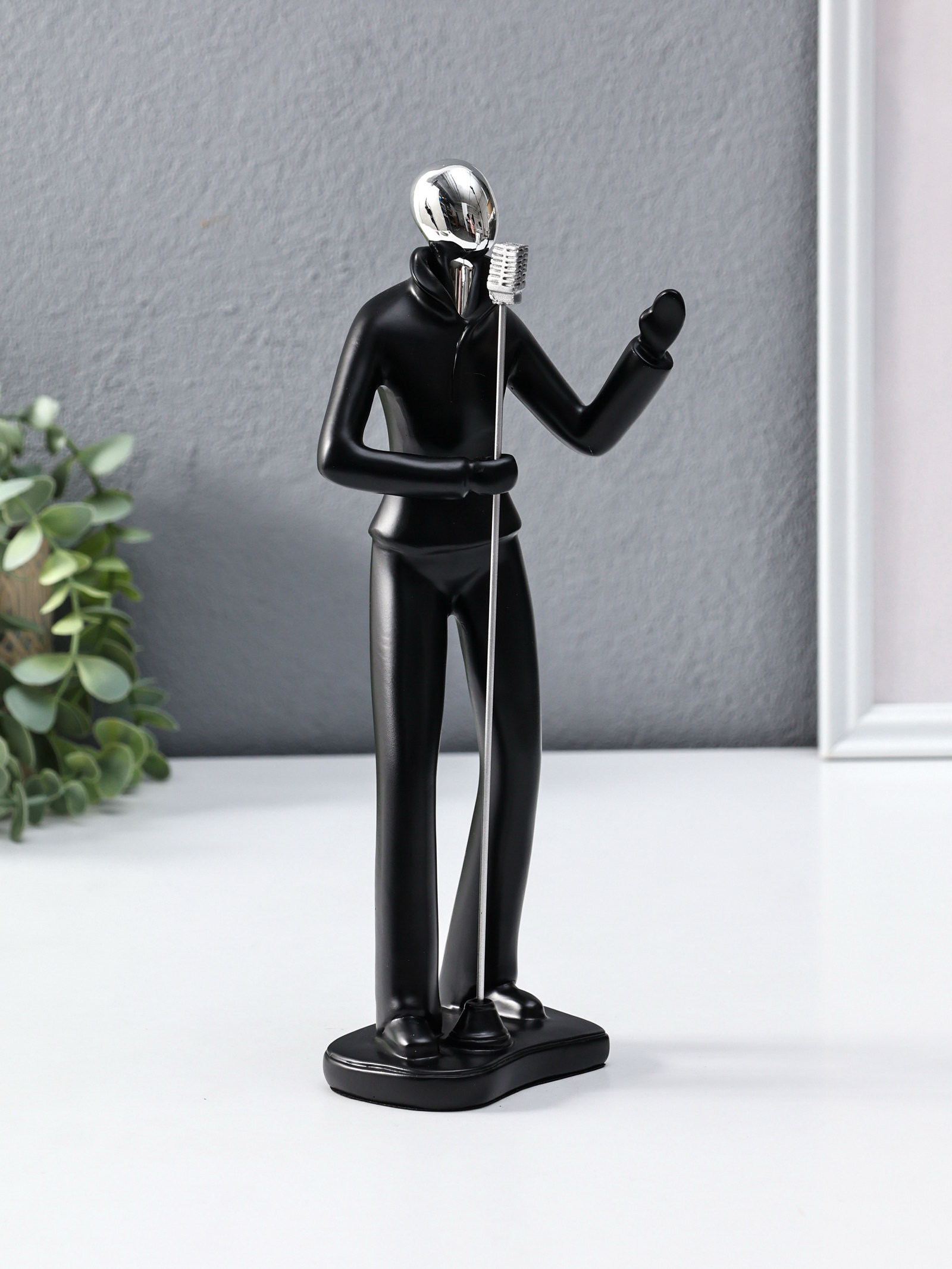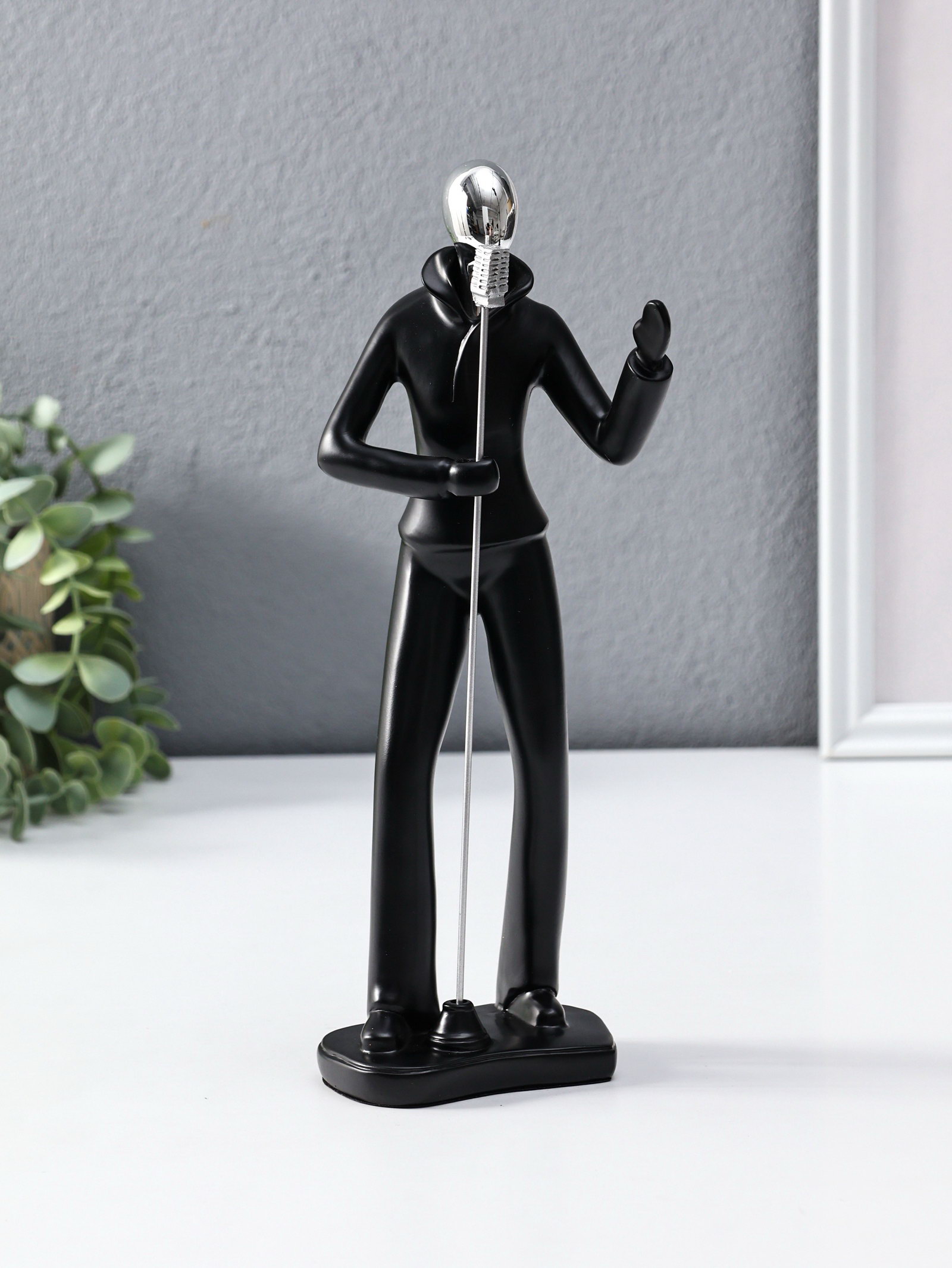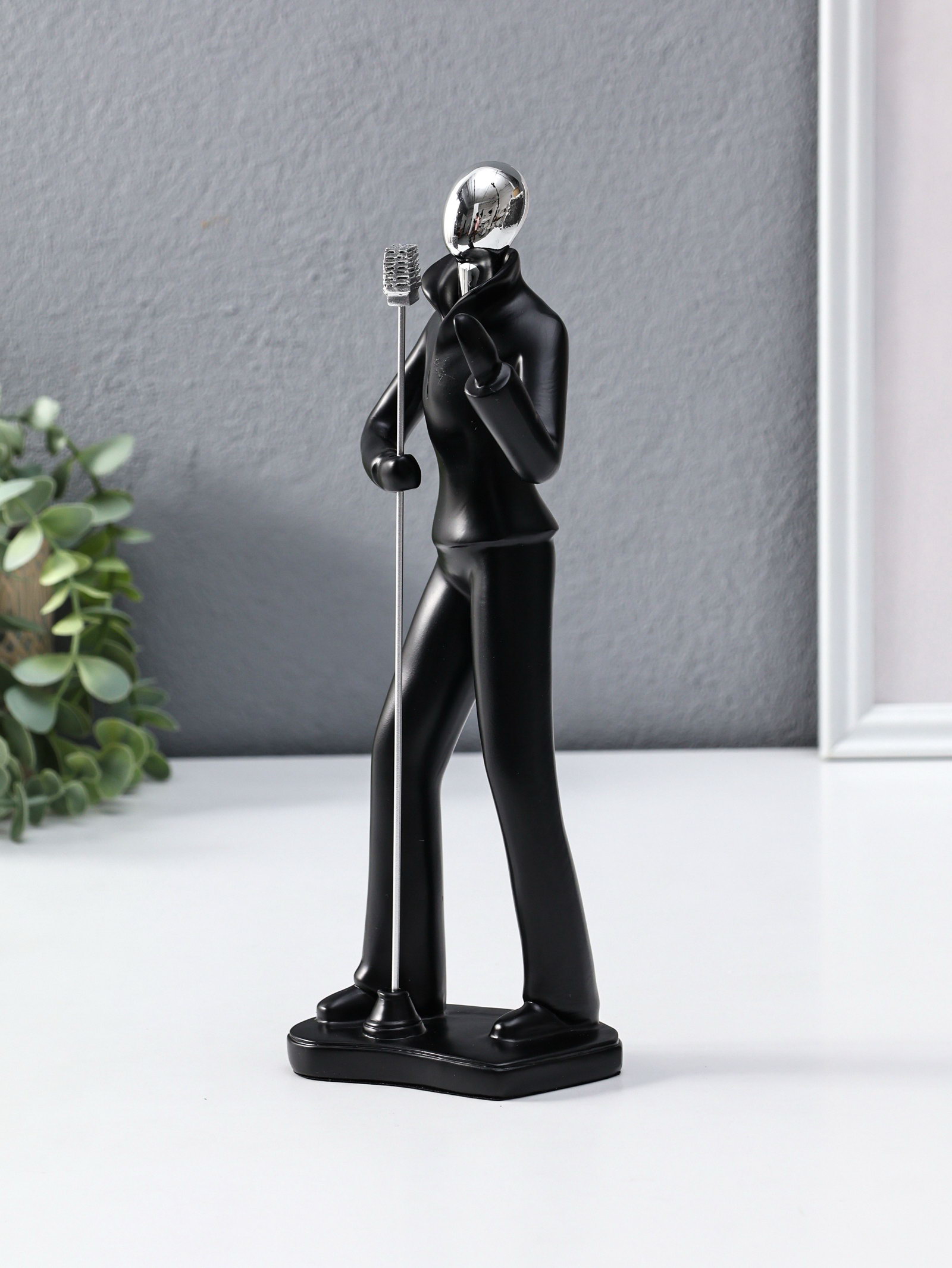 Сувенир полистоун "Вокалист" чёрный с серебром 6.5х10х26.5 см, 10x6.5x26.5 см., Китай