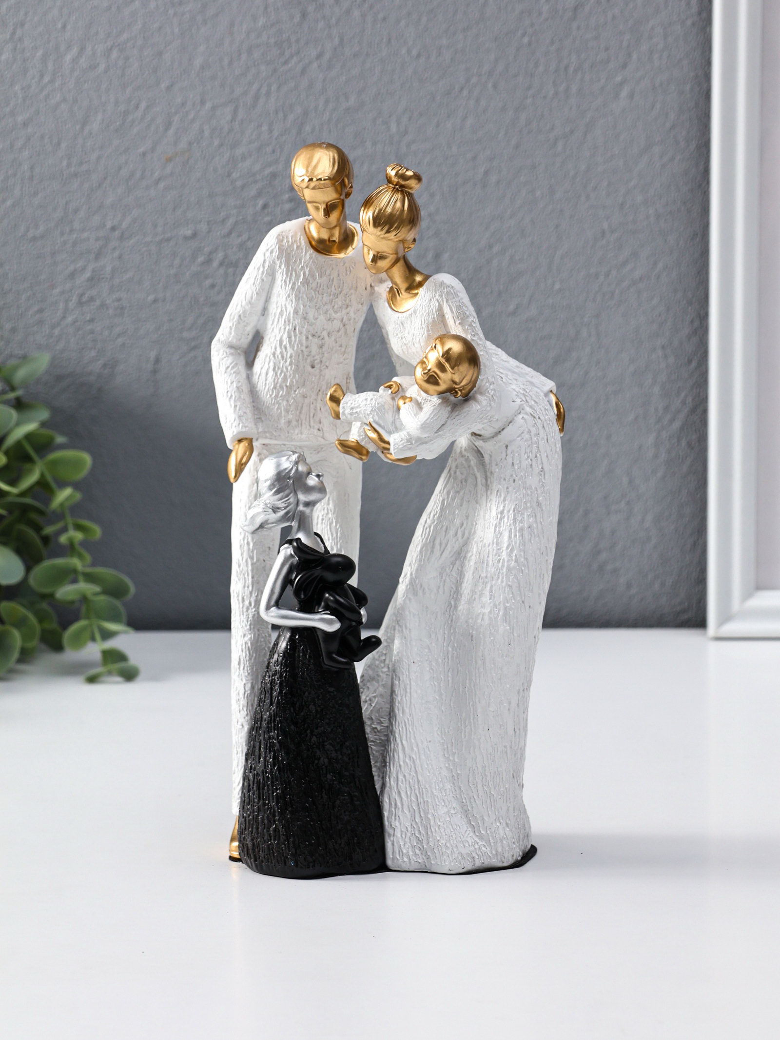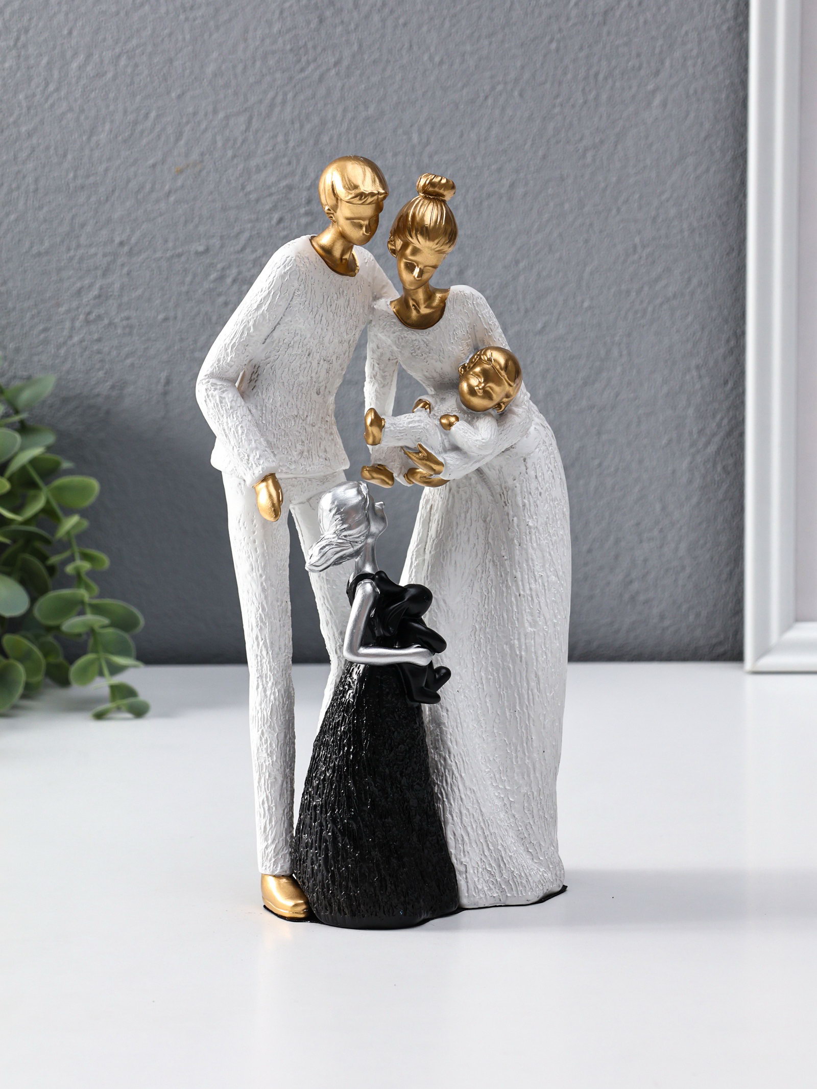 Сувенир полистоун "Родители с детьми" бело-золотой 8.5х13х25 см, 13x8.5x25 см., Китай