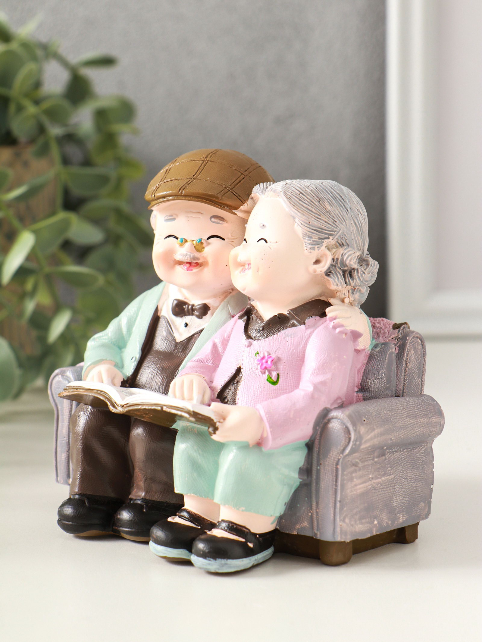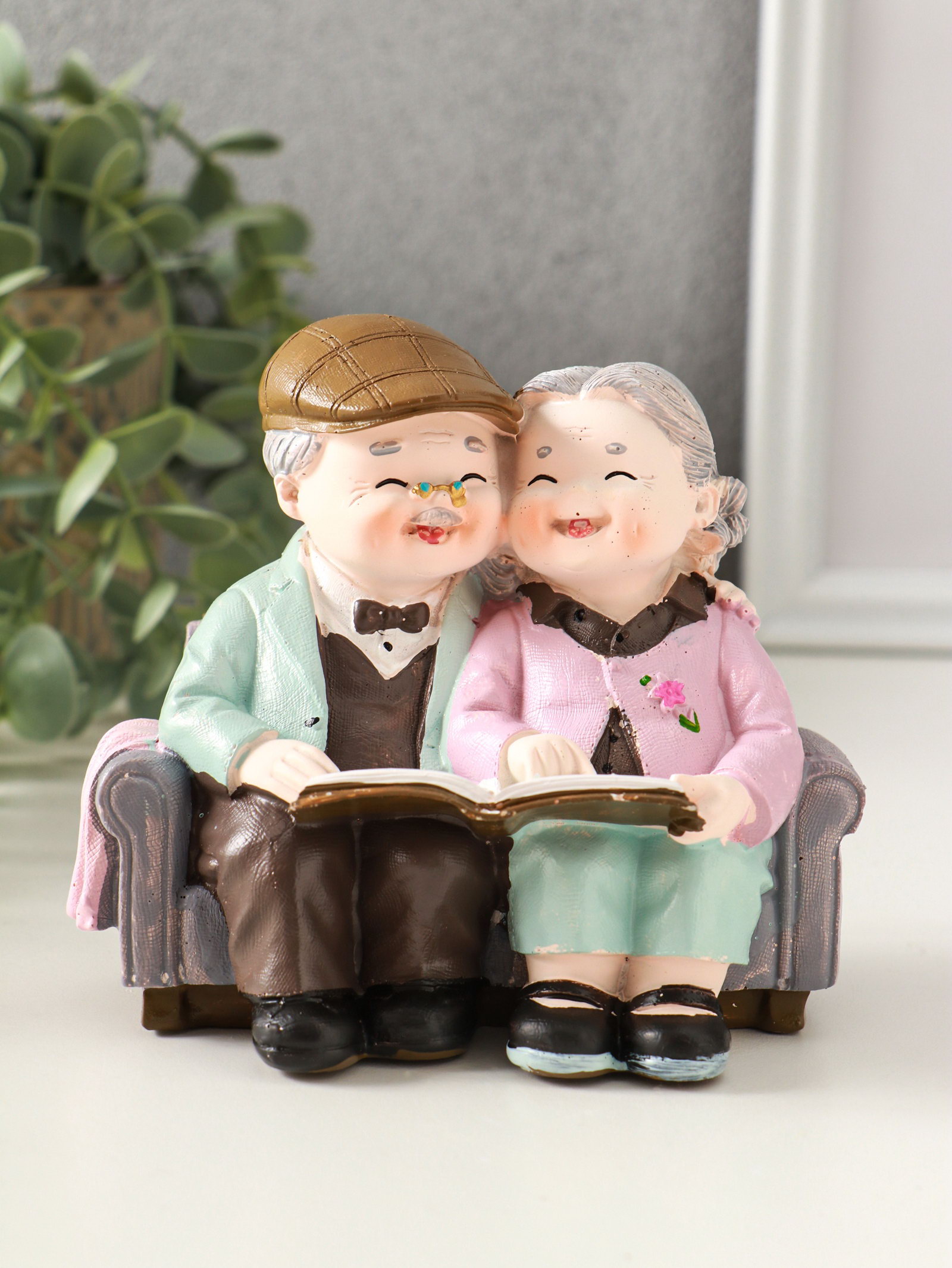 Фигурка полистоун "Дедуля с бабулей на диване читают книгу", 12x5x11 см, 5x12x11 см., Китай