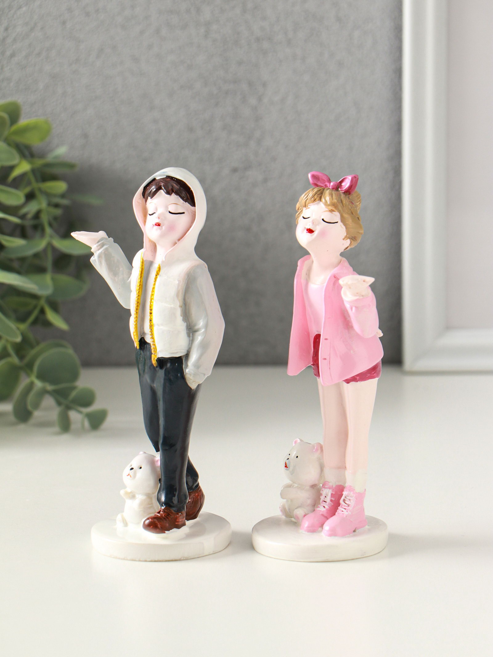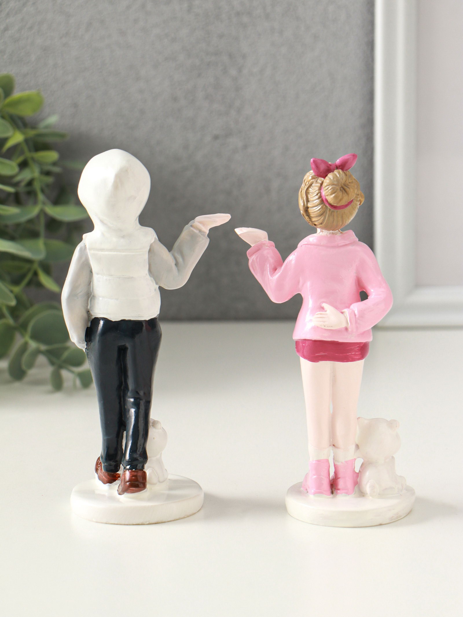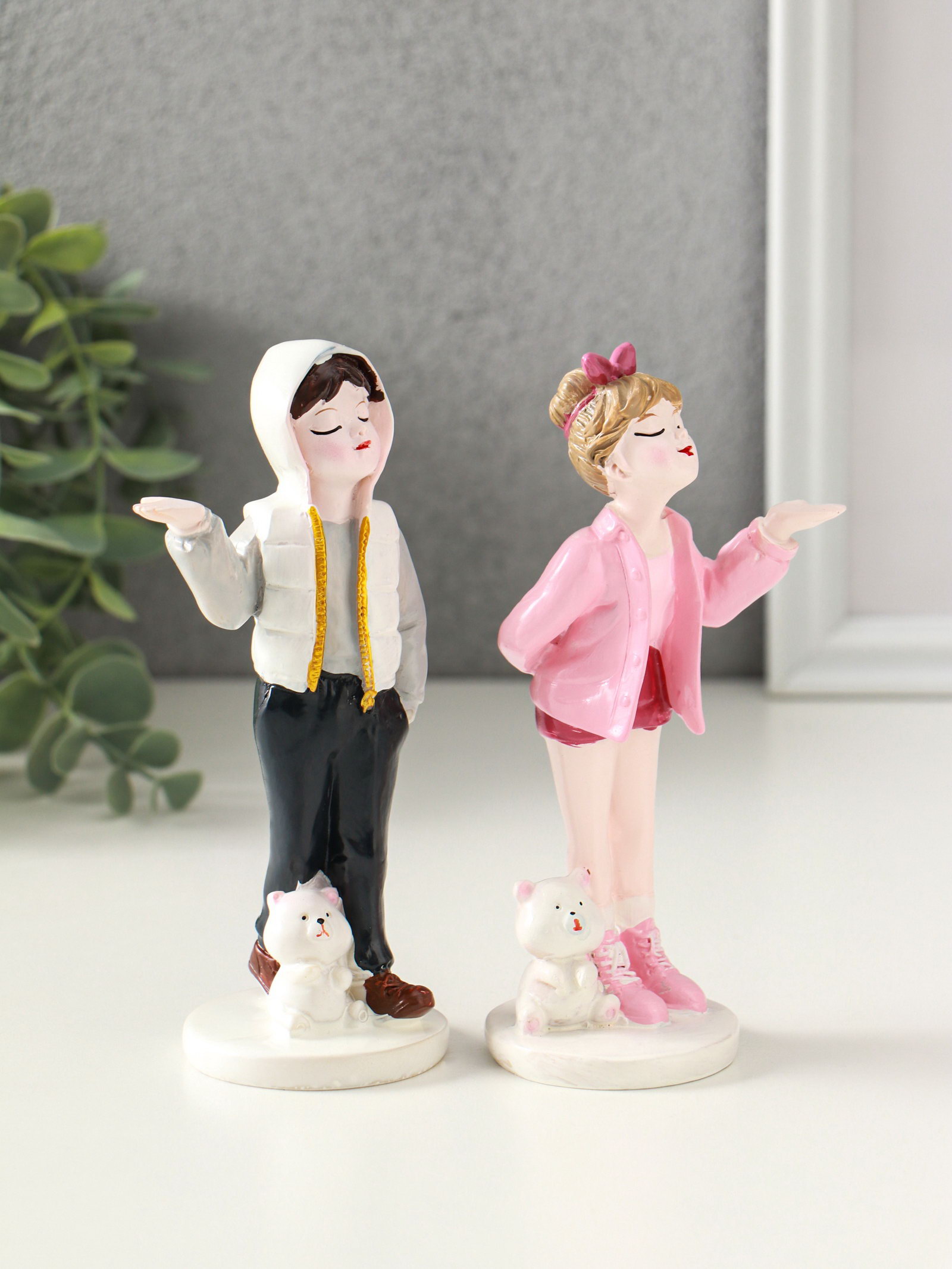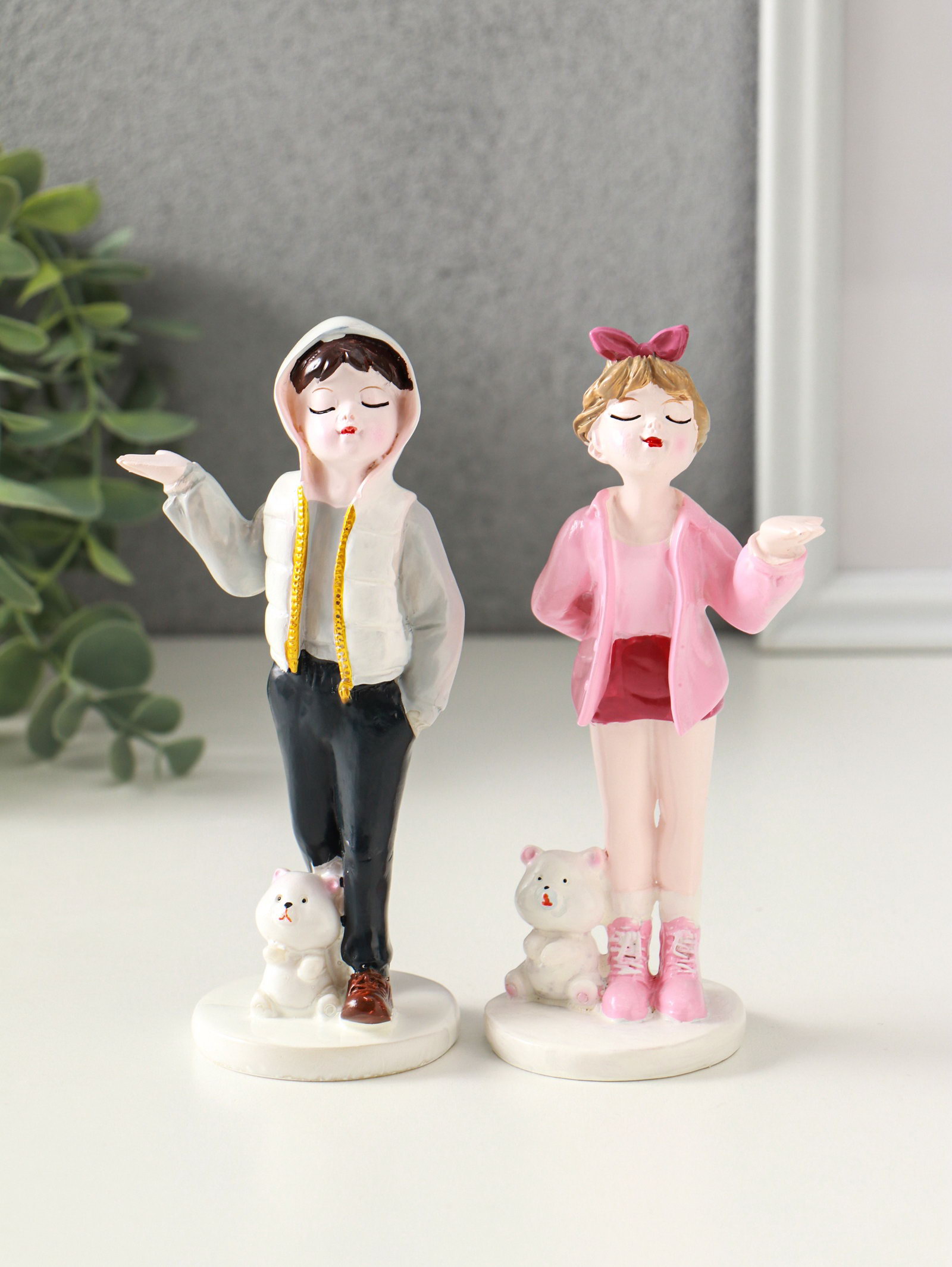 Набор фигурок полистоун "Подростки с мишками", 2 шт., 5.2x6.5x14.5 см, 6.5x5.2x14.5 см., Китай