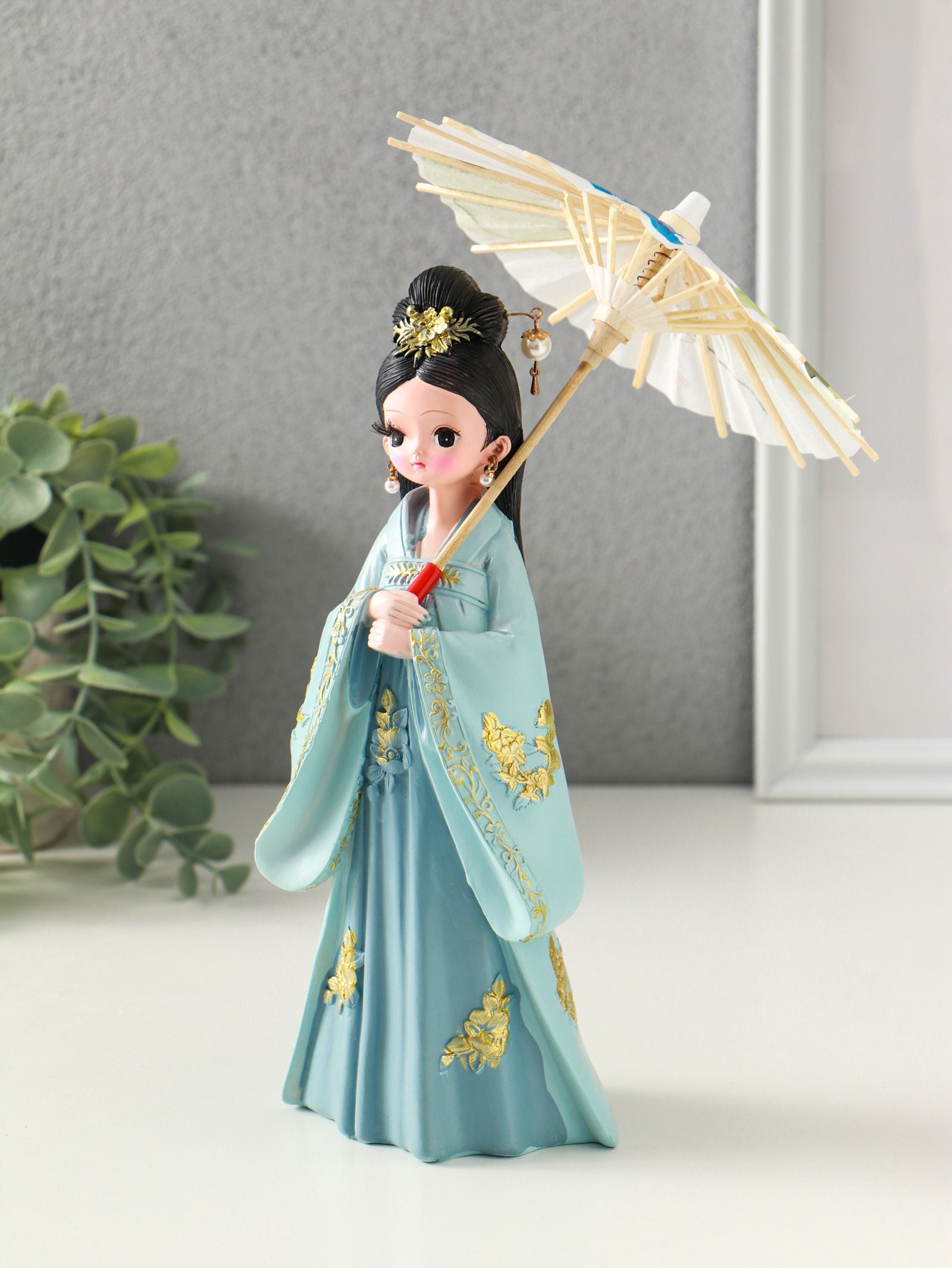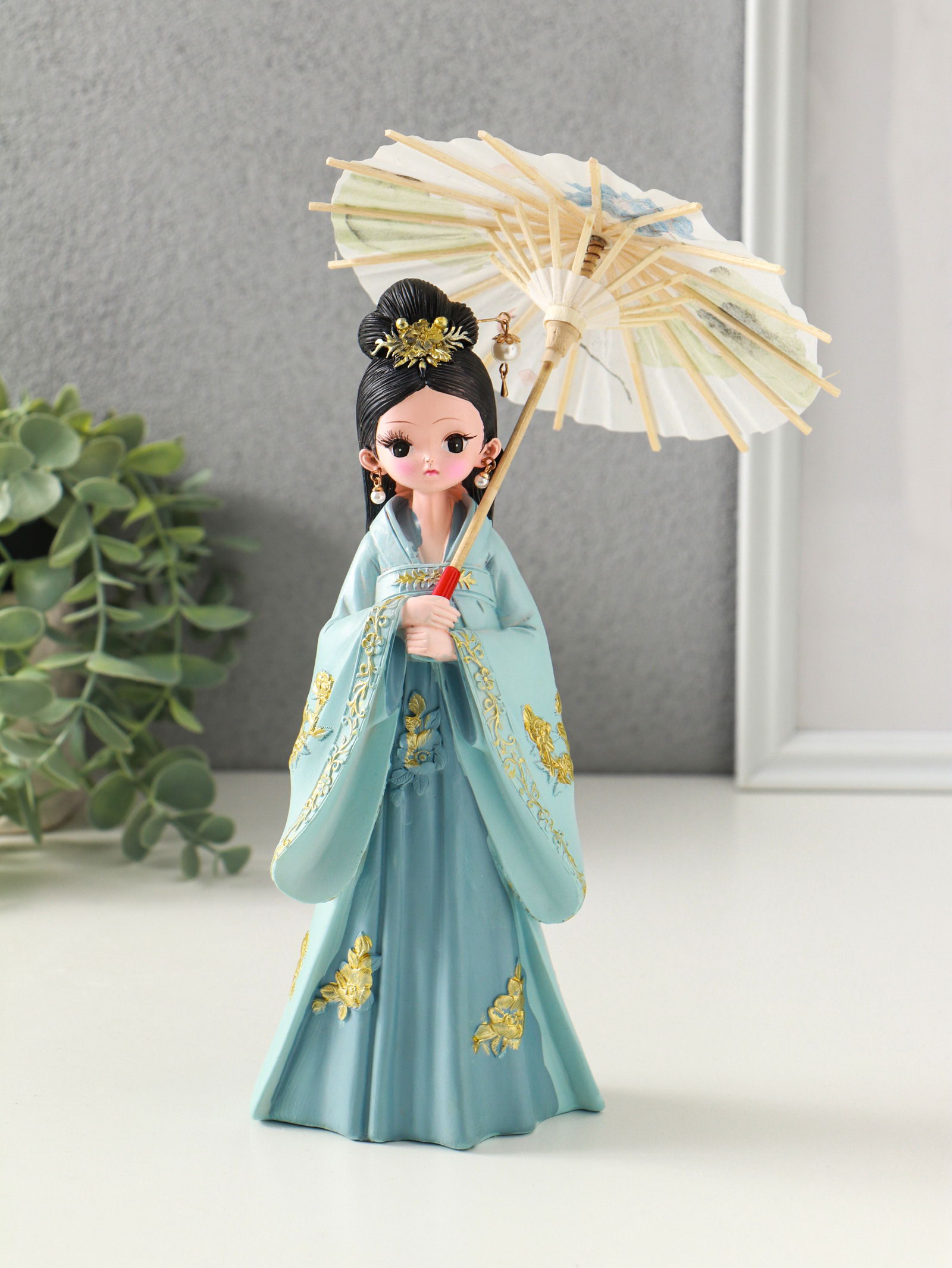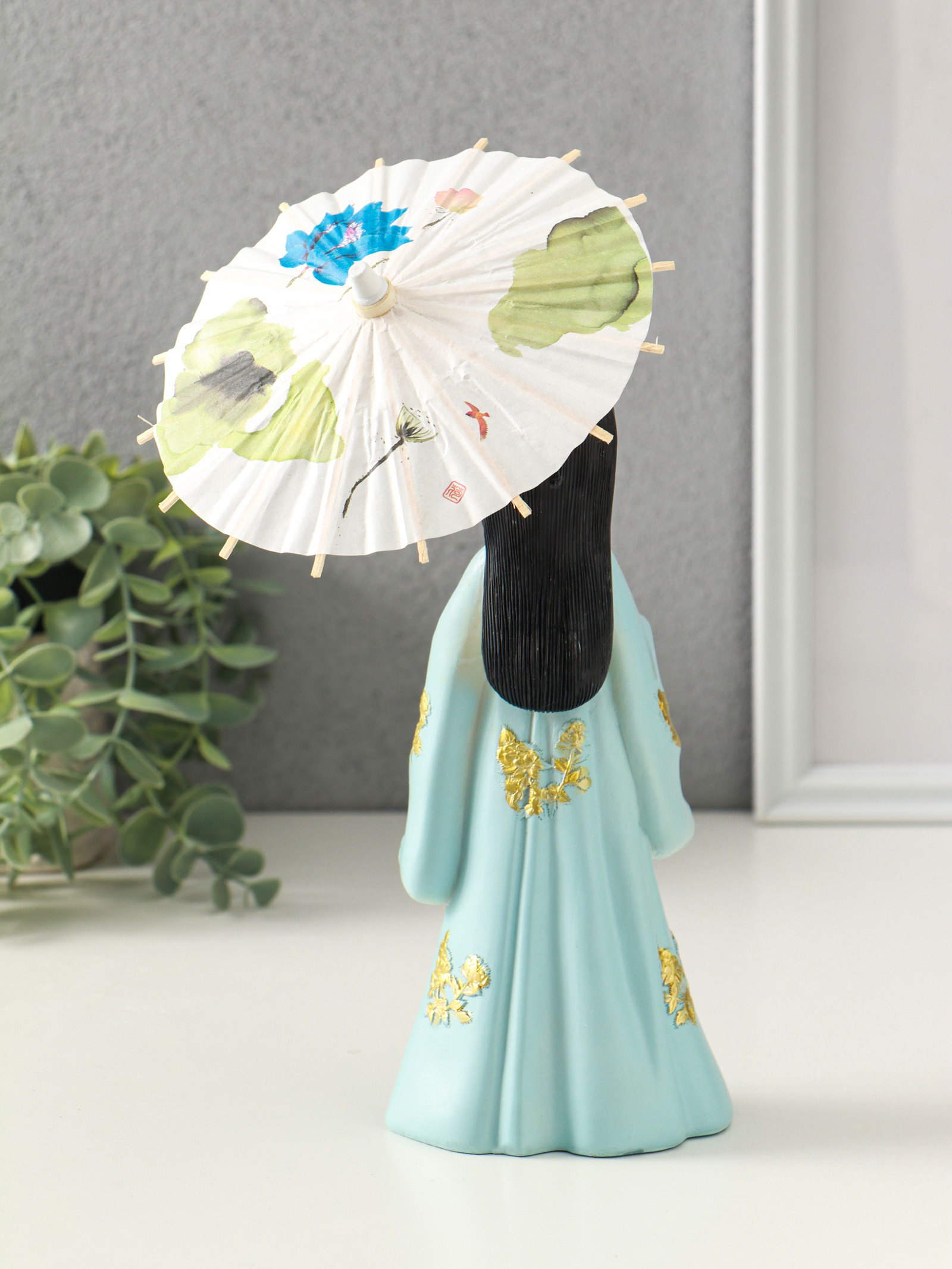 Фигура полистоун "Девочка в кимоно с зонтиком", голубой, 12x13.8x25 см, 13.8x12x25.5 см., Китай