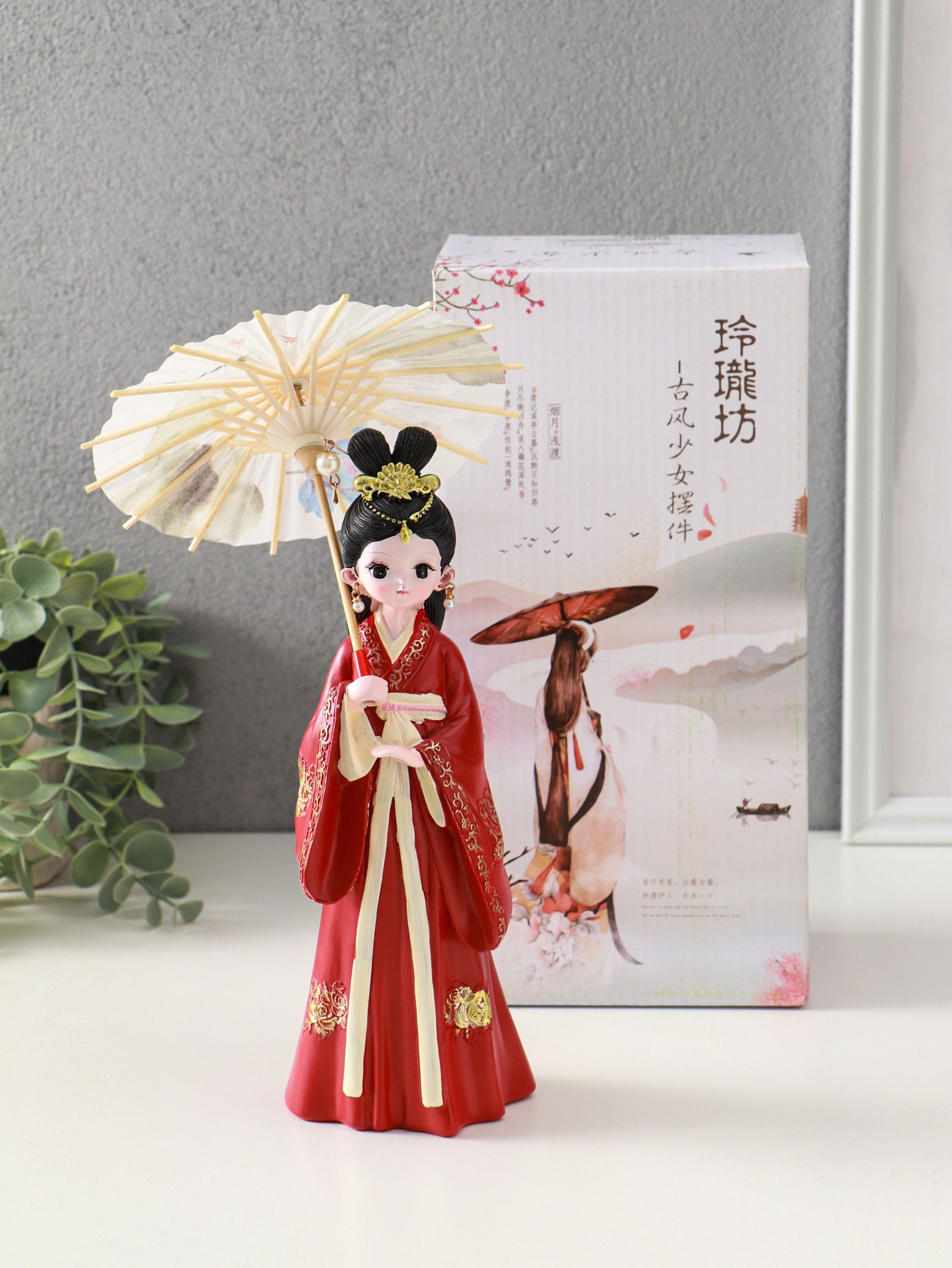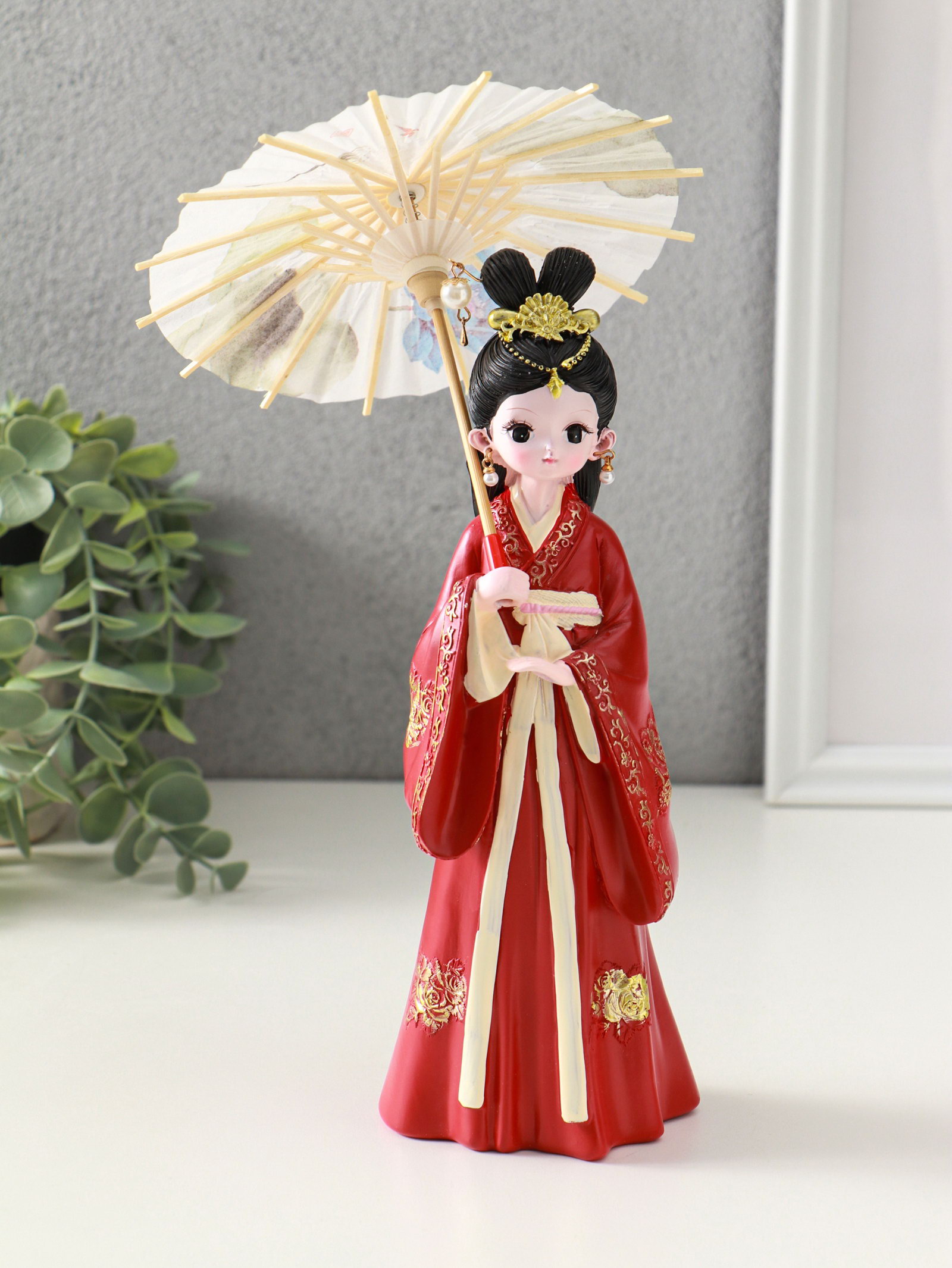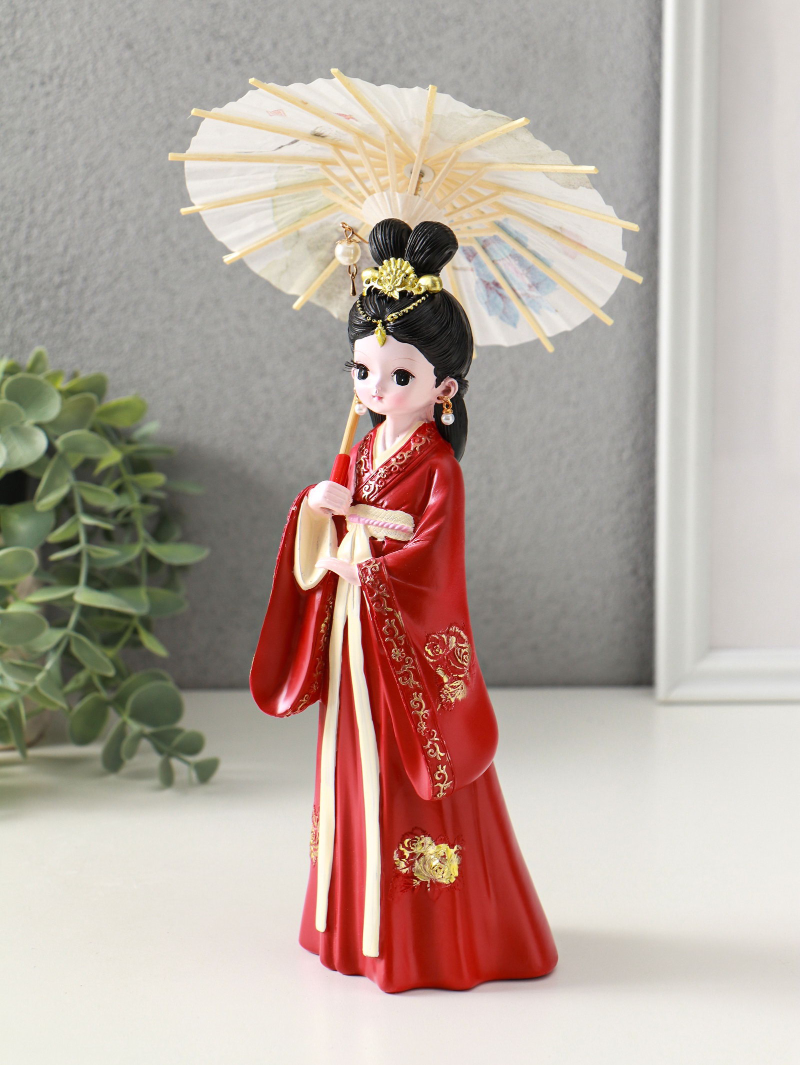 Фигура полистоун "Девочка в кимоно с зонтиком", красный, 12x13.8x25 см, 13.8x12x25.5 см., Китай