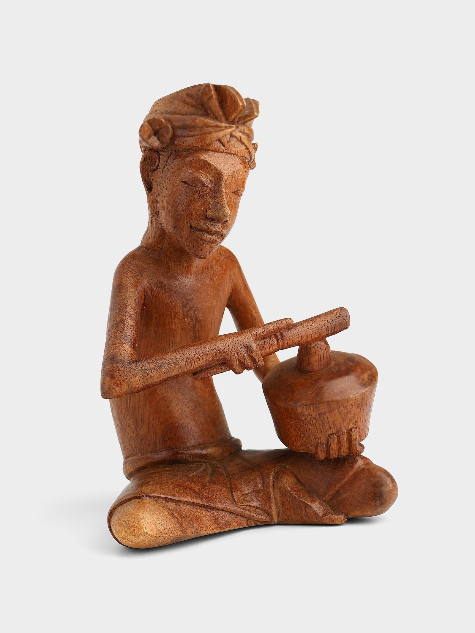 Сувенир "Девушка с барабаном" дерево Суар, 14х10х20 см, 10x14x20 см., Индонезия