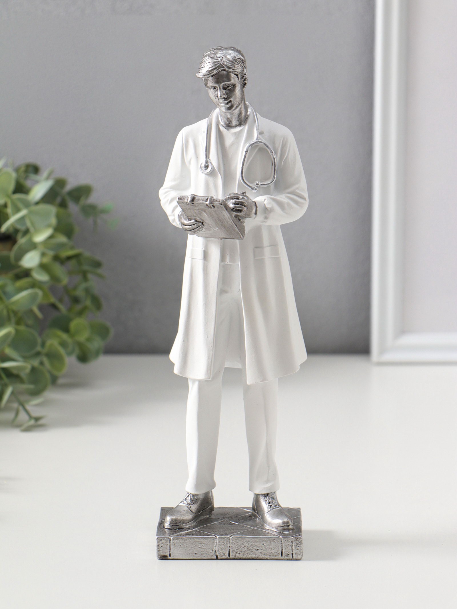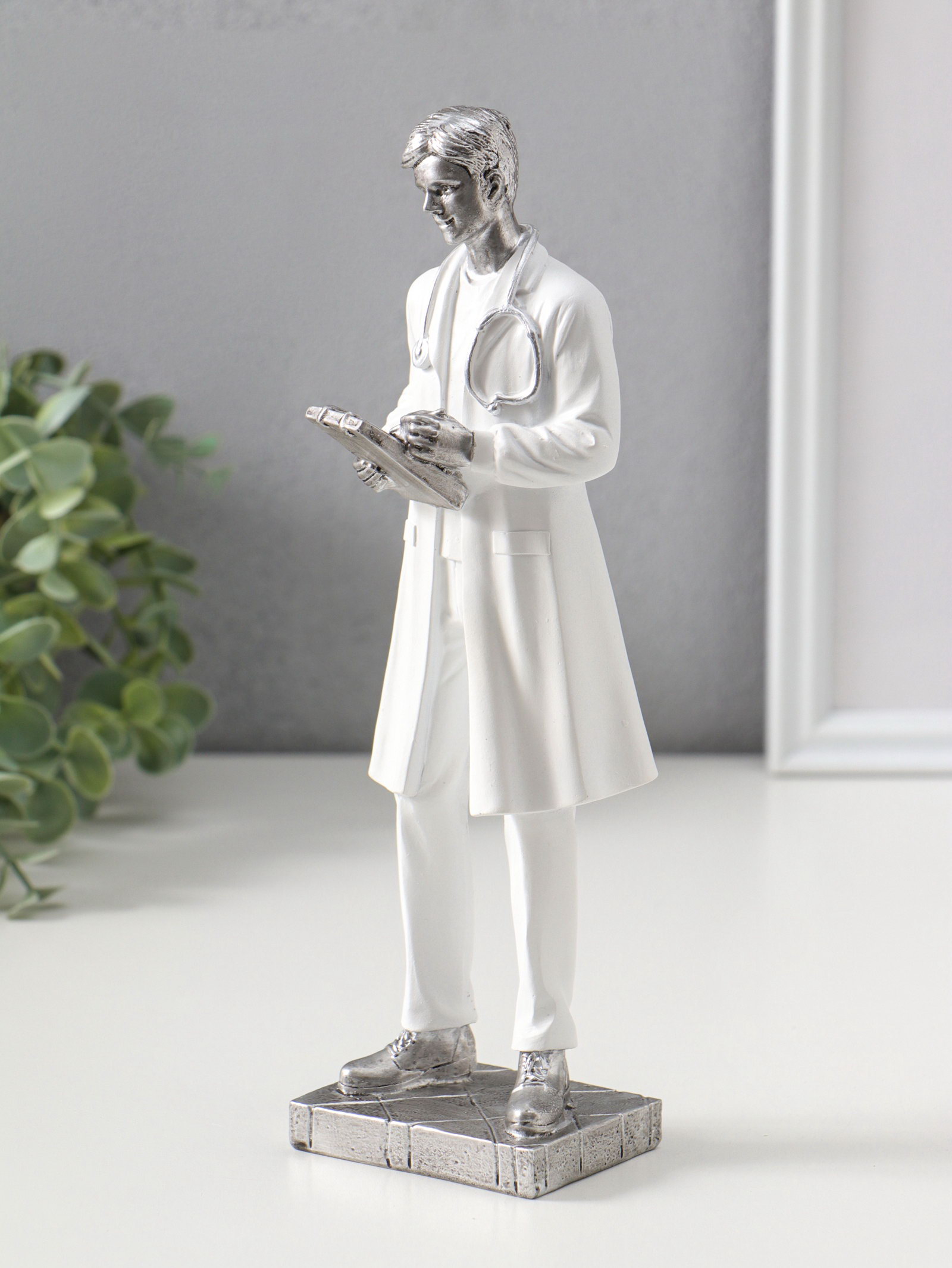 Фигура полистоун "Мужчина-доктор в белом халате с медицинской картой", 25.5 см, 8x8x25.5 см., Китай