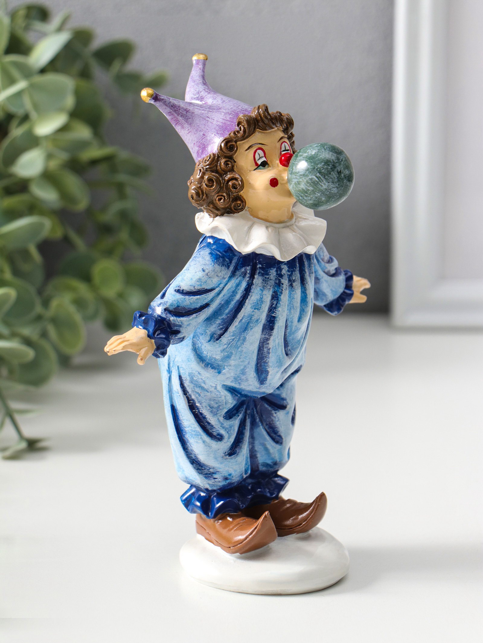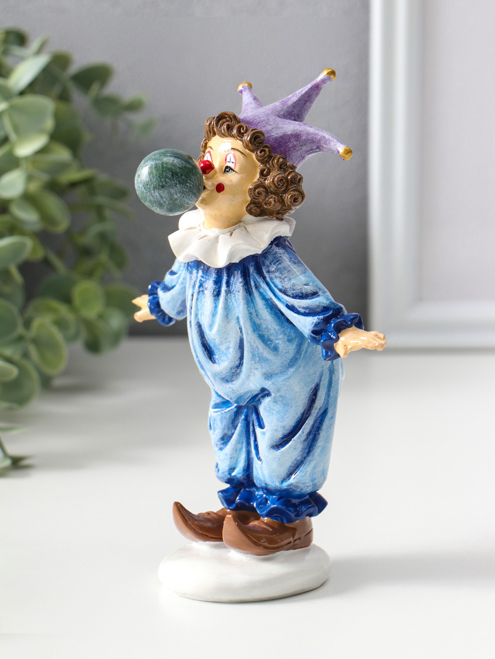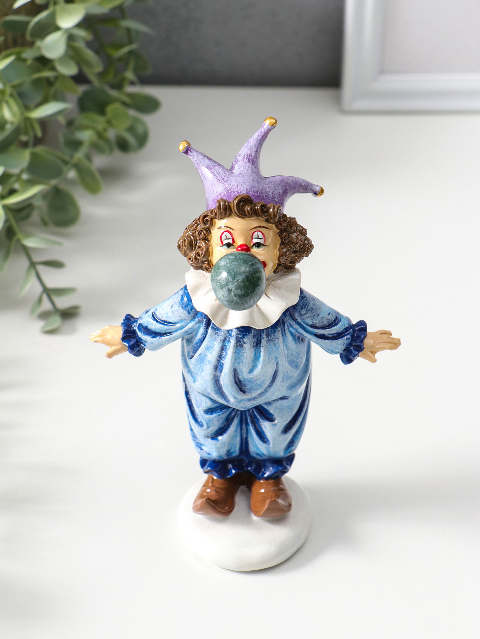 Фигурка полистоун "Клоун надувает шарик", сине-фиолетовый, 16.5 см, 8x11.5x16.5 см., Китай