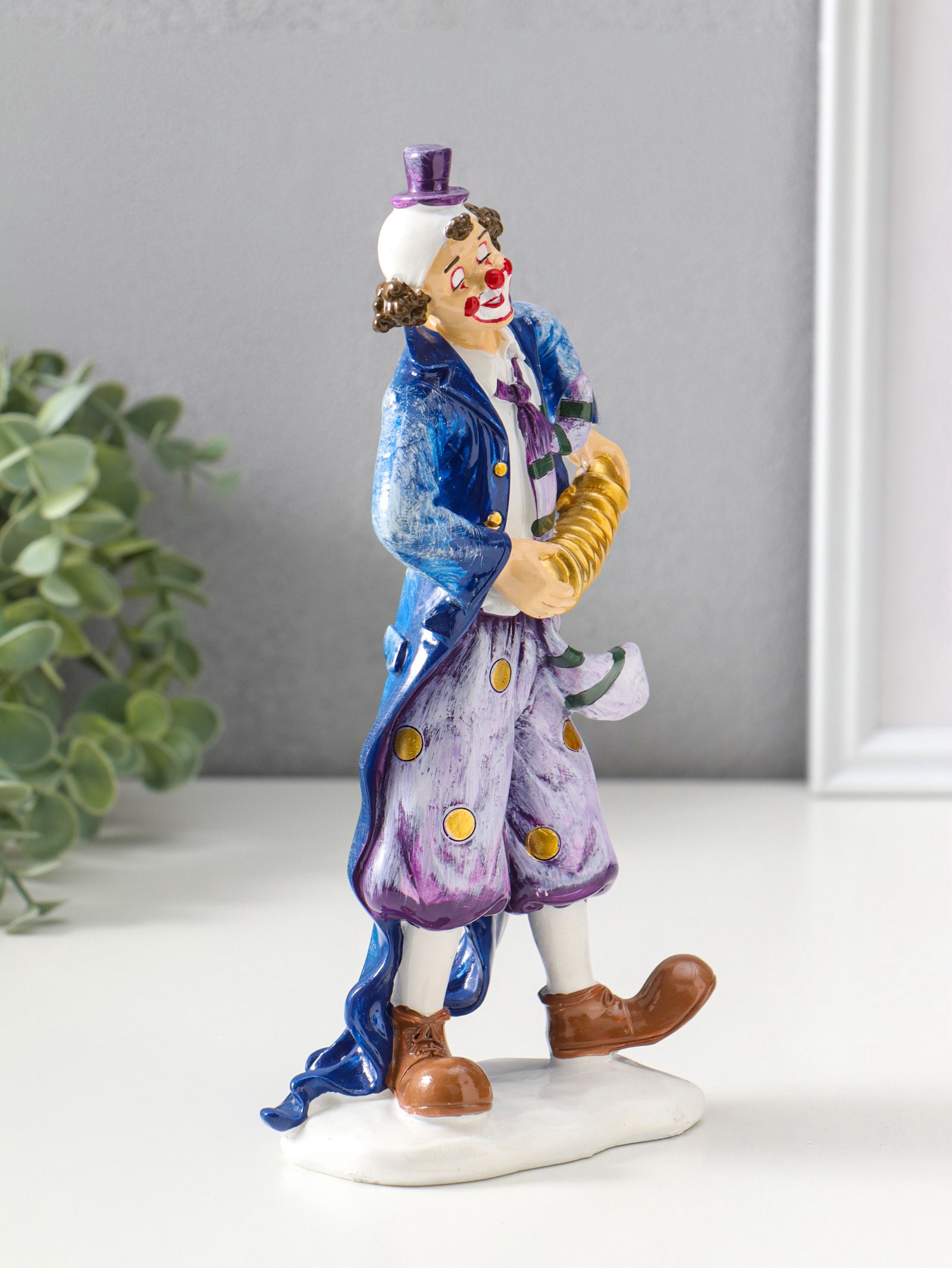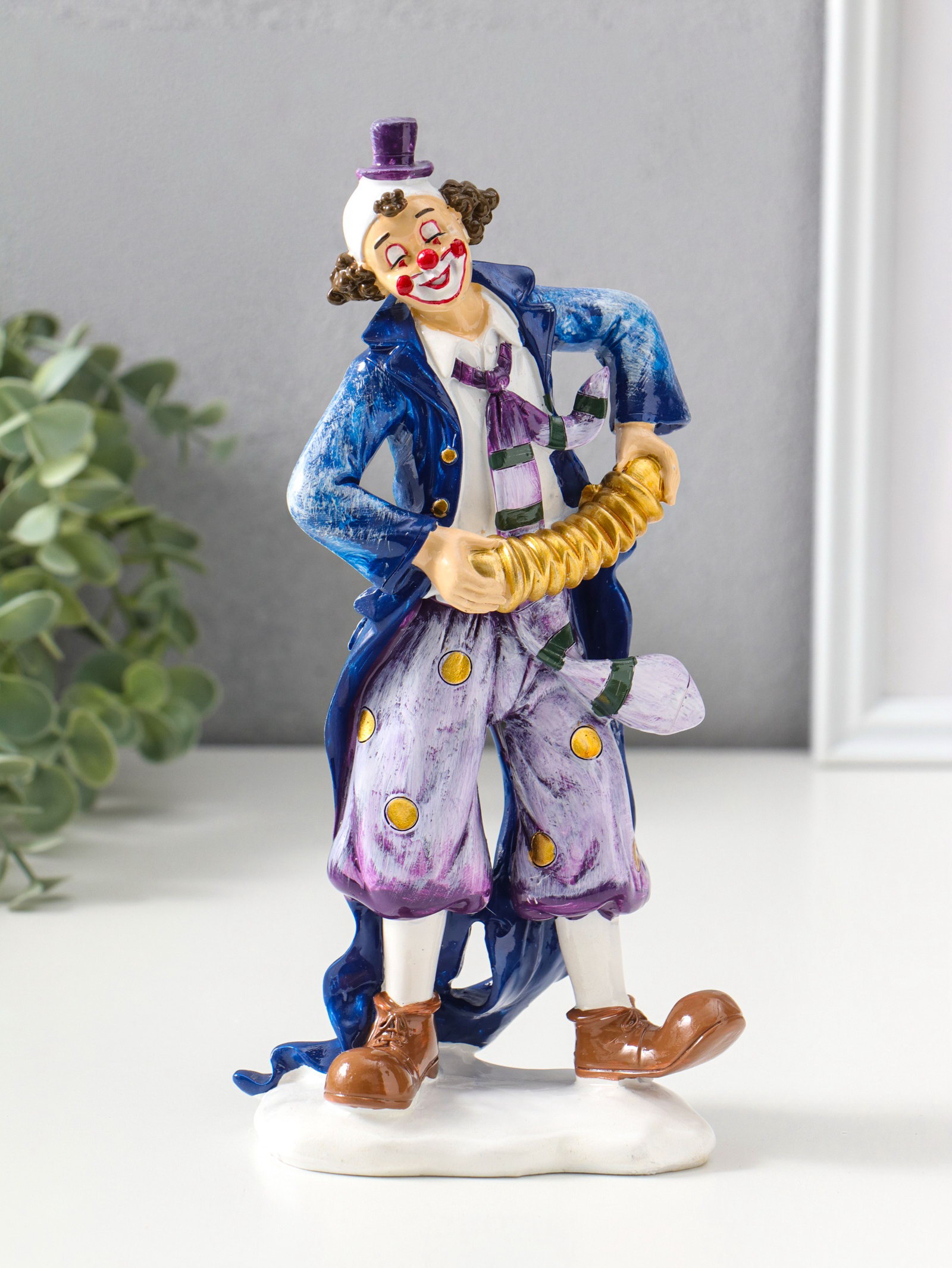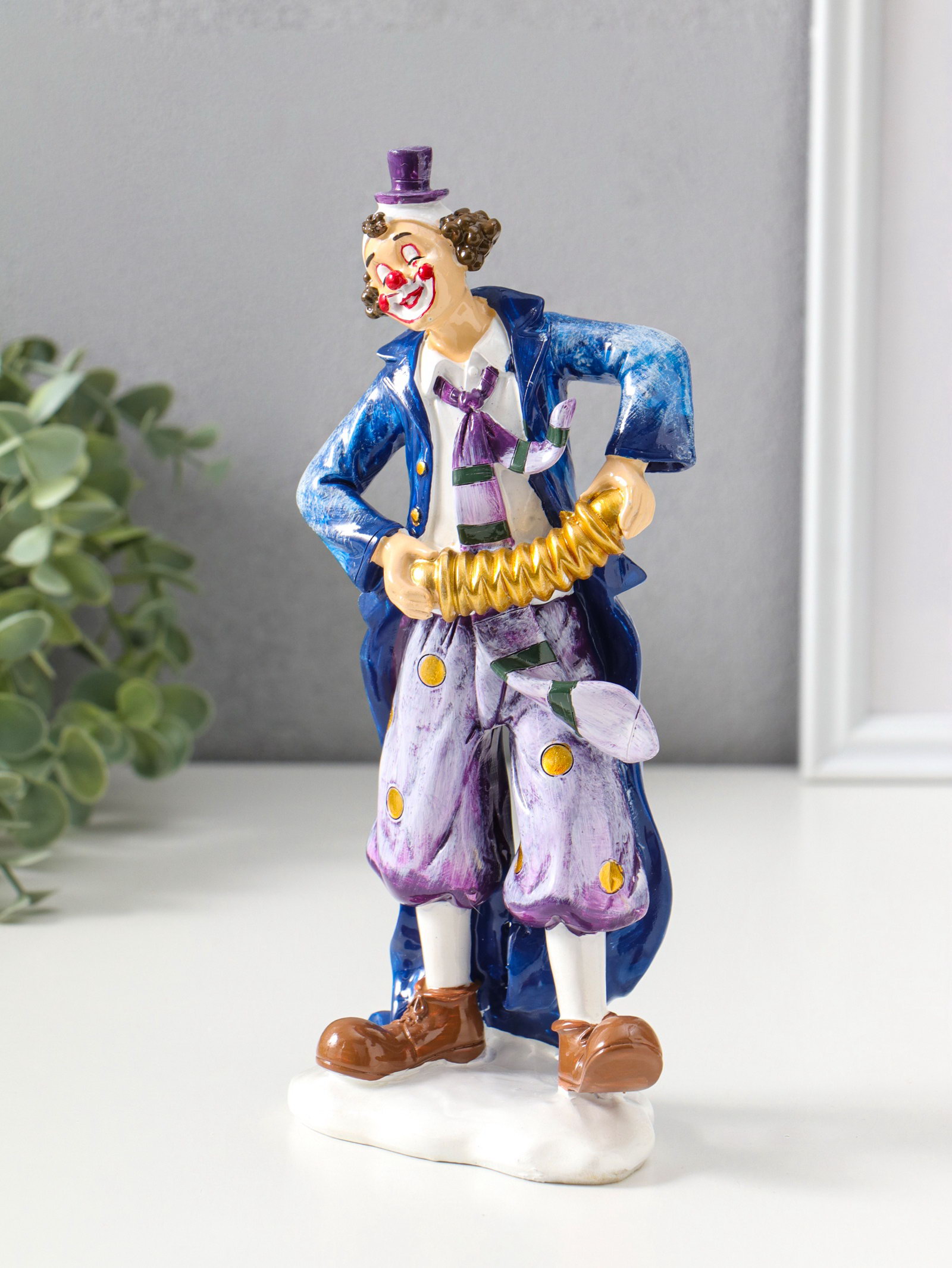 Фигура полистоун "Клоун с гармошкой", сине-фиолетовый, 6.5x11x23 см, 4.5x7.5x23.5 см., Китай