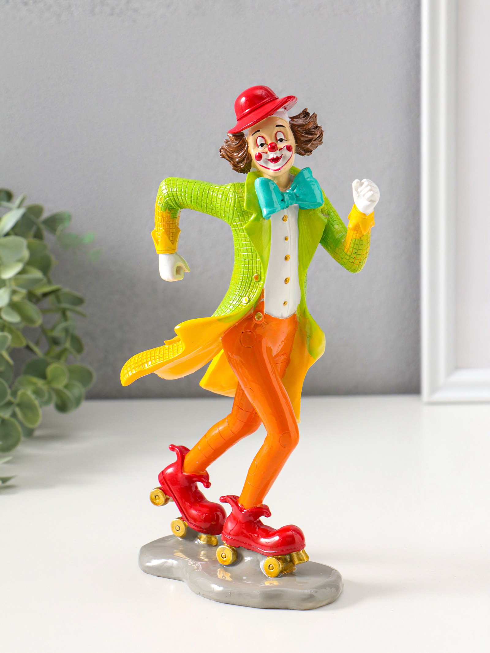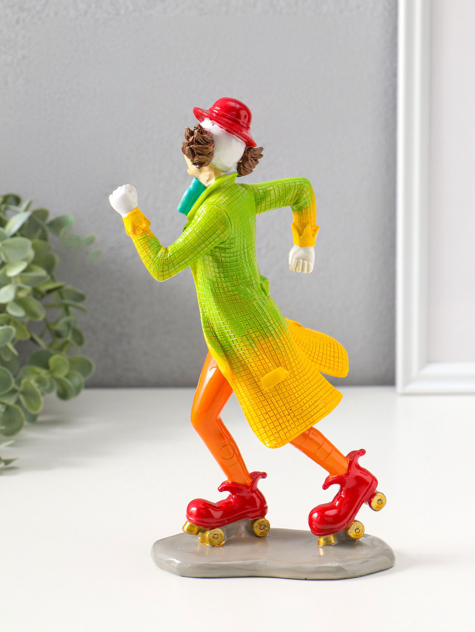 Фигура полистоун "Клоун на роликовых коньках", яркий разноцветный, 23.5 см, 9.5x14.5x23.5 см., Китай