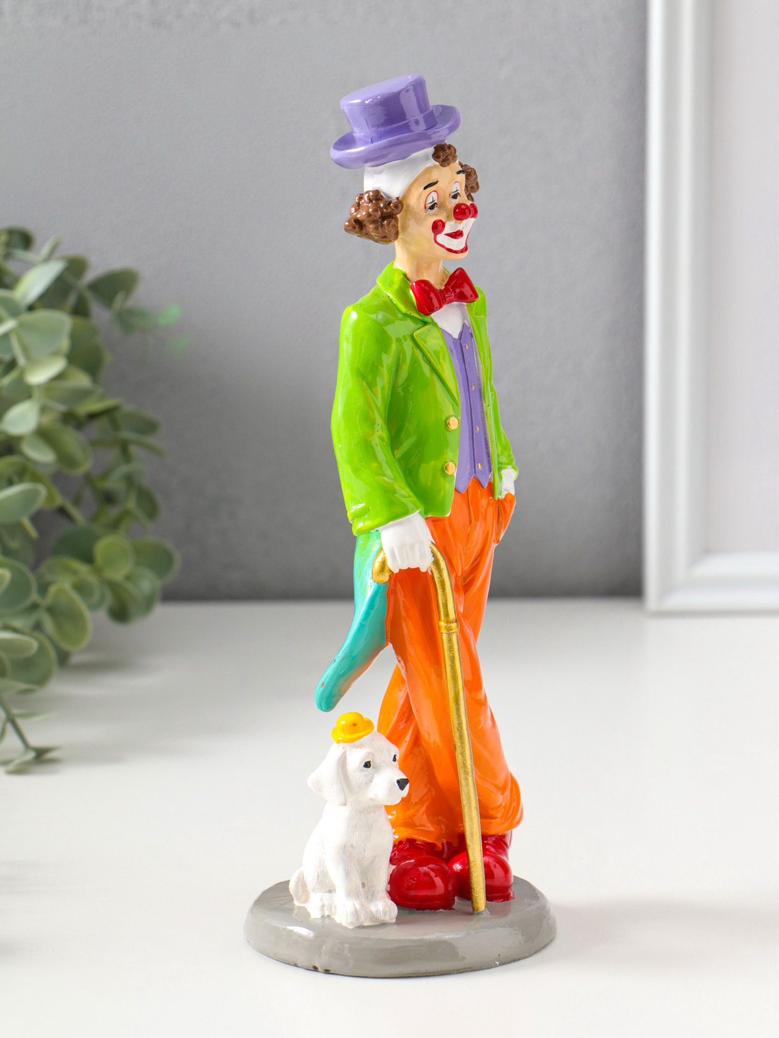 Фигура полистоун "Клоун с тростью и пёсиком", яркий разноцветный, 23 см, 8x8.5x23 см., Китай