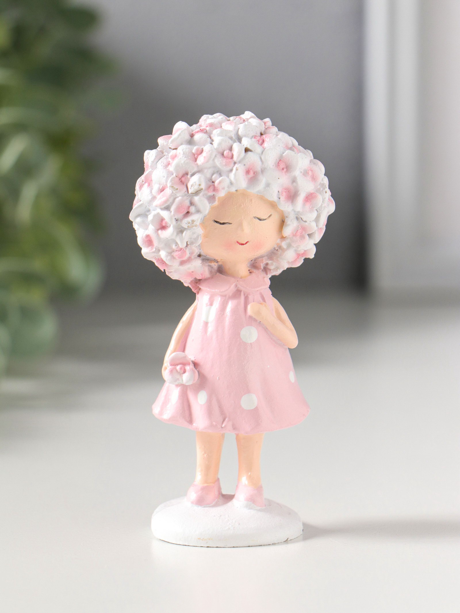 Фигурка полистоун "Малышка с цветочной шевелюрой в розовом платье", 4.5x4x9 см, 4x4.5x9 см., Китай