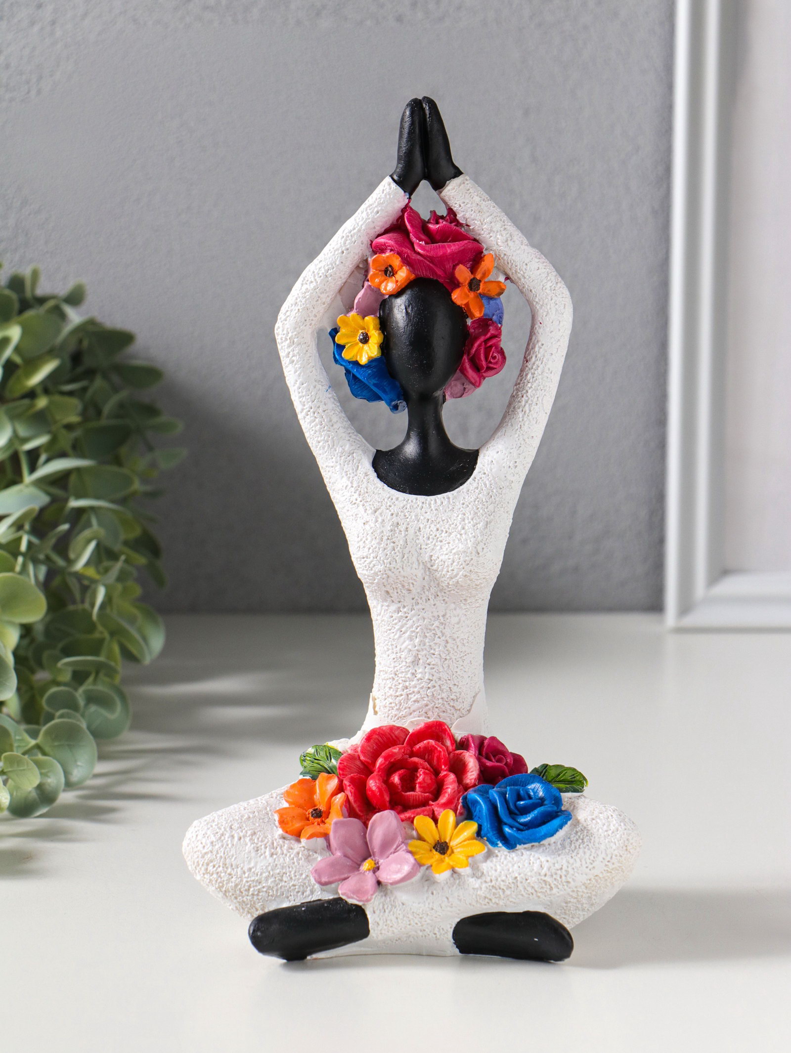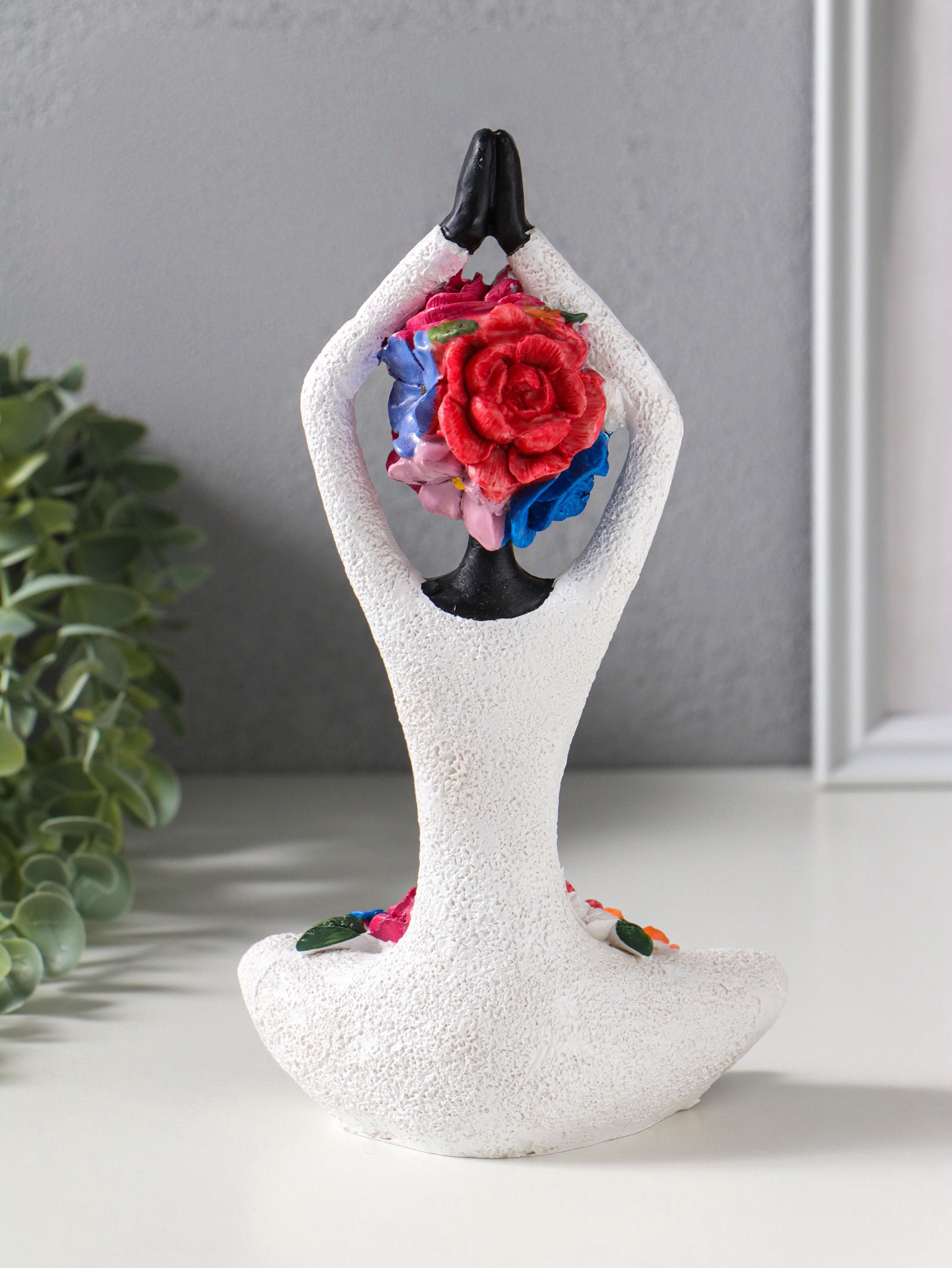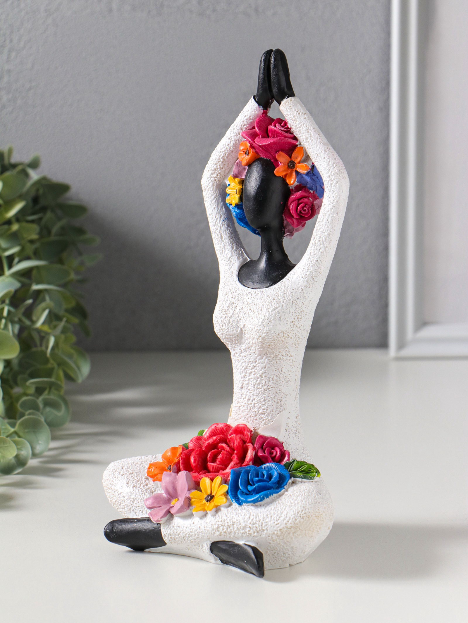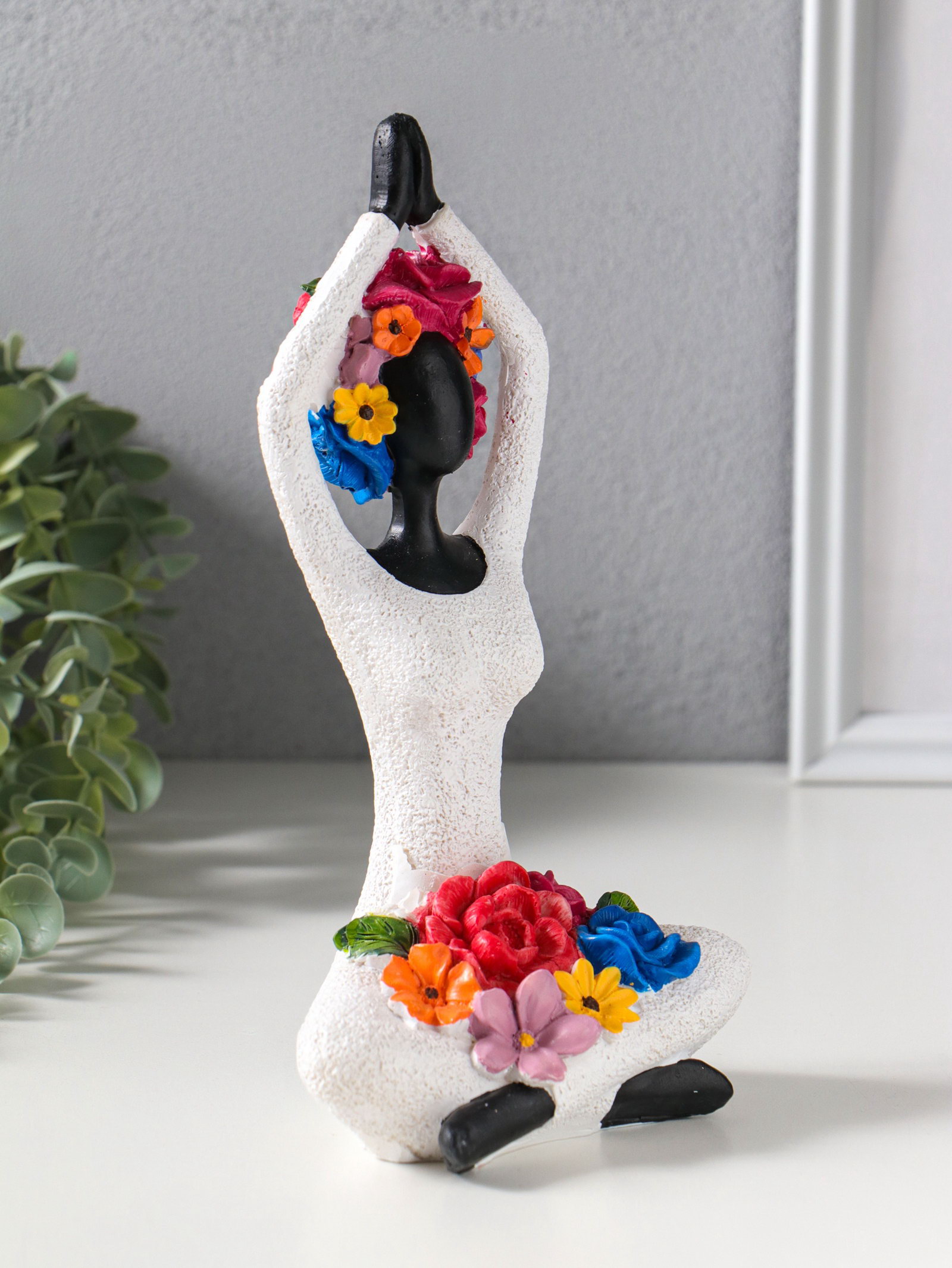 Фигура полистоун "Девушка-йогиня: руки сложены над головой, с цветами", чёрный, 12.5x10.5x22.5 см, 10.5x12.5x22.5 см., Китай