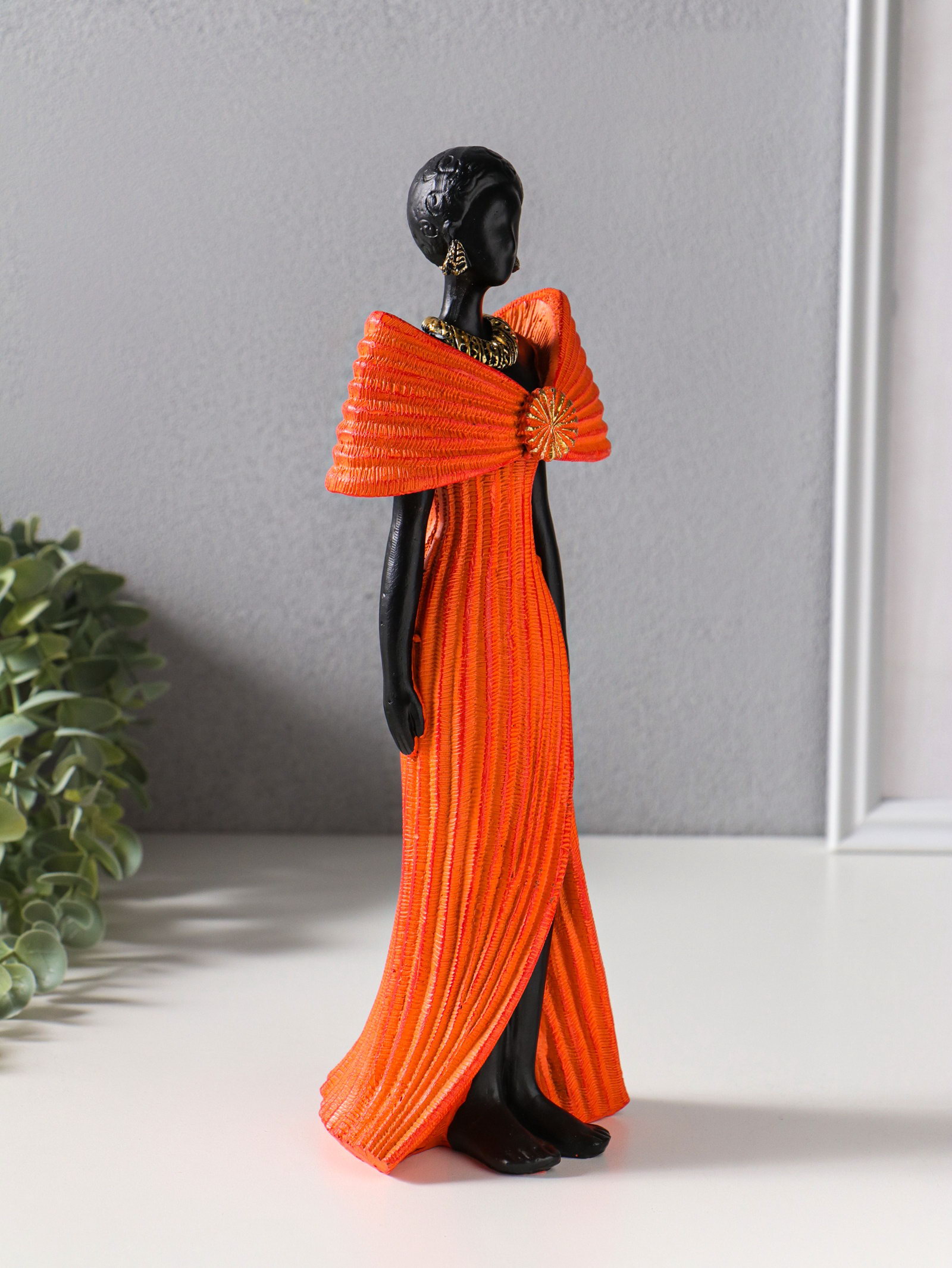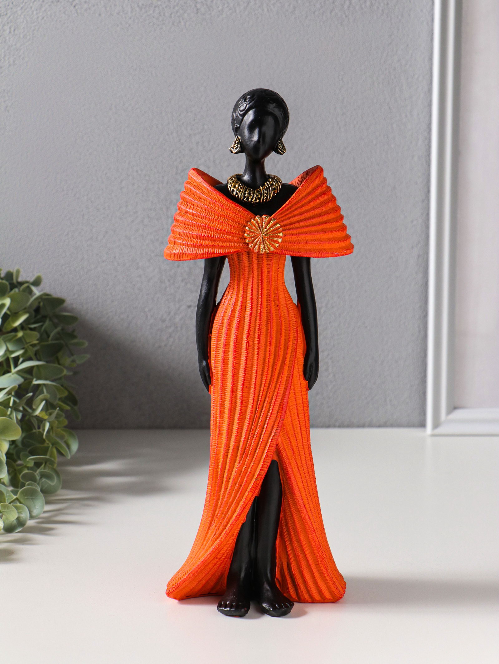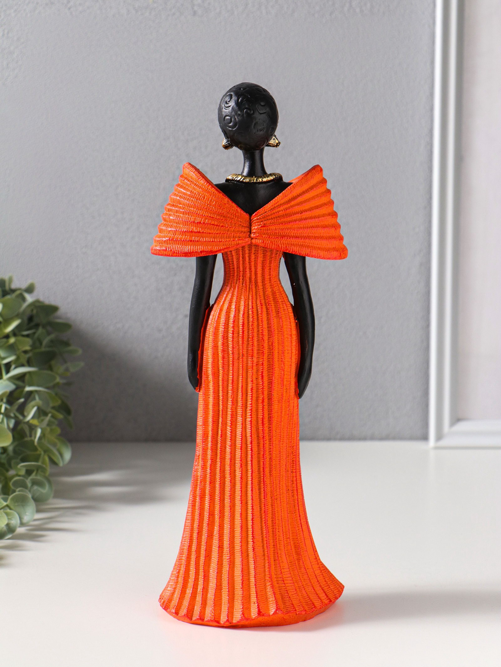 Фигура полистоун "Девушка в ярко-оранжевом платье с большим бантом", чёрный, 11x9.5x30.5 см, 9.5x11x30.5 см., Китай