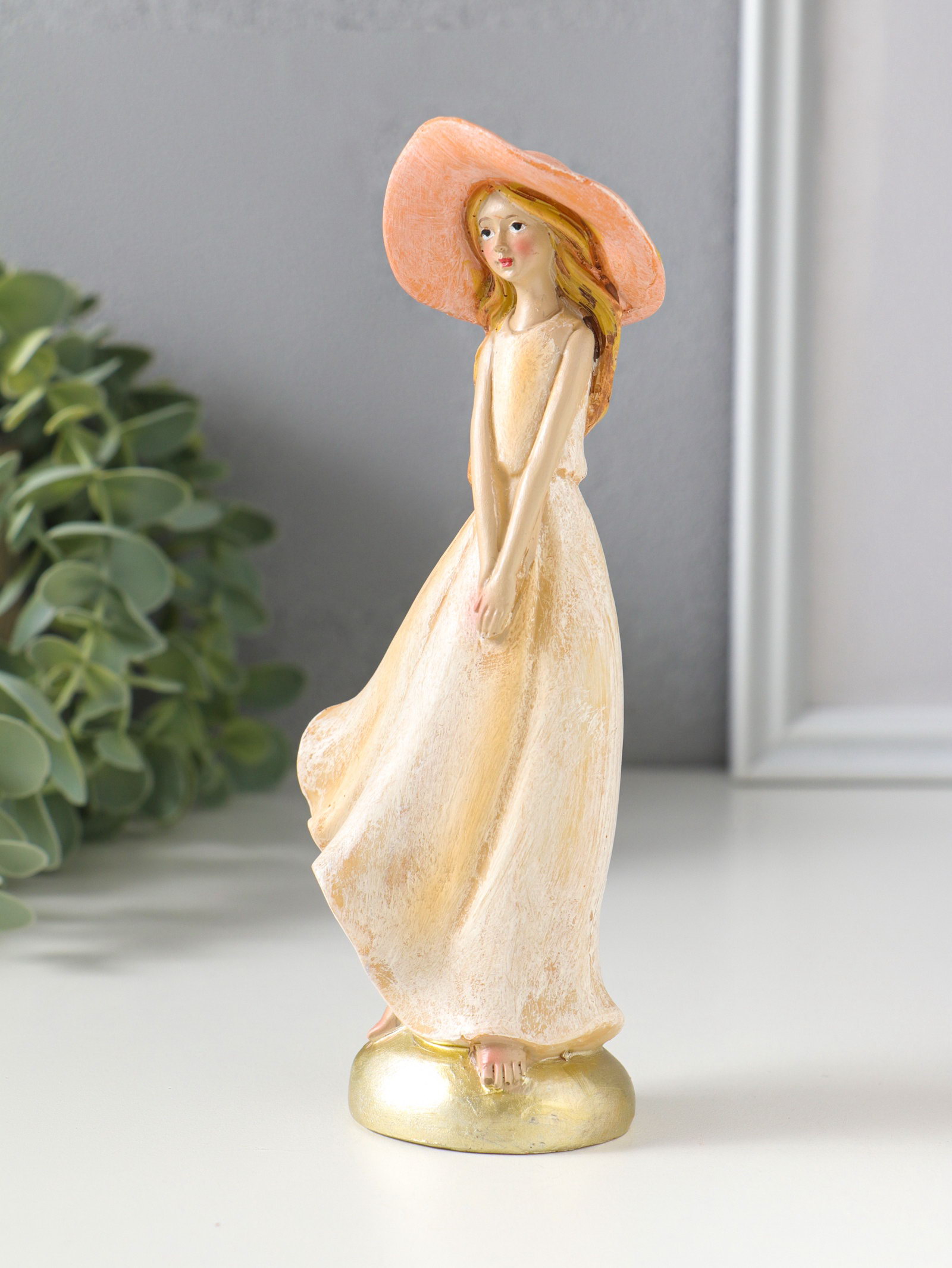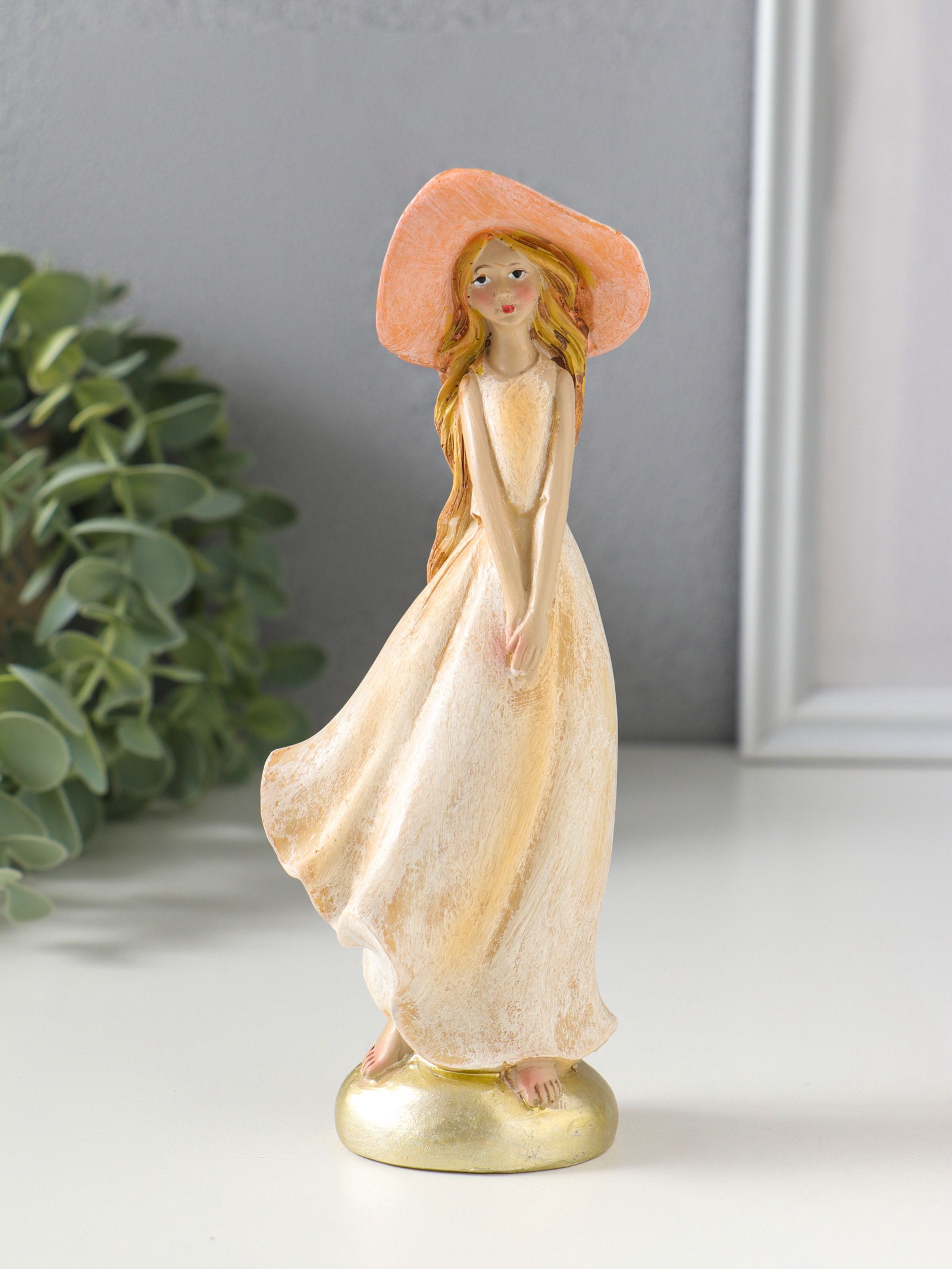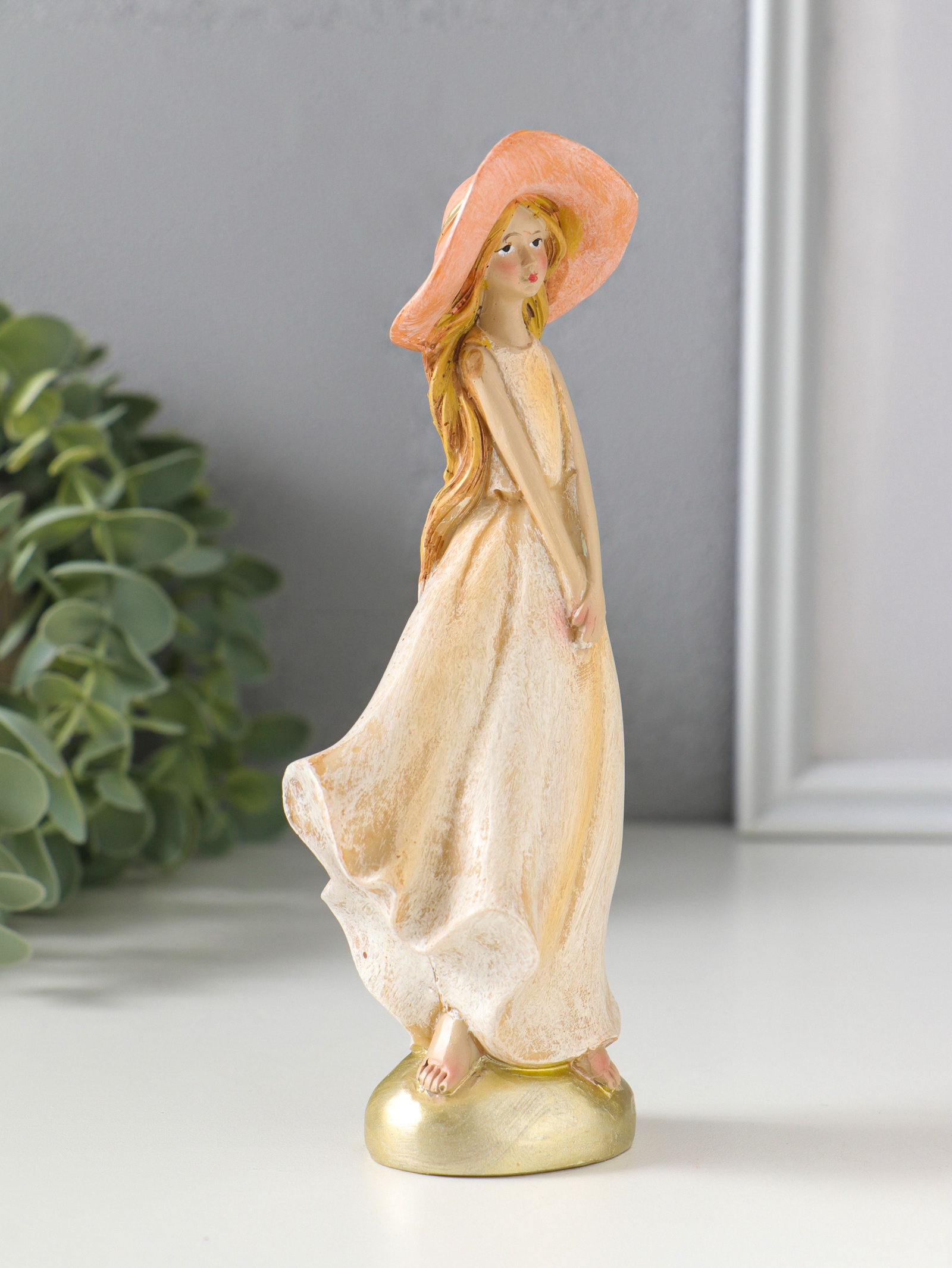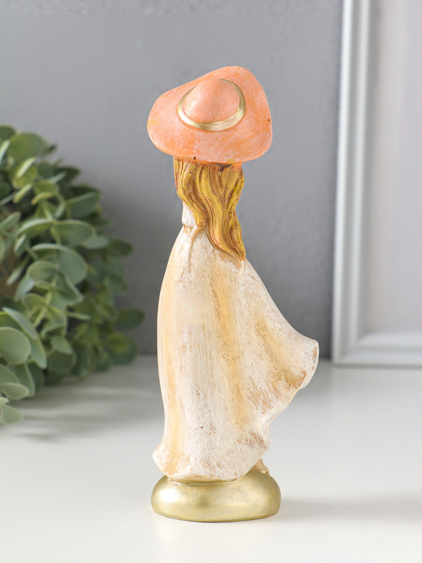 Сувенир полистоун "Девочка в широкополой шляпке" 6х4.2х16.5 см, 4.2x6x16.5 см., Китай