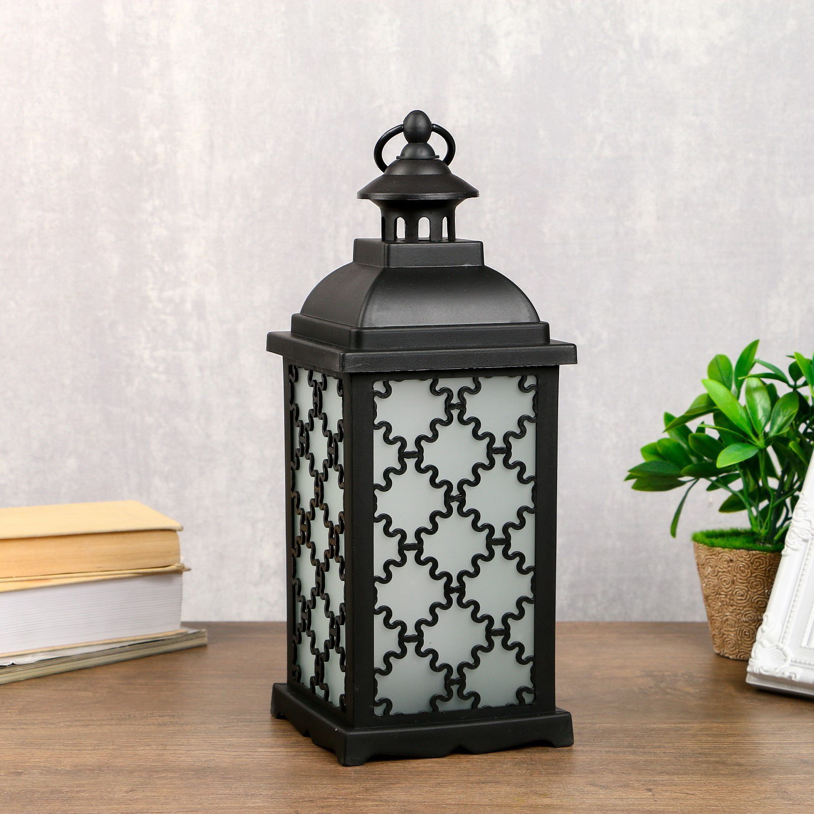 Фигурка светящаяся "Фонарь: Домашний очаг с эффектом пламени", 21xLED, ночник, чёрный, 13.5x13.5x38 см, 13.5x13.5x38 см., RISALUX, Китай