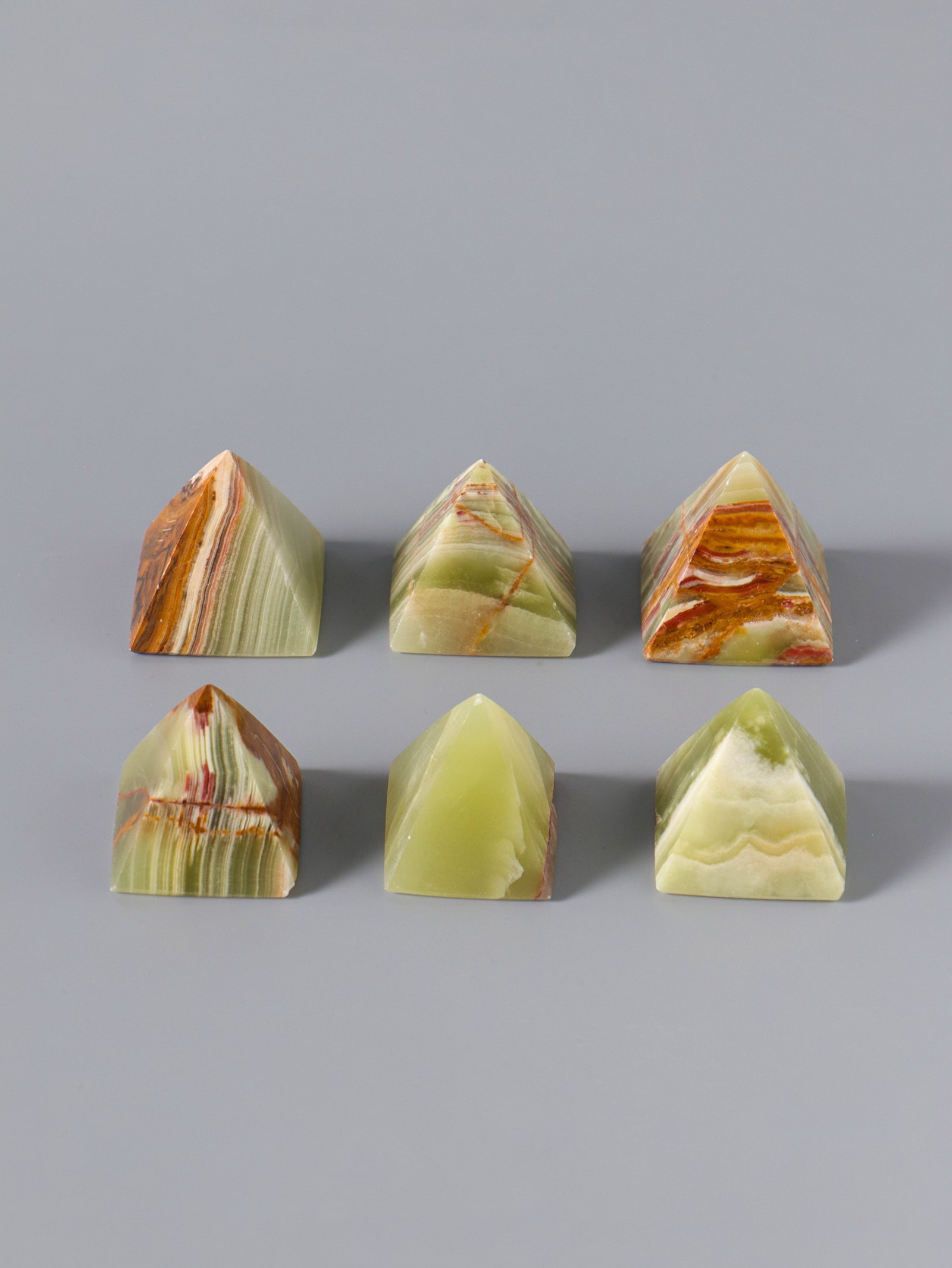Сила в простоте Расставьте каменные пирамиды на рабочем столе или в зоне отдыха. Их присутствие создаёт островок спокойствия, а тактильные свойства натурального оникса помогают мягко переключить внимание и снять напряжение. Это элегантный инструмент для медитативной практики и стильный акцент в интерьере, говорящий о вашем вкусе. | ||