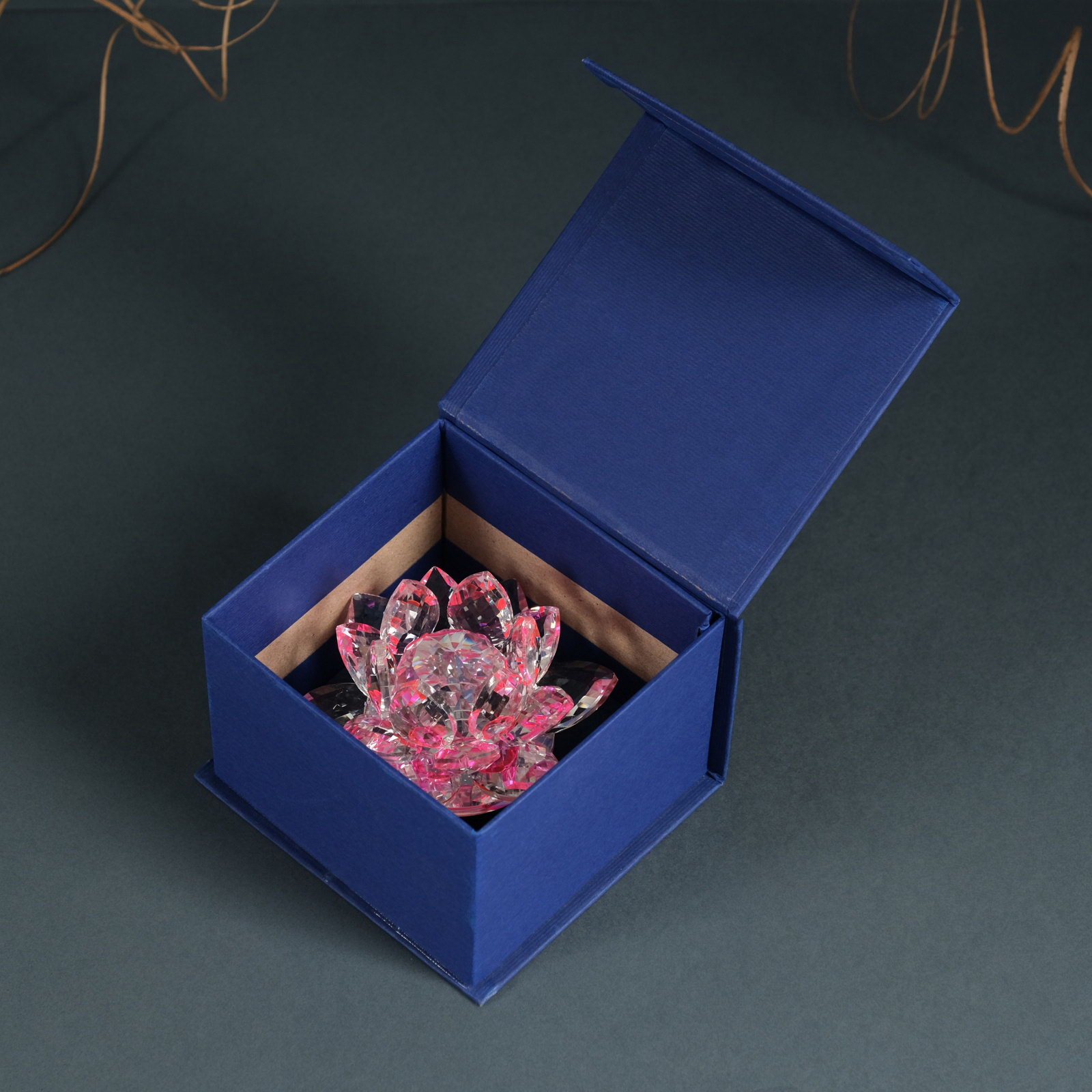 Фигурка стекло "Розовый лотос на подставке", вращается 5.5x9x9 см, 10x10x6.5 см., Китай
