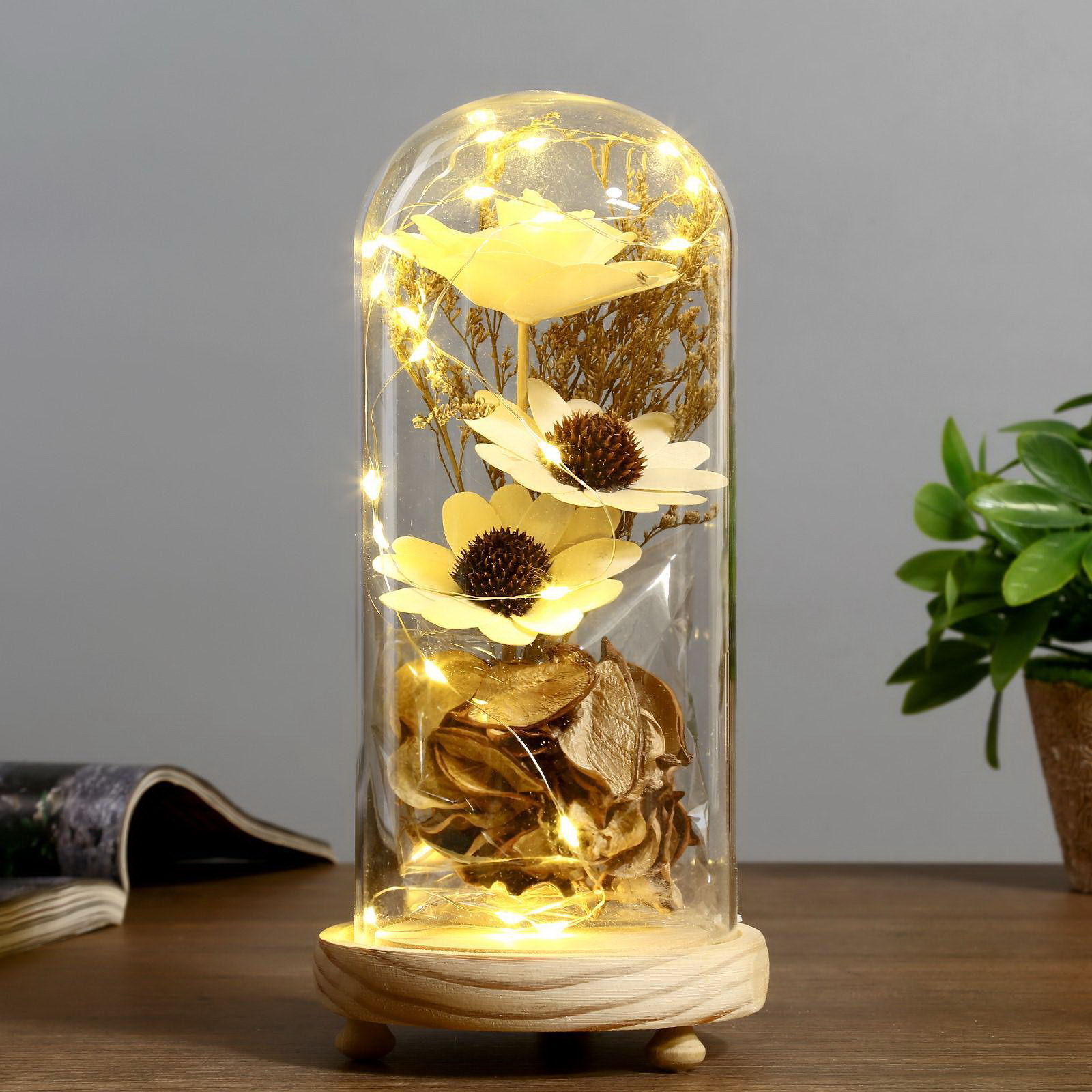 Фигурка светящаяся колба "Букетик", LED-ночник, 3xААА, 22.5x9.5x11 см, 11x9.5x22.5 см., RISALUX, Китай