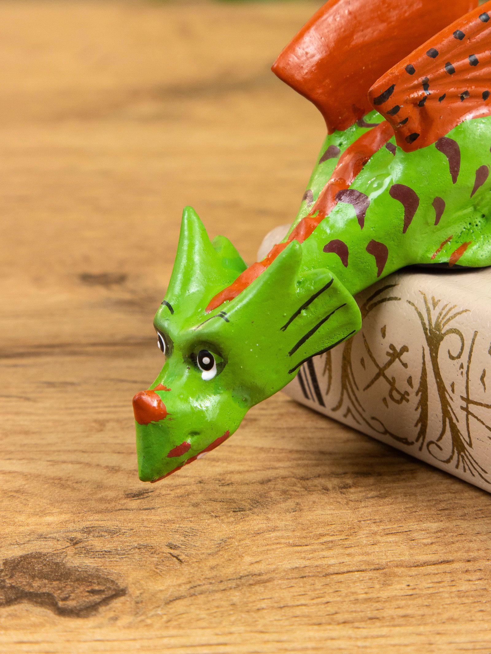 Цвет: Зелёный, Красный Размер упаковки: 4 x 3 x 13 см. tnved: 4420190000 Одноцветный: Нет Высота, см: 4 Форма фигуры: Дракон | ||