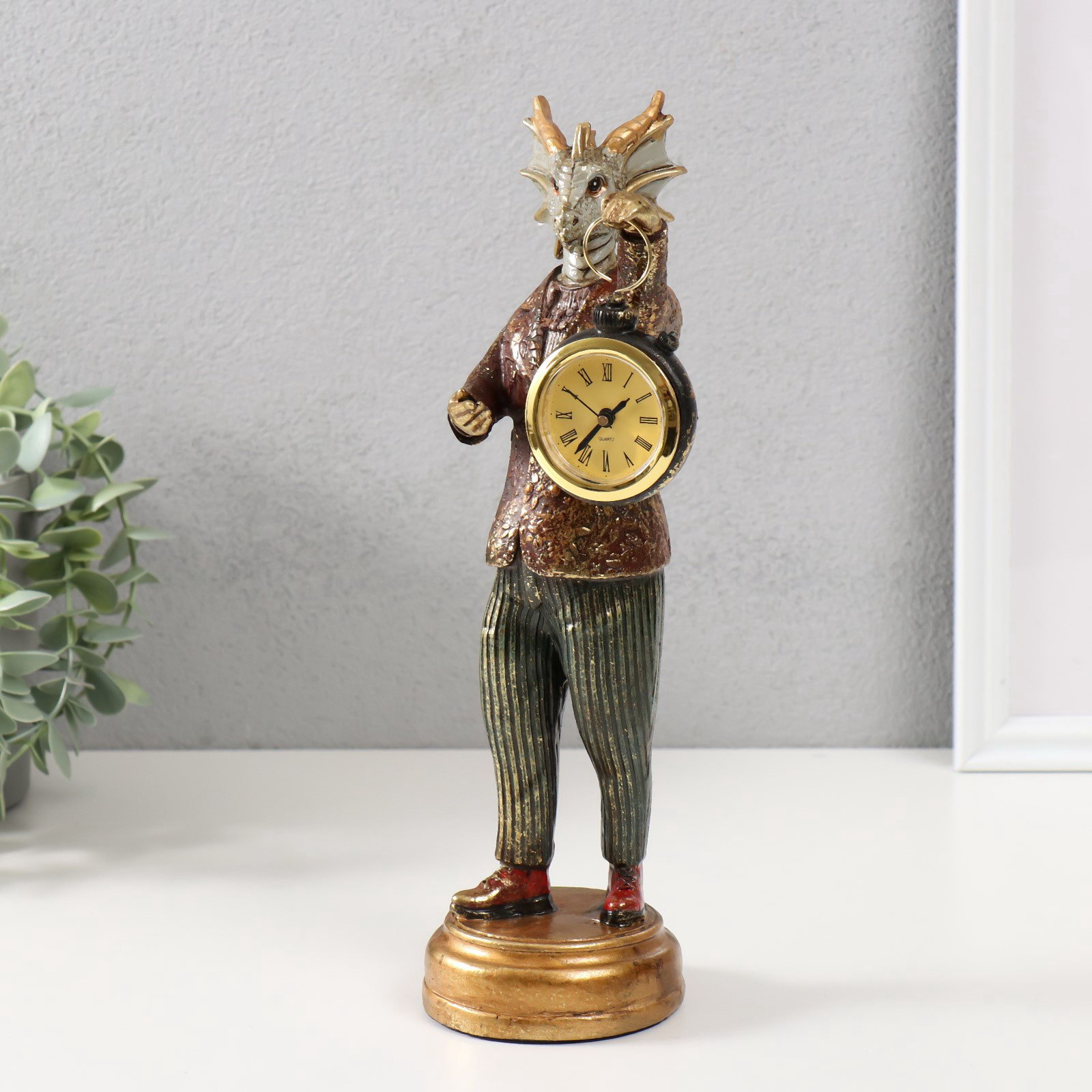 Фигурка - часы настольные полистоун "Золотистый дракон", 9.5x8.5x28 см, 8.5x9.5x28 см., Китай