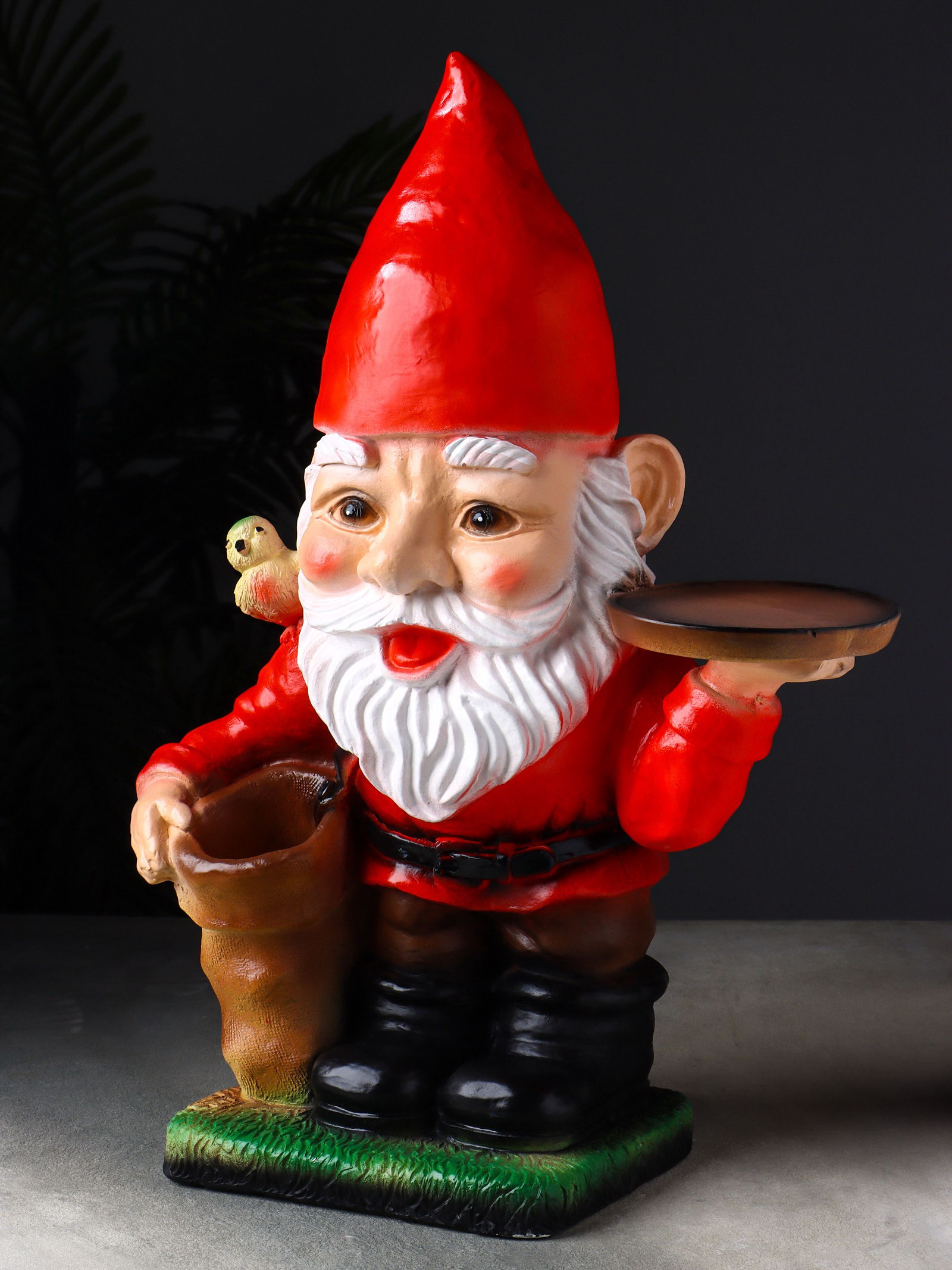 Фигура - подставка для мелочей "Гном в красном", гипс, 37x20x52 см, Хорошие сувениры, Россия