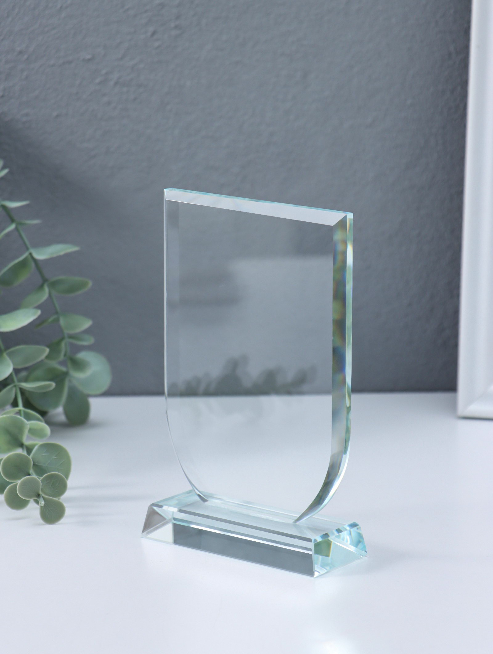 Стела наградная, фигура стекло "Плакетка", площадка 9.7x13 см, 4.8x9.7x13.8 см, 9.7x4.8x13.8 см., Китай