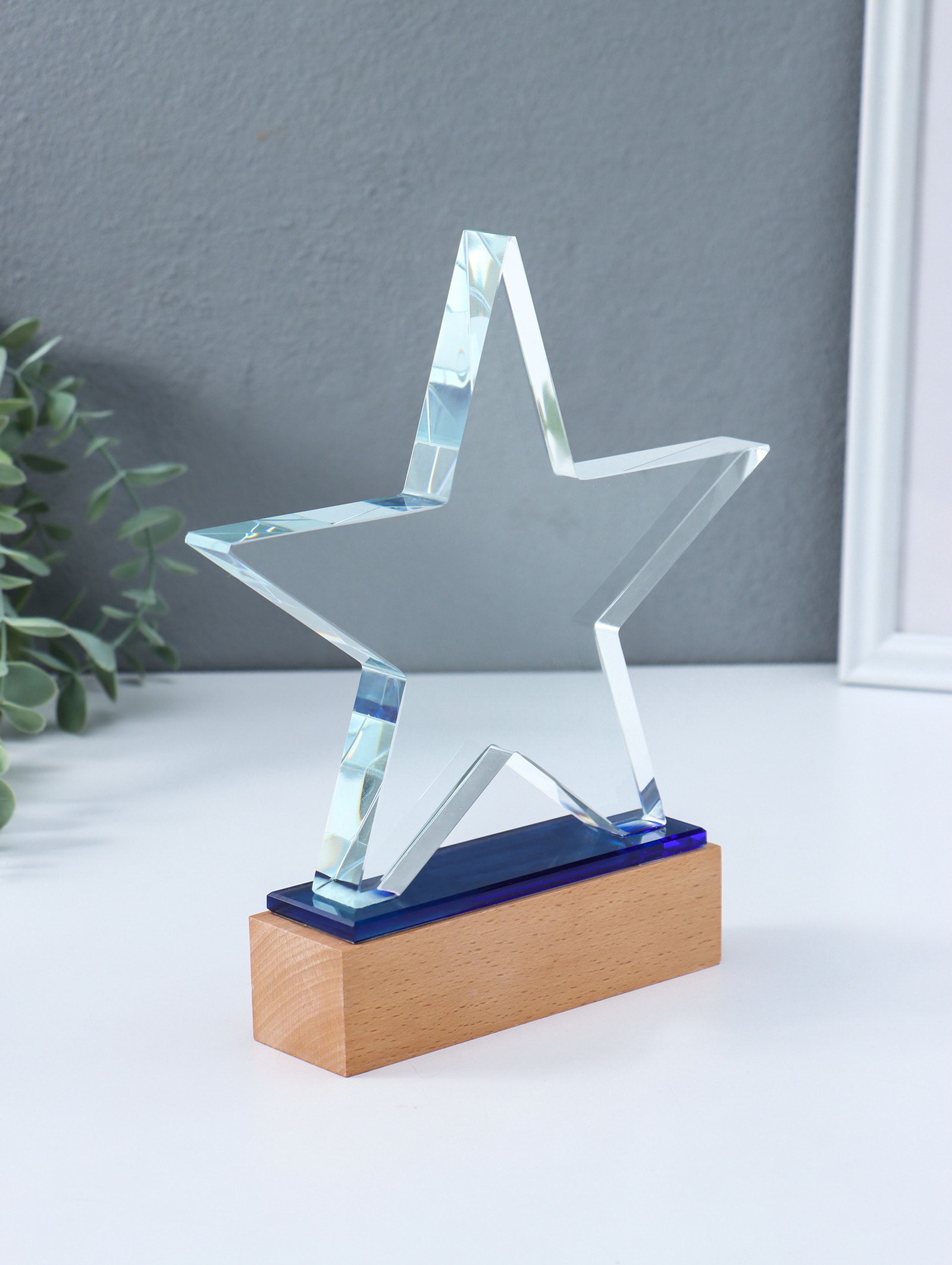 Наградная фигура стела "Звезда", подставка 14x4 см, звезда 20.5x18.5 см, 3.5x20.5x22.5 см, 20.5x3.5x22.5 см., Китай