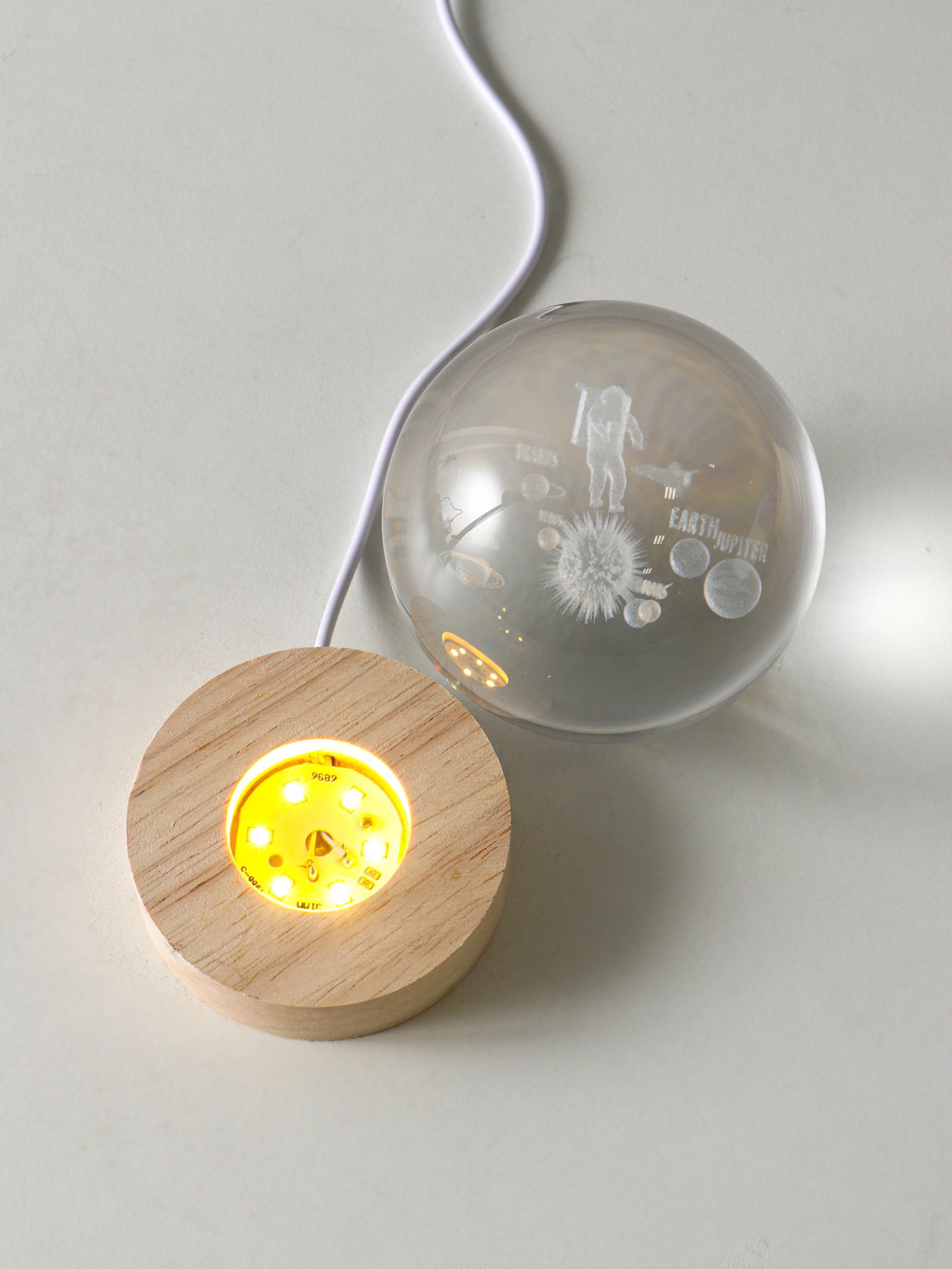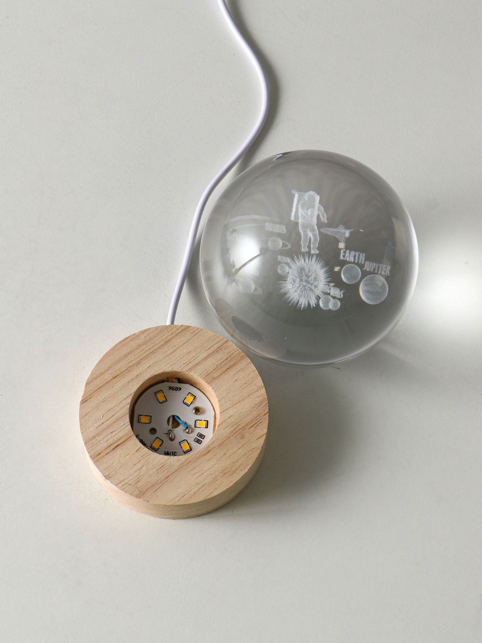 Световая фигурка стекло "Шар. Голограмма: Космонавт и планеты", d=8 см, подставка дерево, USB, 8x8x9.5 см, 8x8x9.5 см., Китай