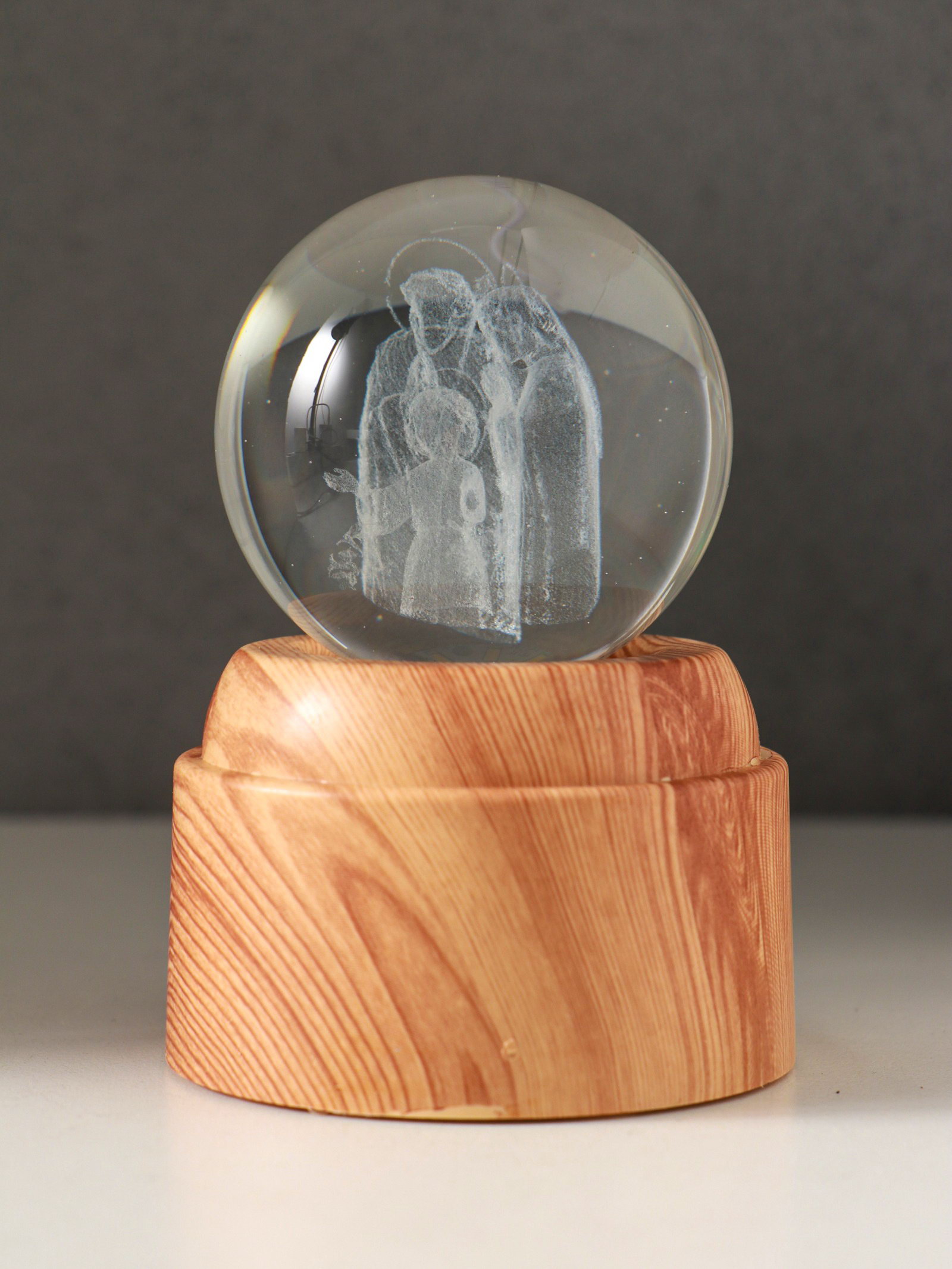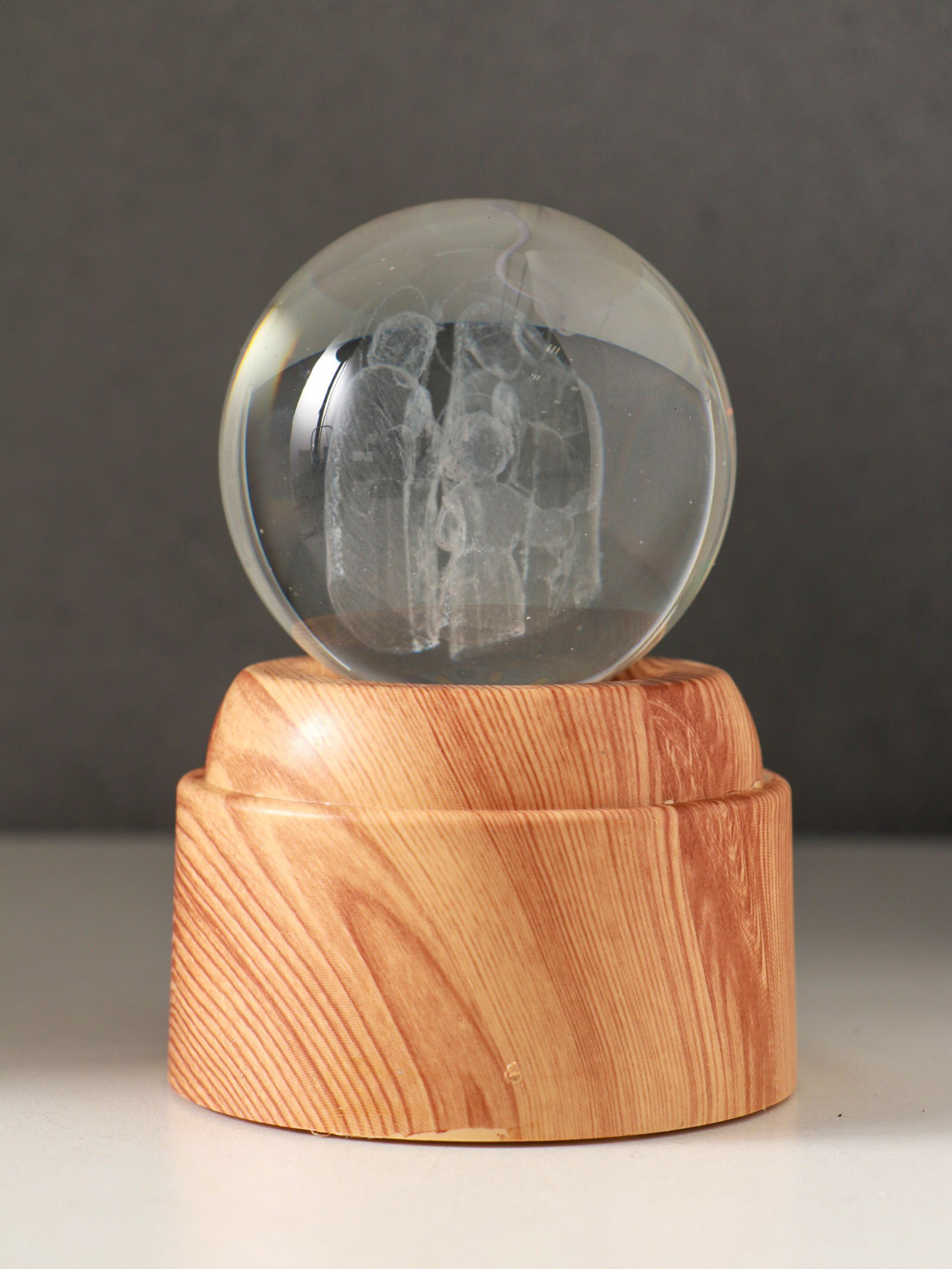 Световая фигурка стекло "Шар. Голограмма: Рождение", 6xLED, d=6 см, крутится, USB, 7x7x10 см, 7x7x10 см., Китай