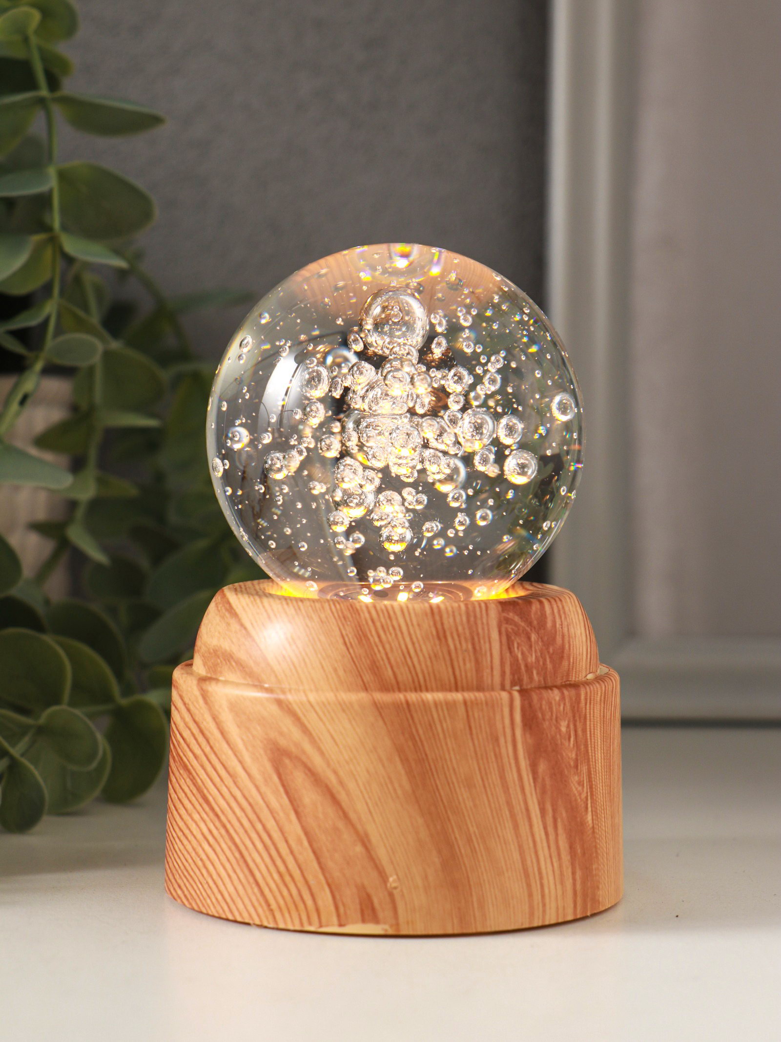 Световая фигурка стекло "Шар. Голограмма: Пузыри", 6xLED, d=6 см, крутится, USB, 7x7x10 см, 7x7x10 см., Китай