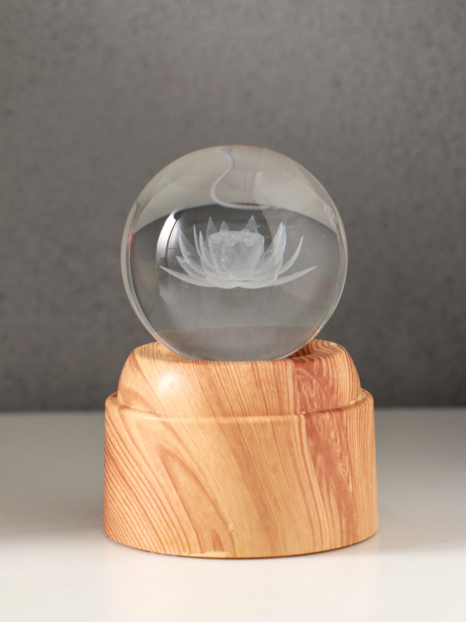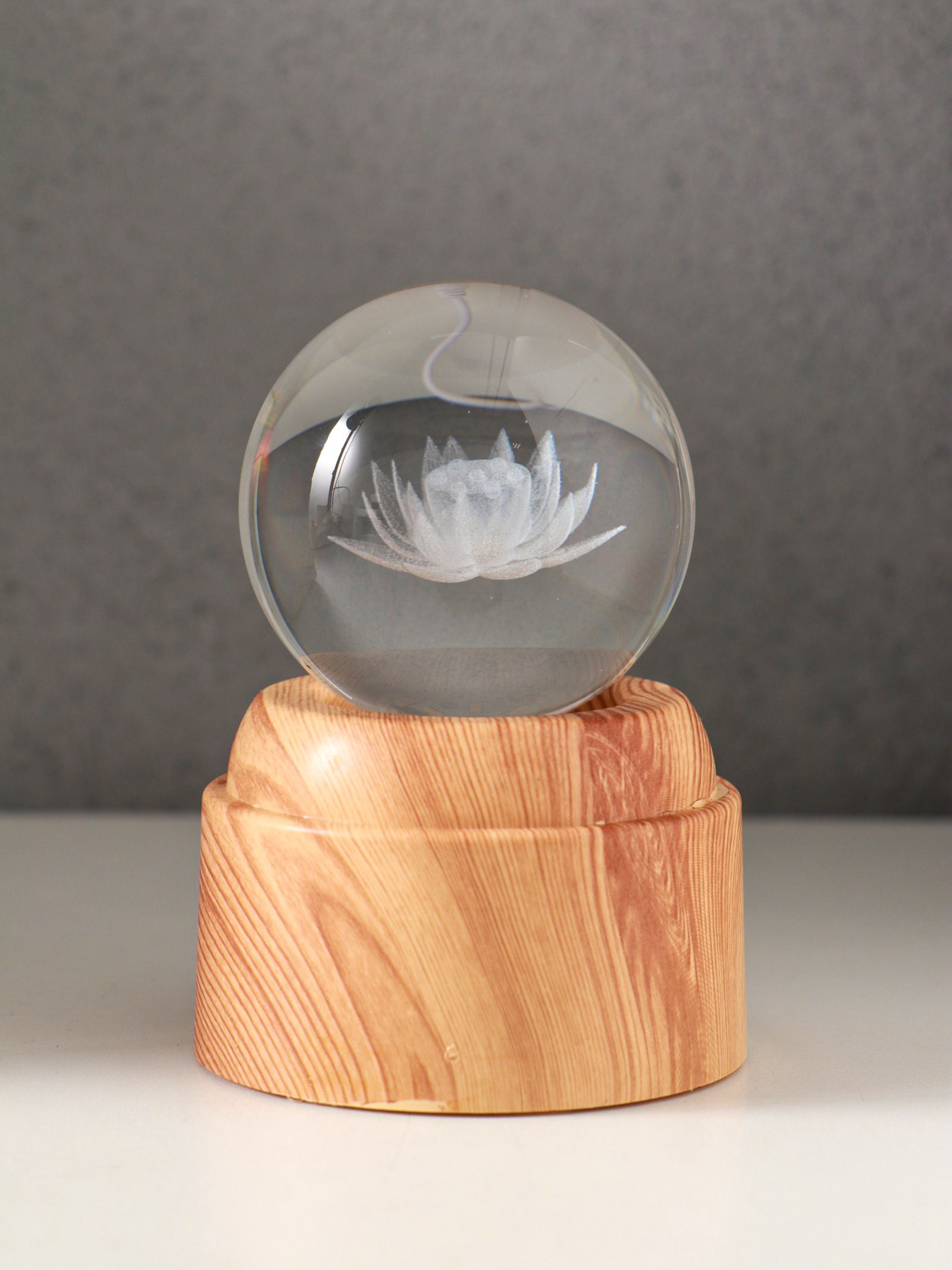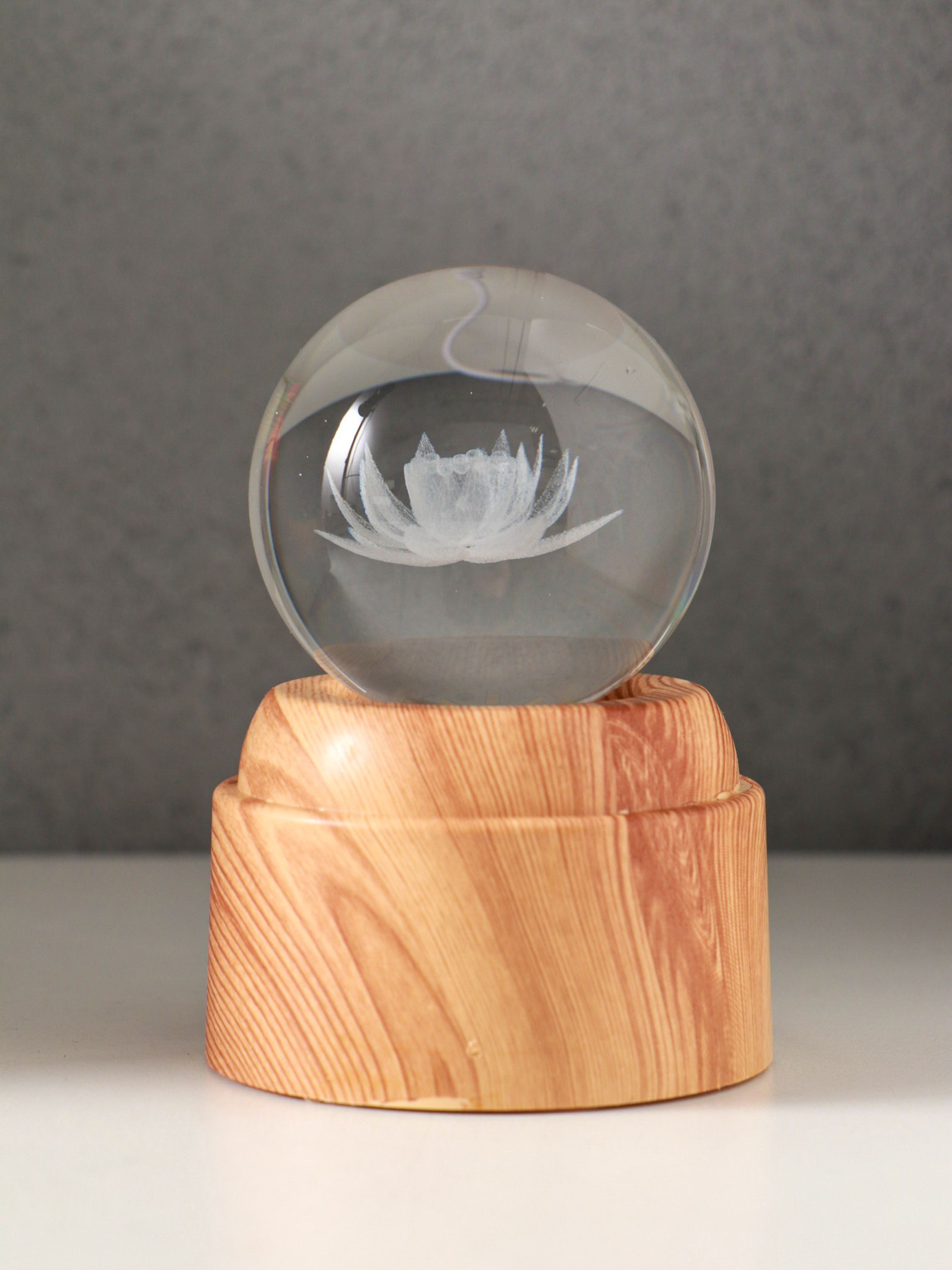 Тематика праздника: 8 Марта, Универсальная тематика Цвет: Бежевый, Прозрачный Размер упаковки: 8 x 9 x 11 см. tnved: 9405210000 Высота, см: 10 Форма фигуры: Лотос Этот светящийся голографический шар станет центром внимания в любом интерьере. Поместите его на стол или полку и наблюдайте, как внутри медленно вращается и переливается изящный цветок лотоса, создавая атмосферу спокойствия и гармонии. Особенности