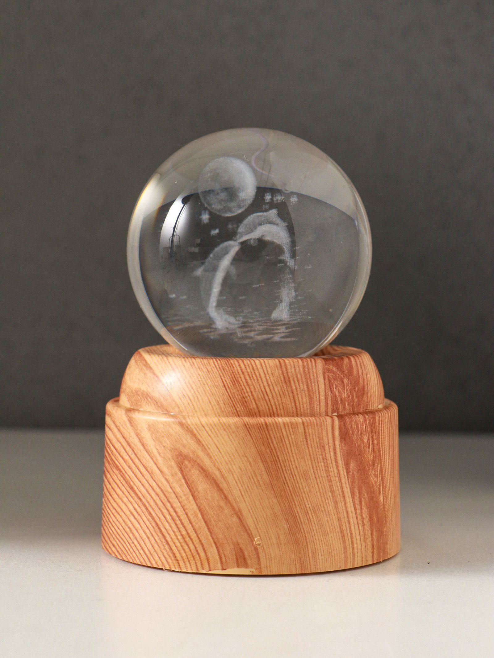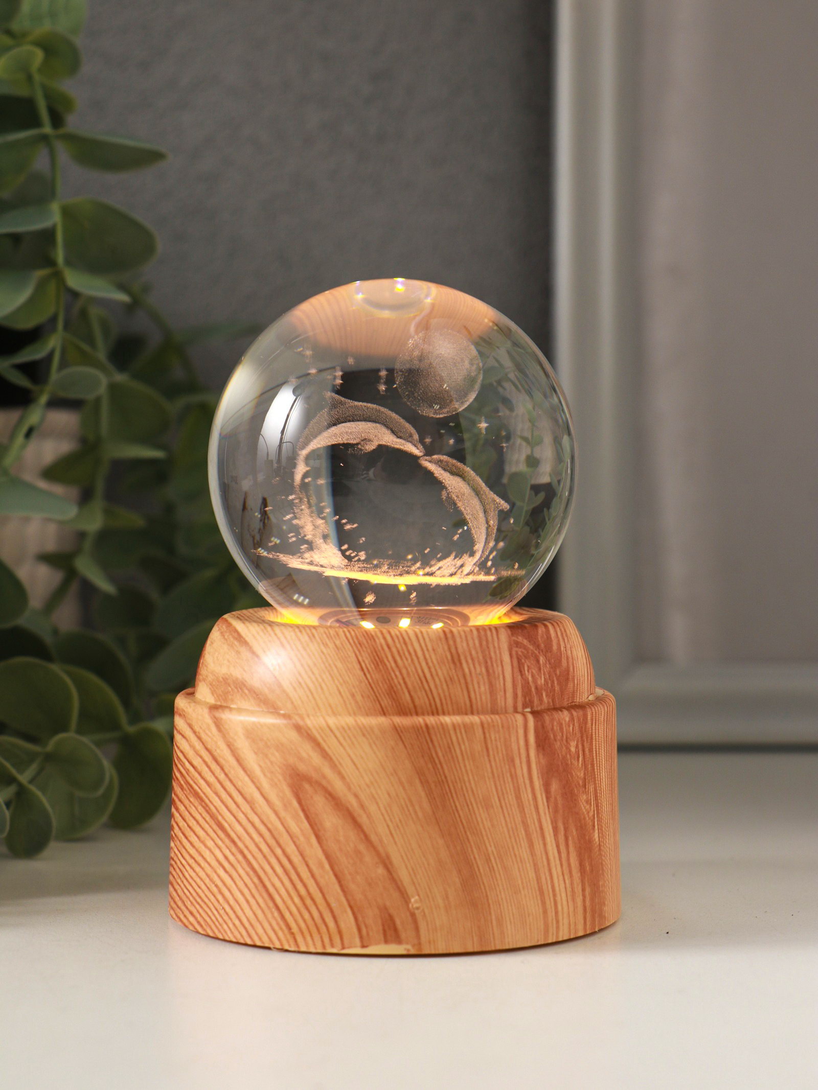 Световая фигурка стекло "Шар. Голограмма: Дельфины под луной", 6xLED, d=6 см, крутится, USB, 7x7x10 см, 7x7x10 см., Китай