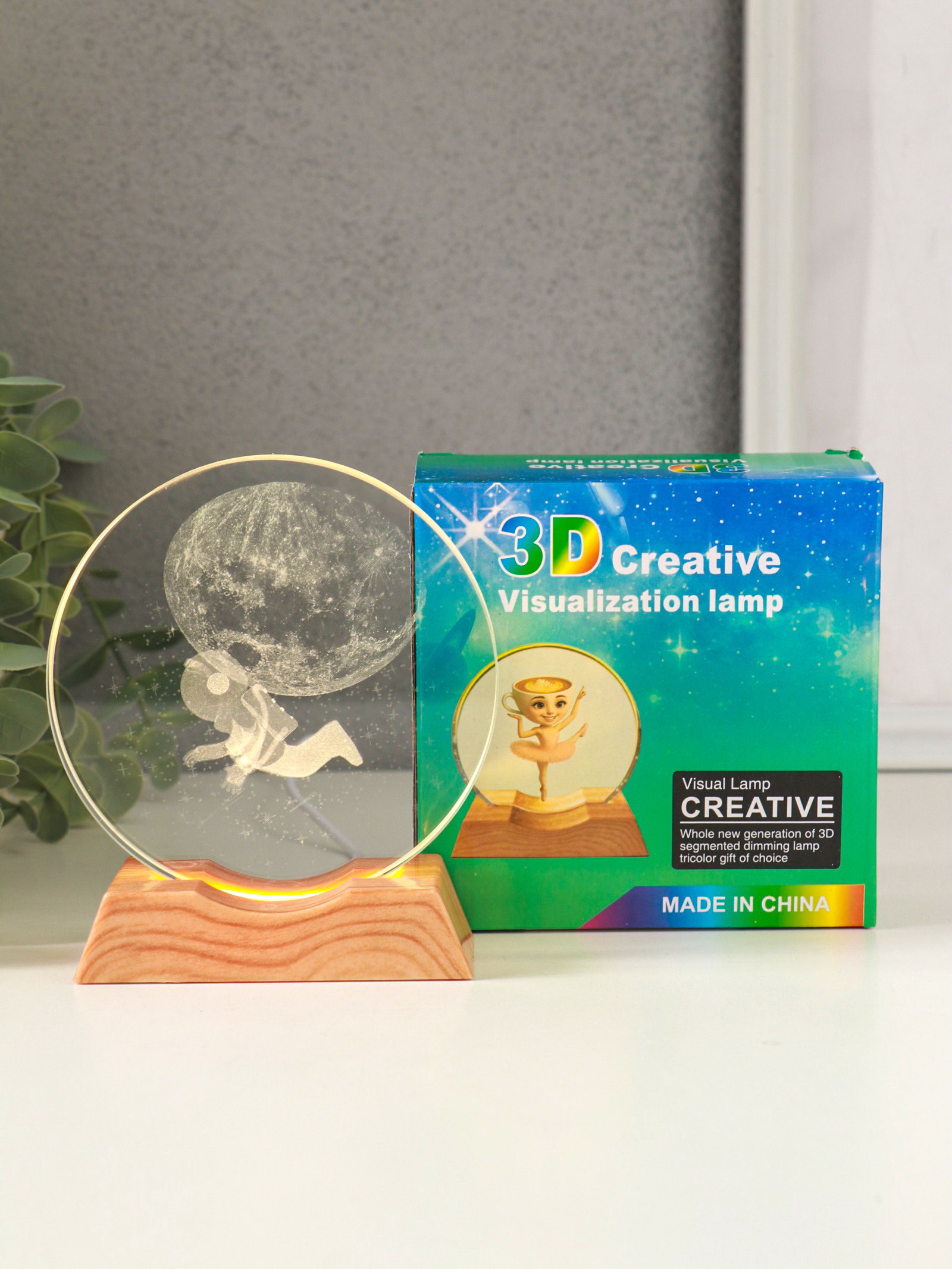 Световая фигурка стекло "Диск. Голограмма: Открытый космос", 5xLED, d=10 см, USB, 10x4x11.4 см, 4x10x11.4 см., Китай