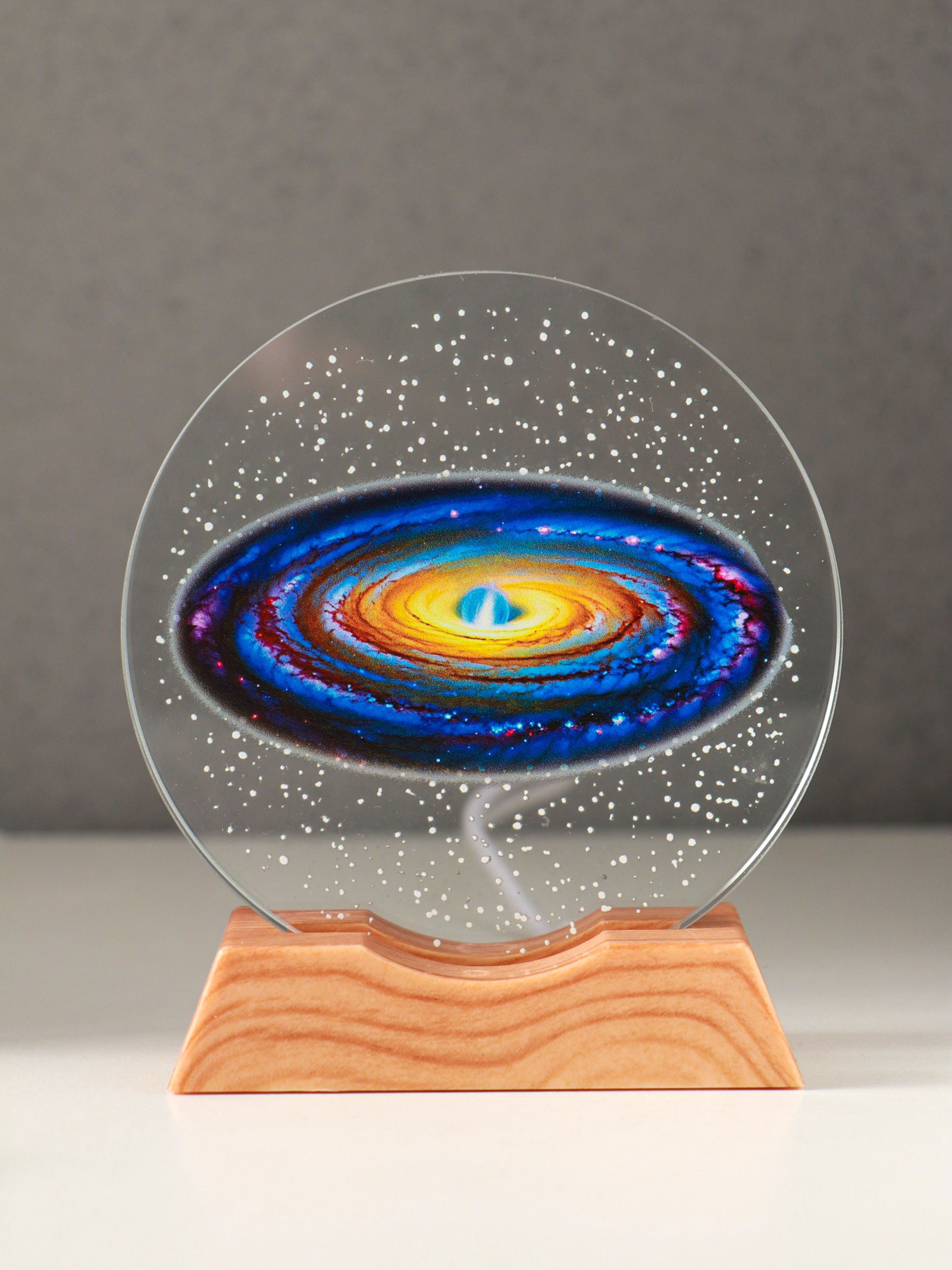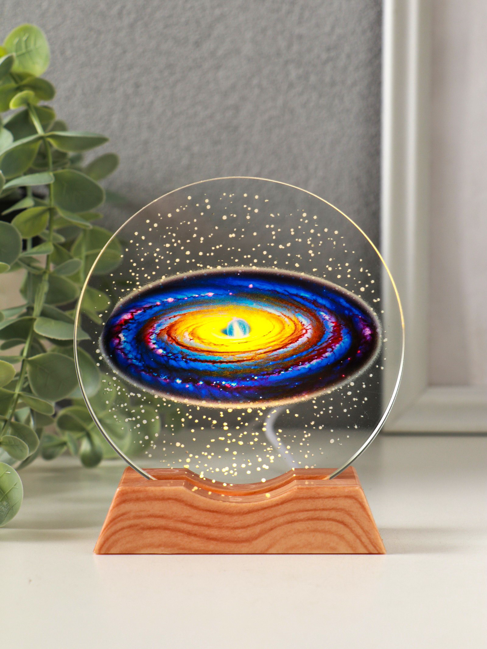 Световая фигурка стекло "Диск. Голограмма: Млечный путь", 5xLED, d=10 см, USB, цветной, 10x4x11.4 см, 4x10x11.4 см., Китай