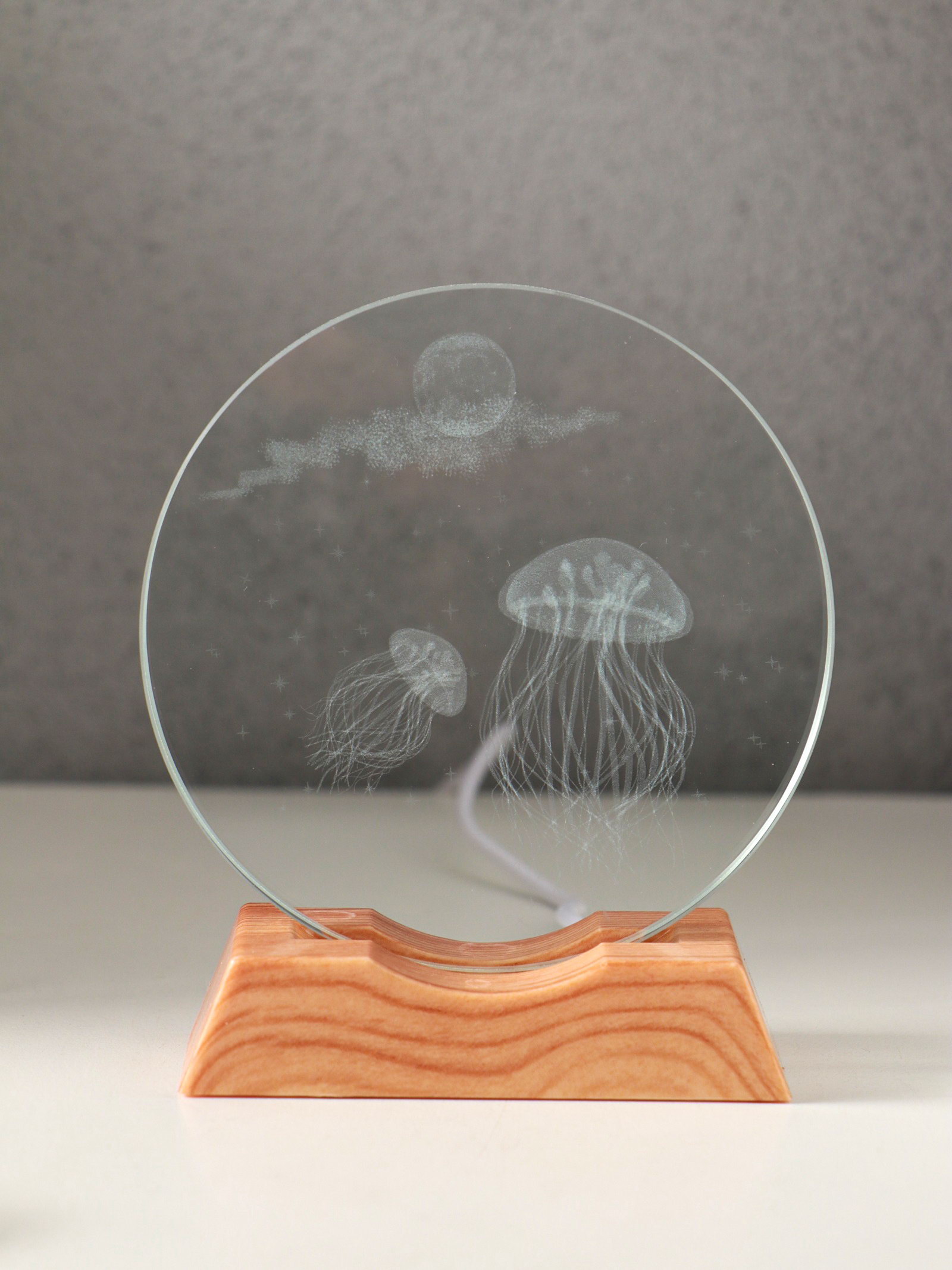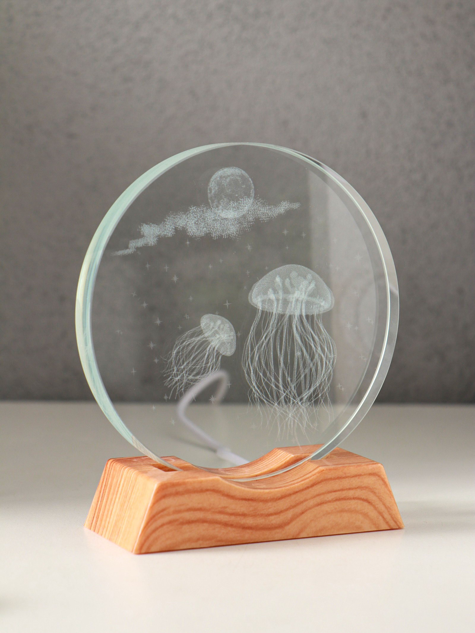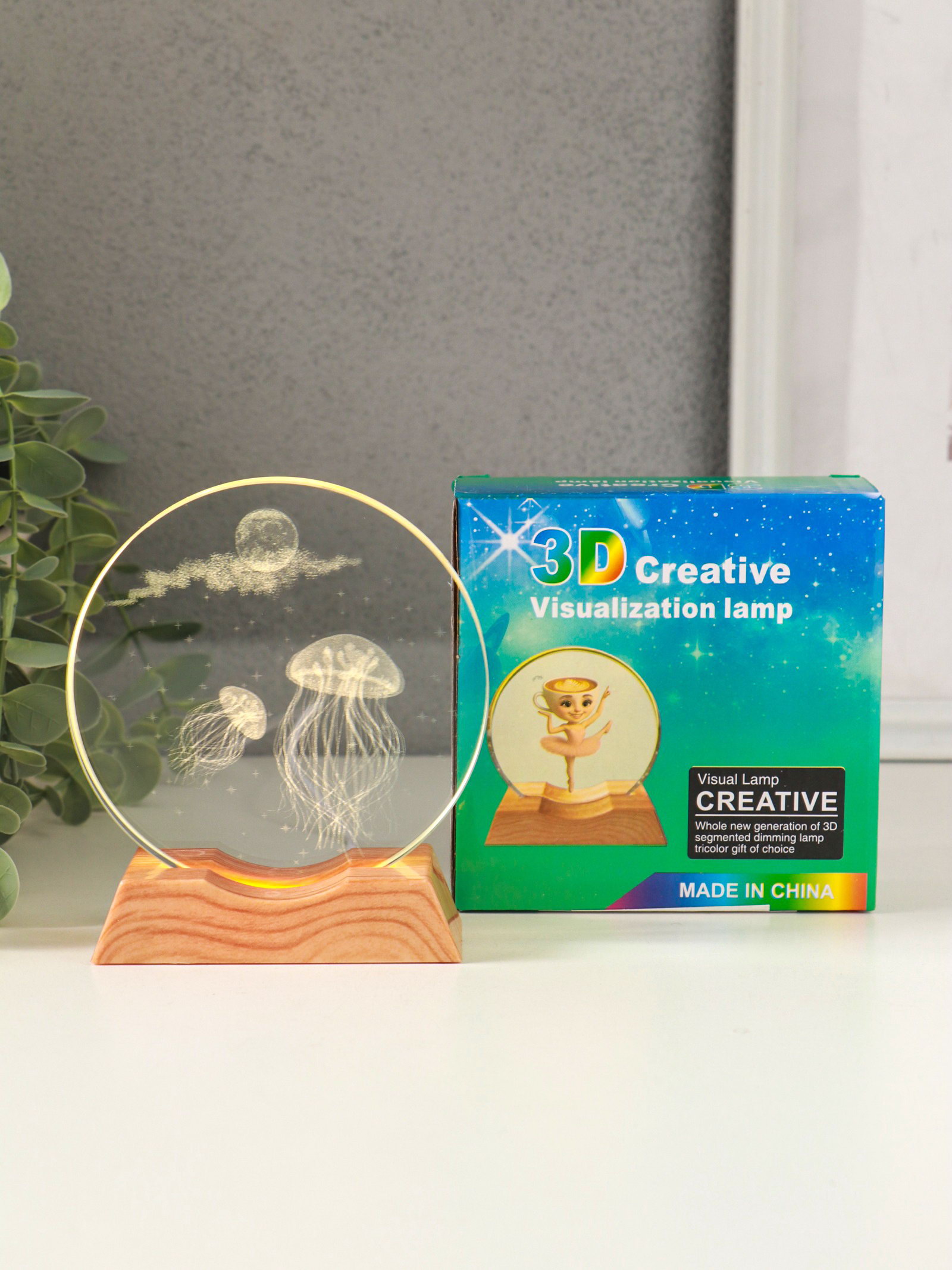 Цвет: Бежевый, Прозрачный Размер упаковки: 10.5 x 4 x 11 см. tnved: 9405210000 Высота, см: 11.4 Тематика праздника: Универсальная тематика Этот голографический аксессуар создаёт в комнате атмосферу глубокого моря. Внутри стеклянного диска парят медузы, подсвеченные мягкой LED-подсветкой. Подключите его к USB-порту, чтобы оживить интерьер без лишних хлопот. Особенности