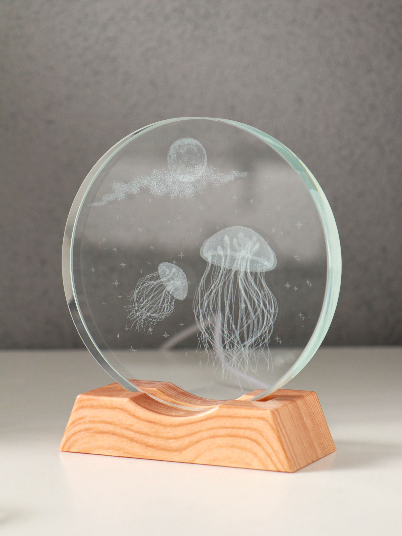 Световая фигурка стекло "Диск. Голограмма: Медузы", 5xLED, d=10 см, USB, 10x4x11.4 см, 4x10x11.4 см., Китай