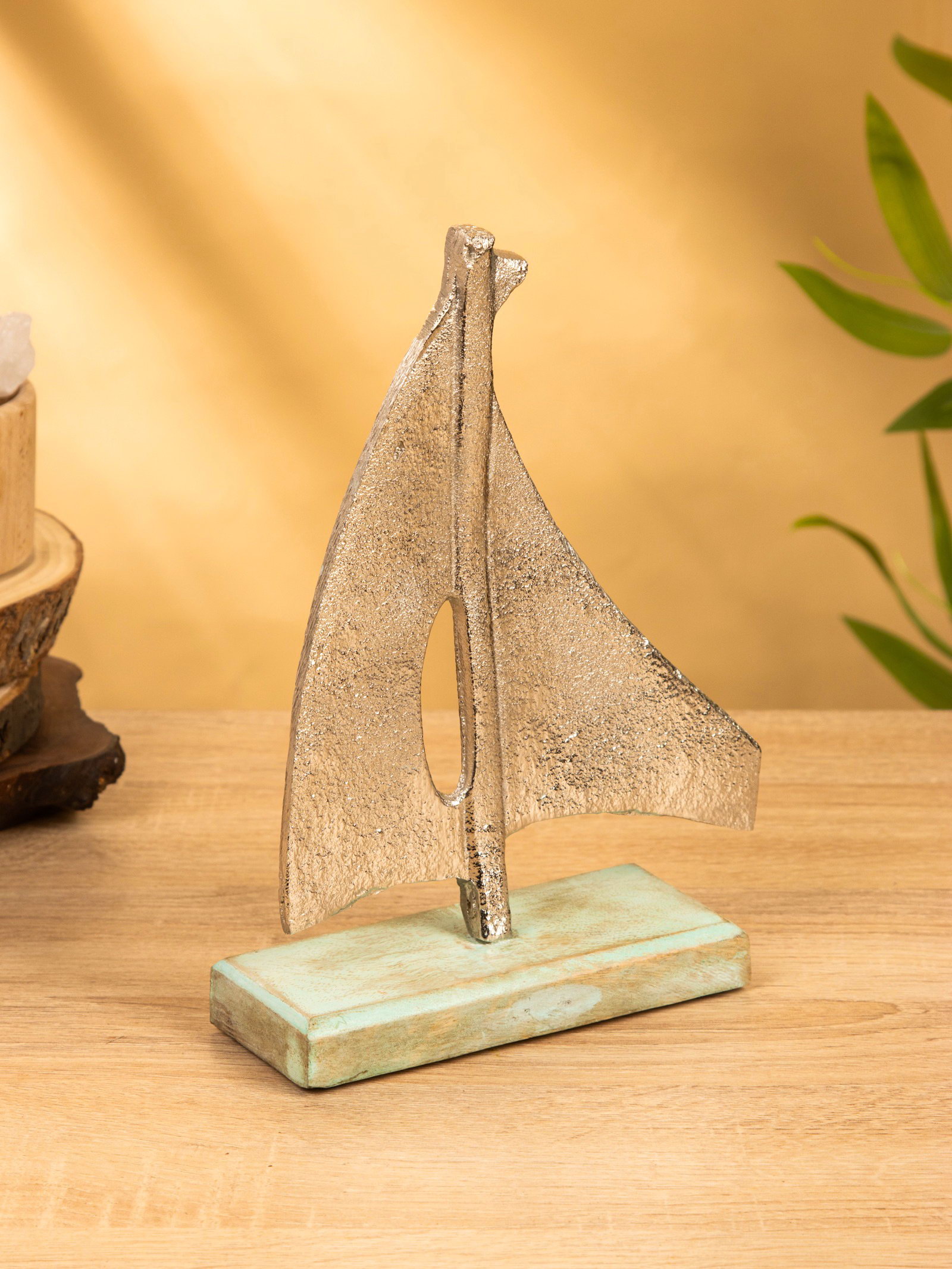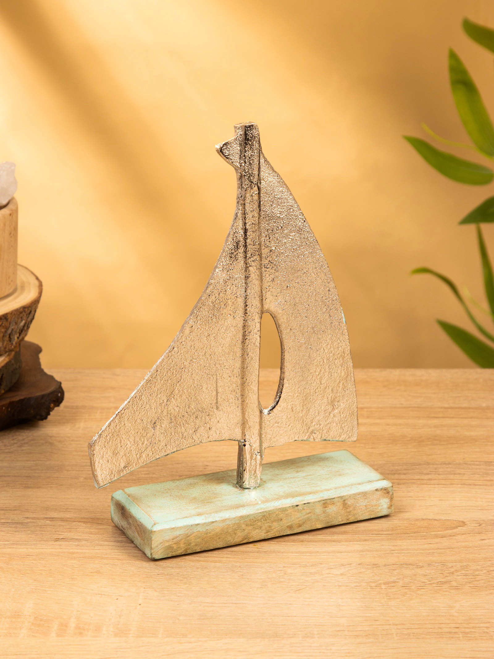 Сувенир "Парусник" 6х17х24 см, алюминий, дерево, 17x6x24 см., Индия